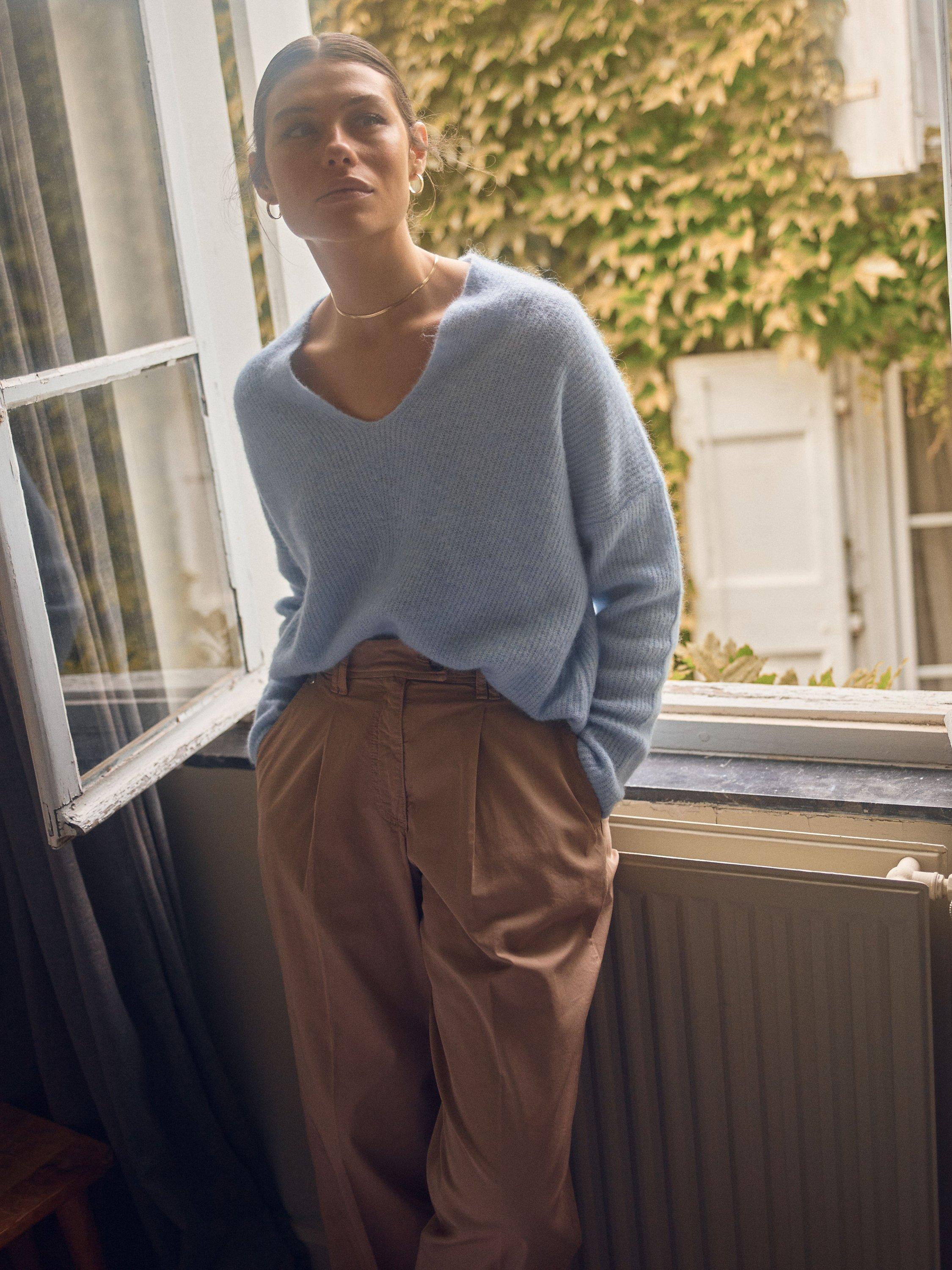 This sweater is one of those versatile pieces you can wear all year round. It's knitted from a soft, lightweight alpaca and wool blend and designed with a flattering v-neckline. Cut in a slightly loose fit, making it perfect for so many different occasions style it with jeans or layer it over a dress.