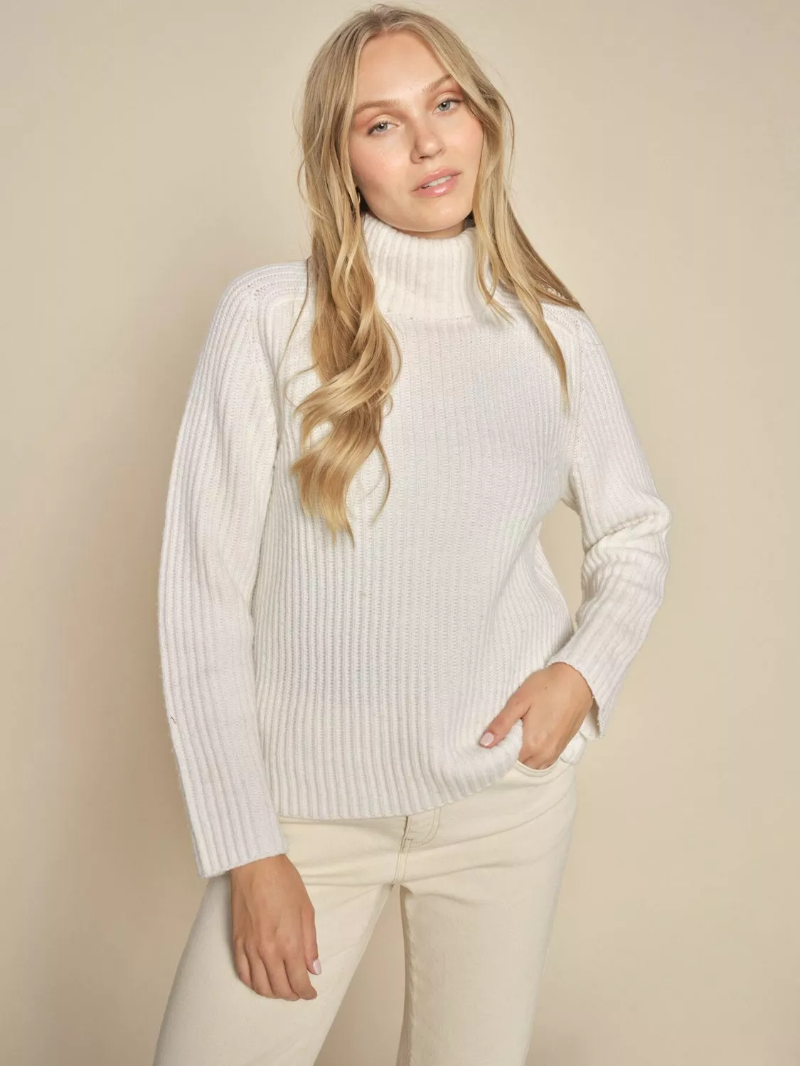 Crafted from pure recycled wool, this warm knit is designed in a regular fit. It has a double knitted high collar to keep you warm and the open structured knitting gives it a cool ribbed effect. Wear this as a layering piece over a flowy dress or with jeans and a trenchcoat on casual days for a coffee date.