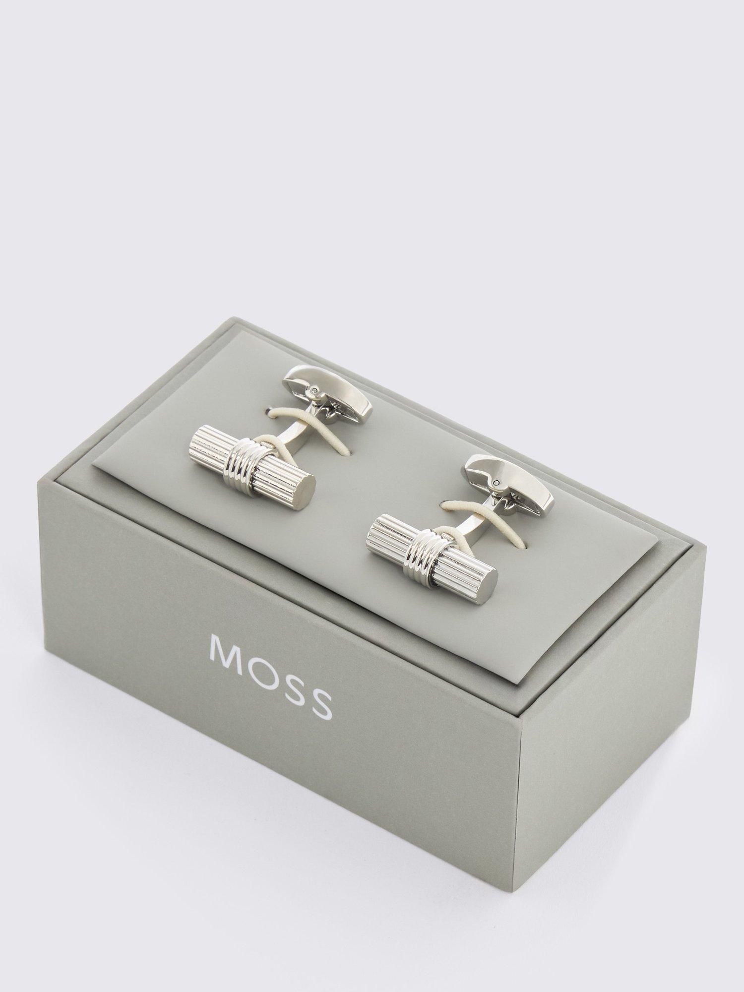 Crafted in cool, polished brass, Moss's cufflinks are a solid way to personalise your formal looks. The barrel-shaped head features a grooved texture to add light-catching interest with every flick of the wrist.