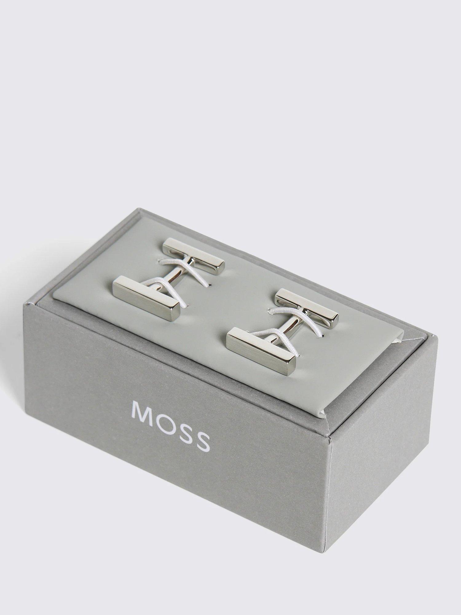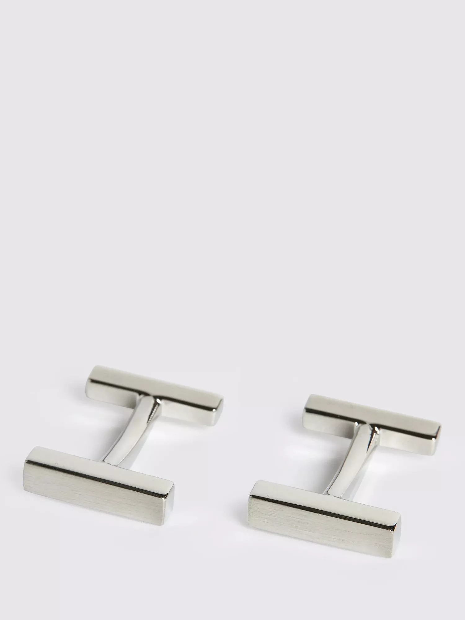 Brushed cufflinks inspired by the profile of a classic tie bar.