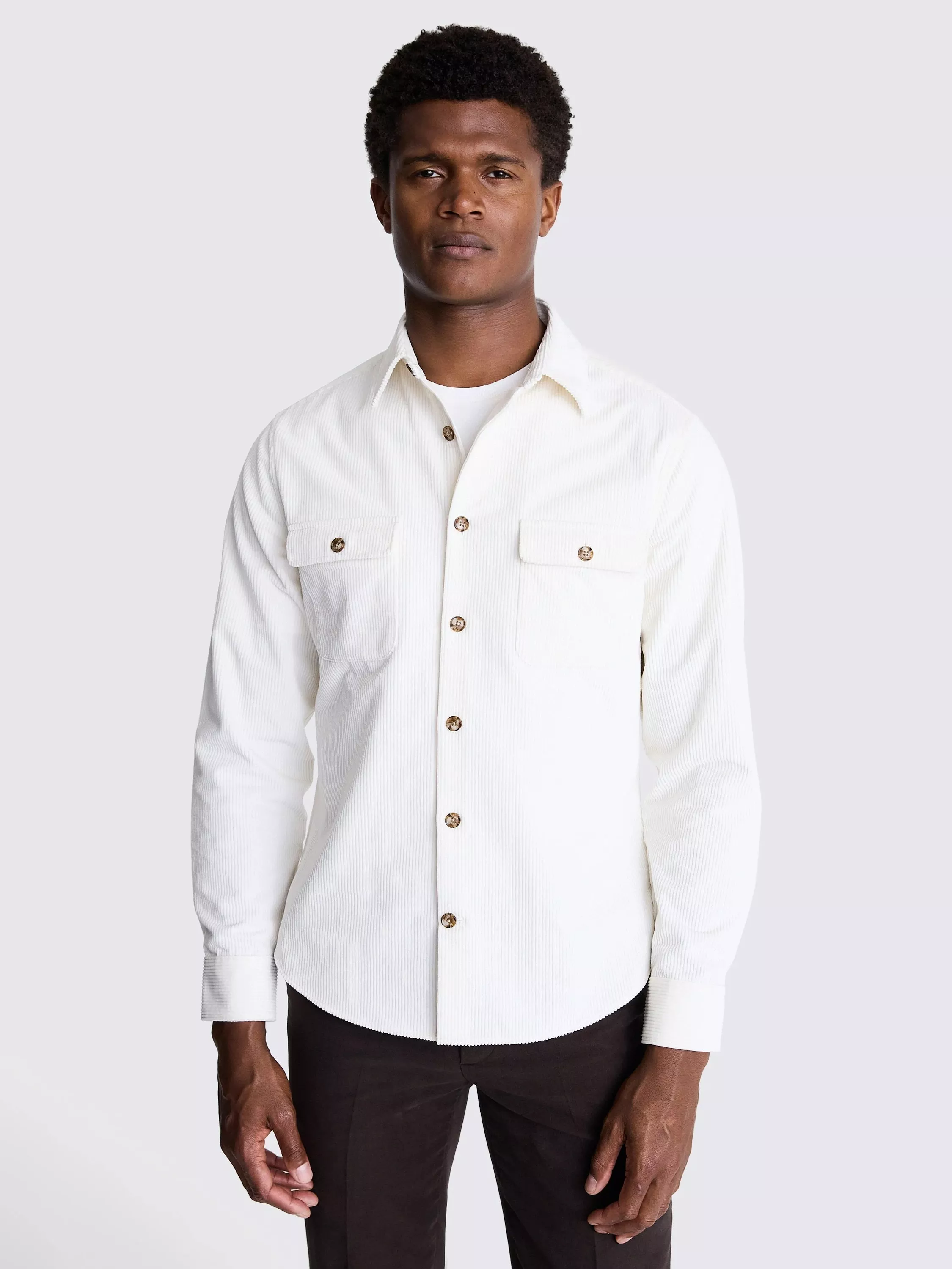 Classic and easy to wear, this ink-coloured overshirt is crafted in pure-cotton corduroy with a soft, breathable feel - great for layering all year round. Twin pockets and horn buttons give it subtle design touches that you can choose to style up or down.