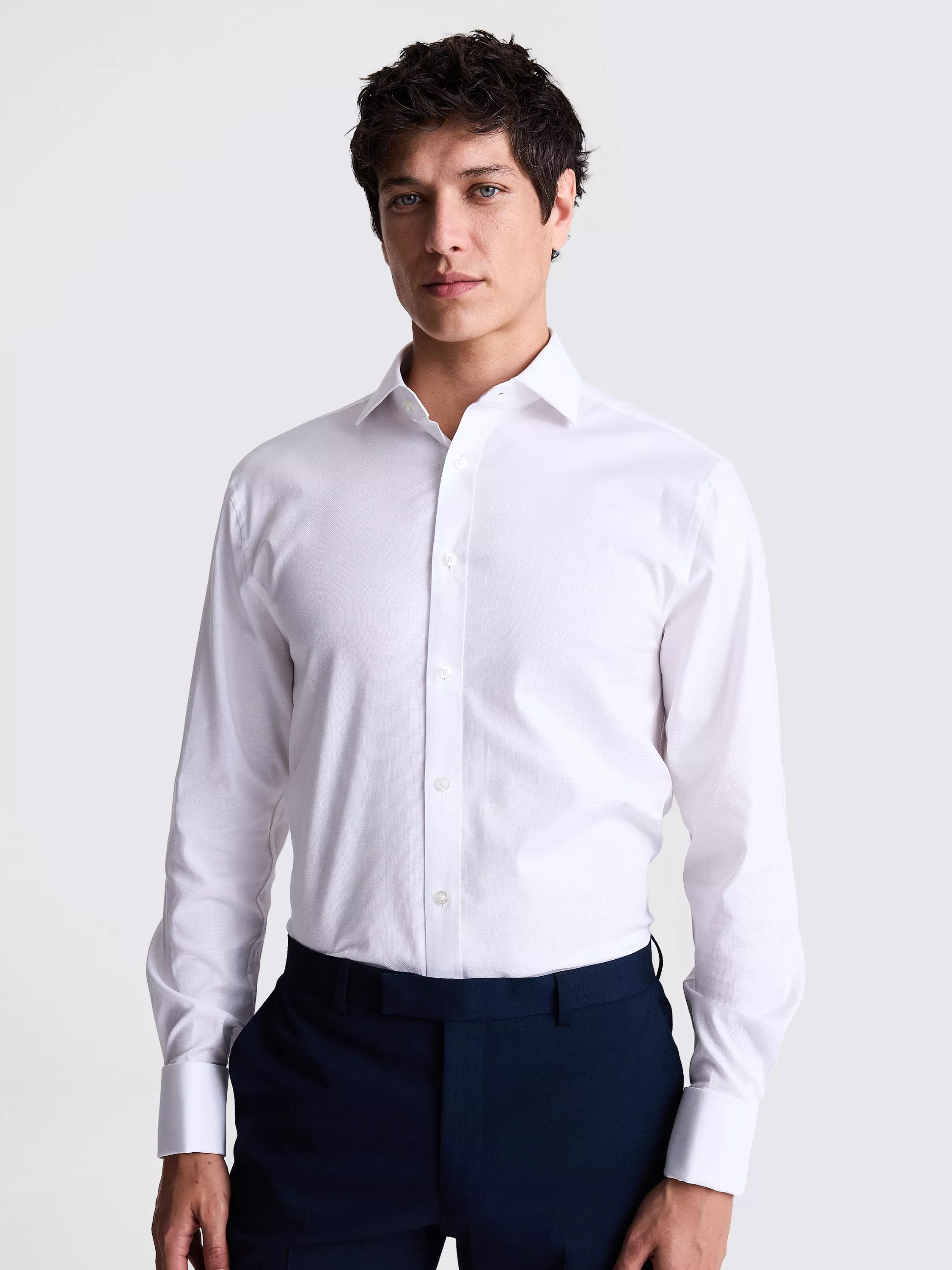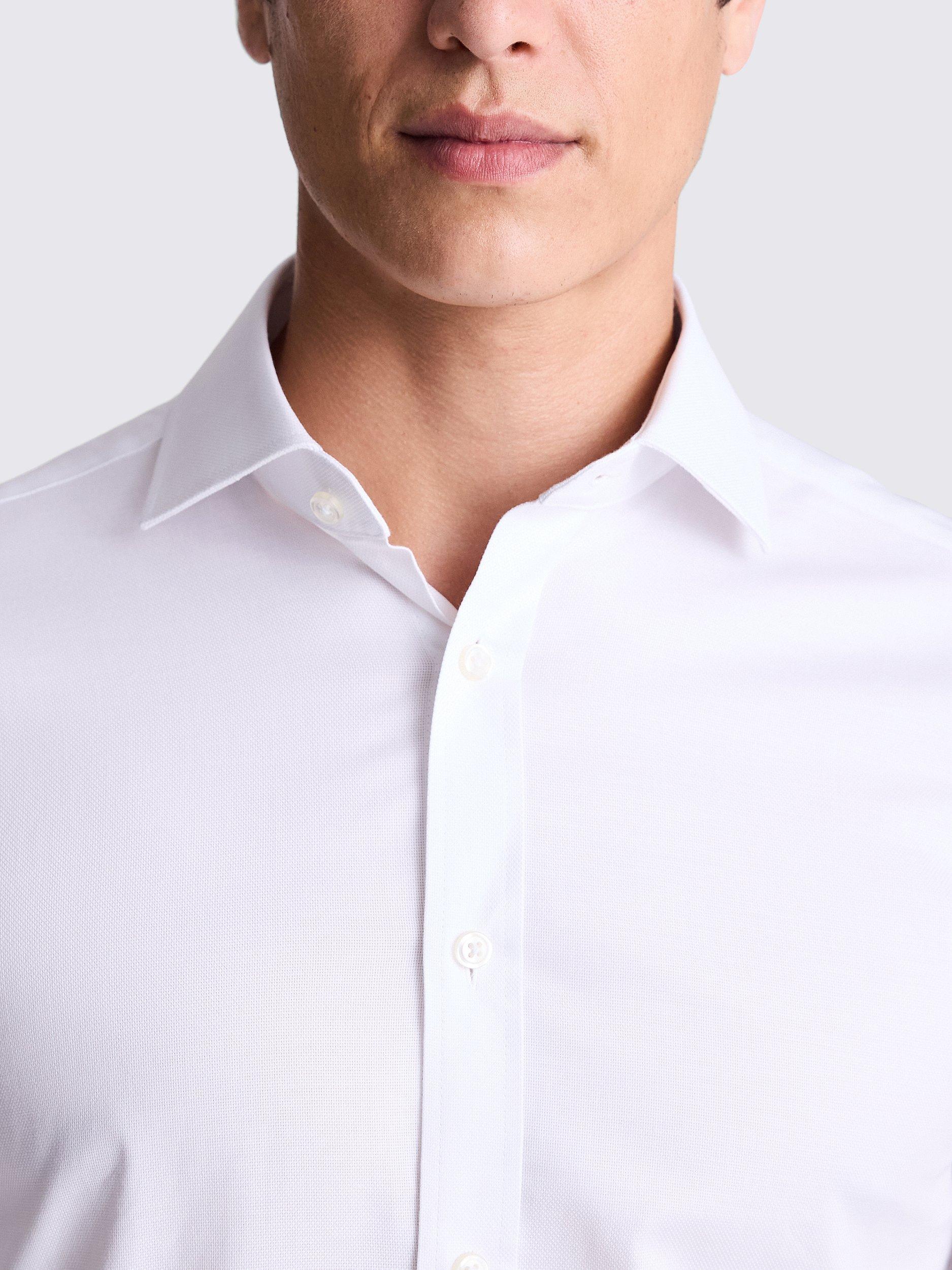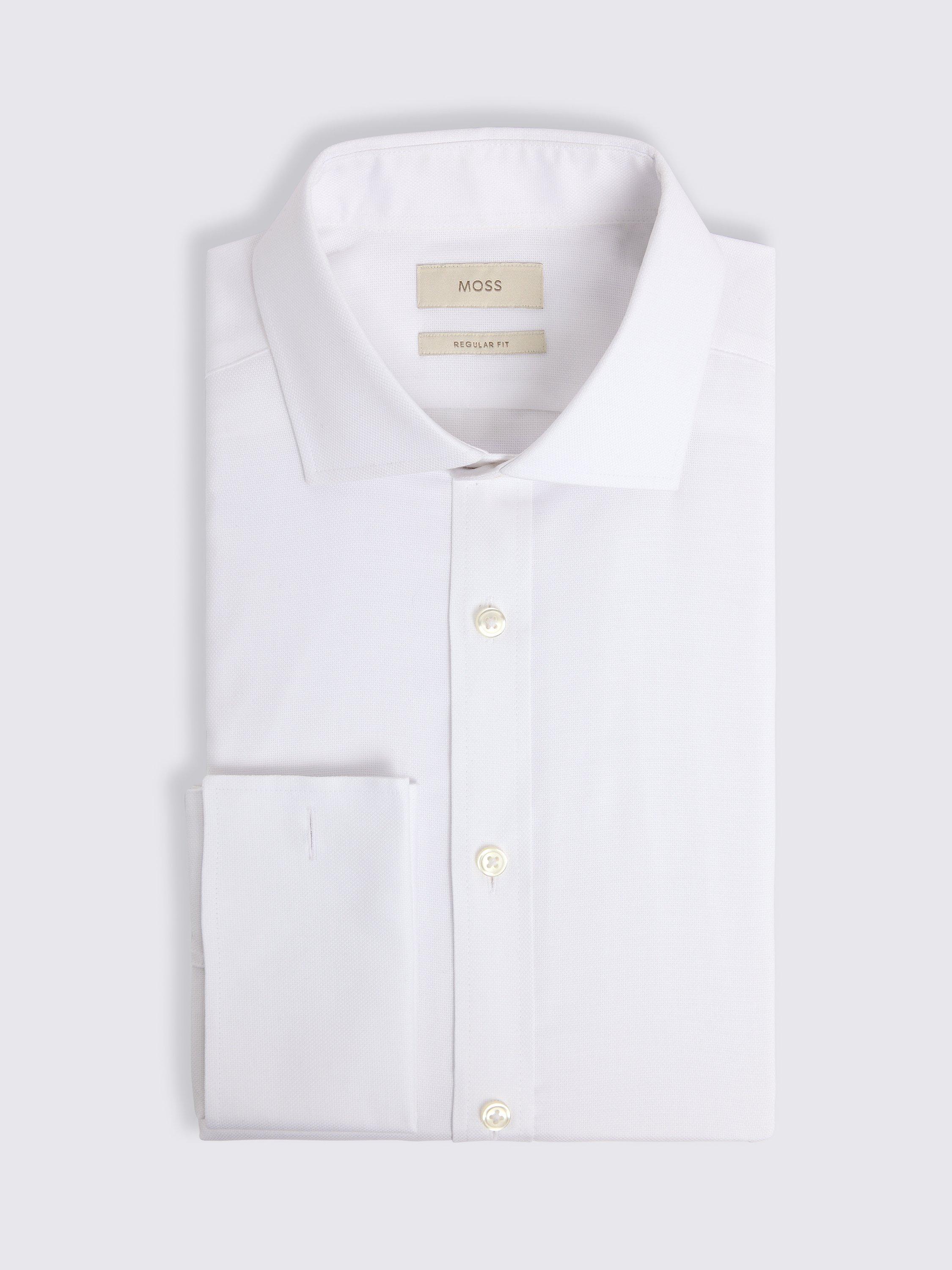 With double cuffs for personalising with your choice of links, this white shirt has an easy regular fit that doesn't run too close.