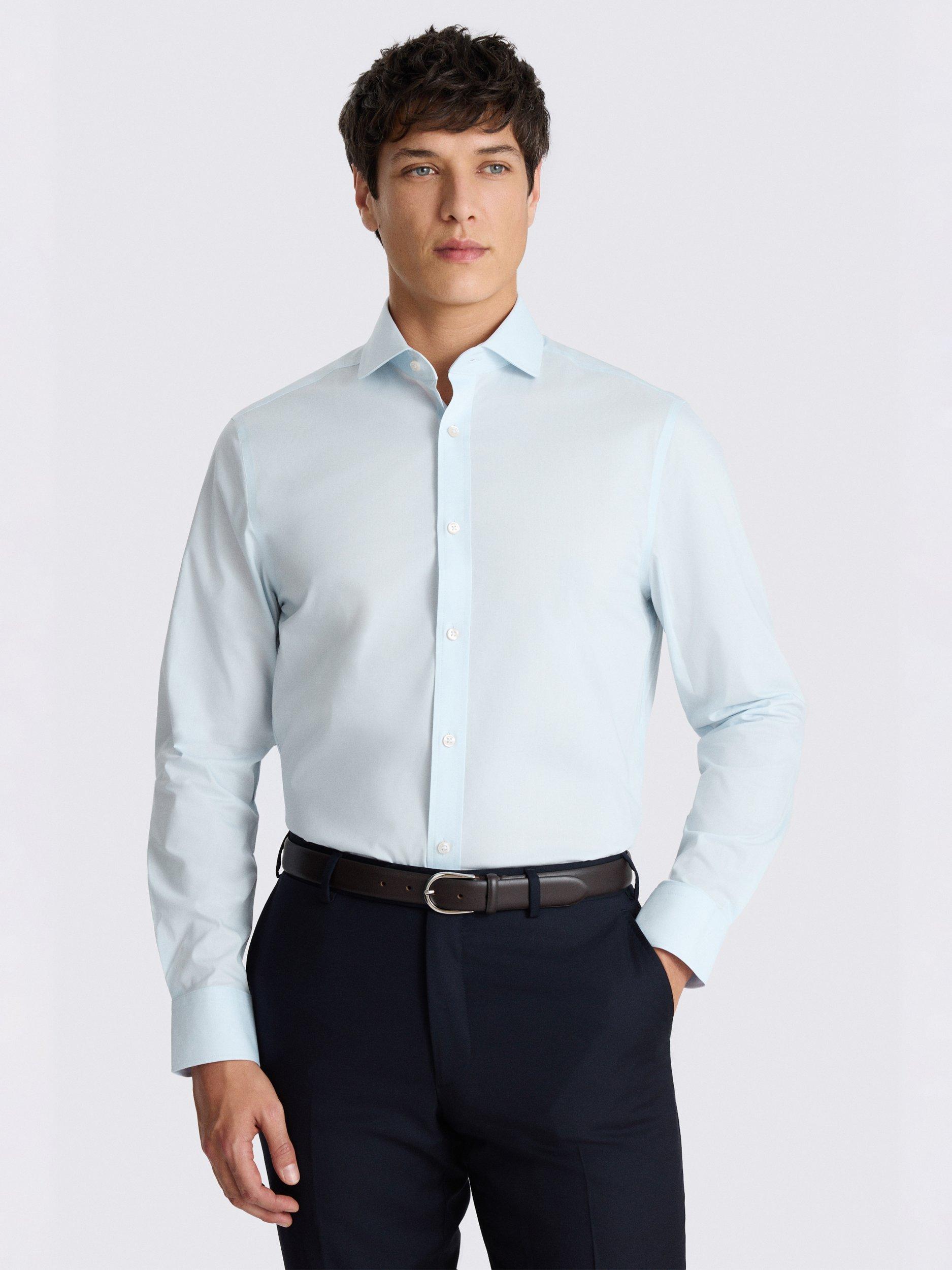 A good stretch shirt is a real blessing on busy days. Crafted in a cotton blend that features plenty of flex to move with you, Moss' design is cut to a tailored fit and offered in a light-blue colour that'll work with any of your formal separates.