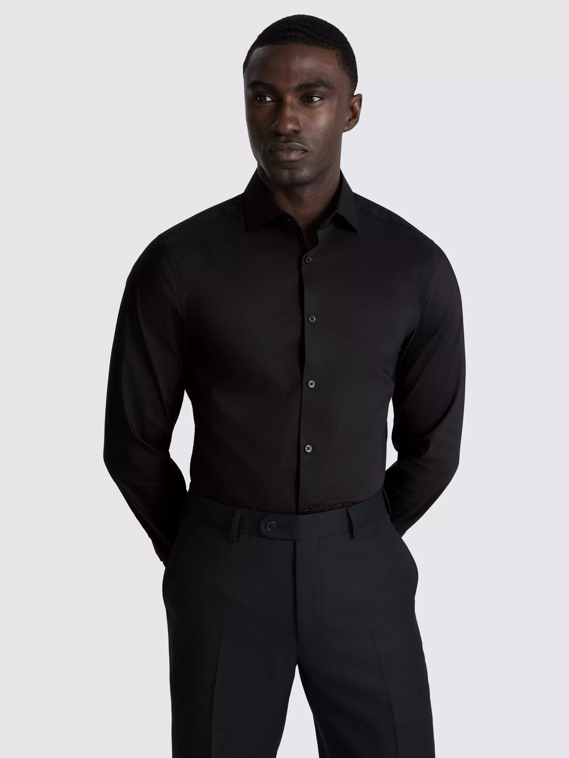 Cut to a slim fit that'll create clean lines, Moss' long-sleeved black shirt has double cuffs you can personalise with your favourite links. The cotton-blend fabric has plenty of stretch, so you'll enjoy the dual benefits of breathability and flexible comfort.