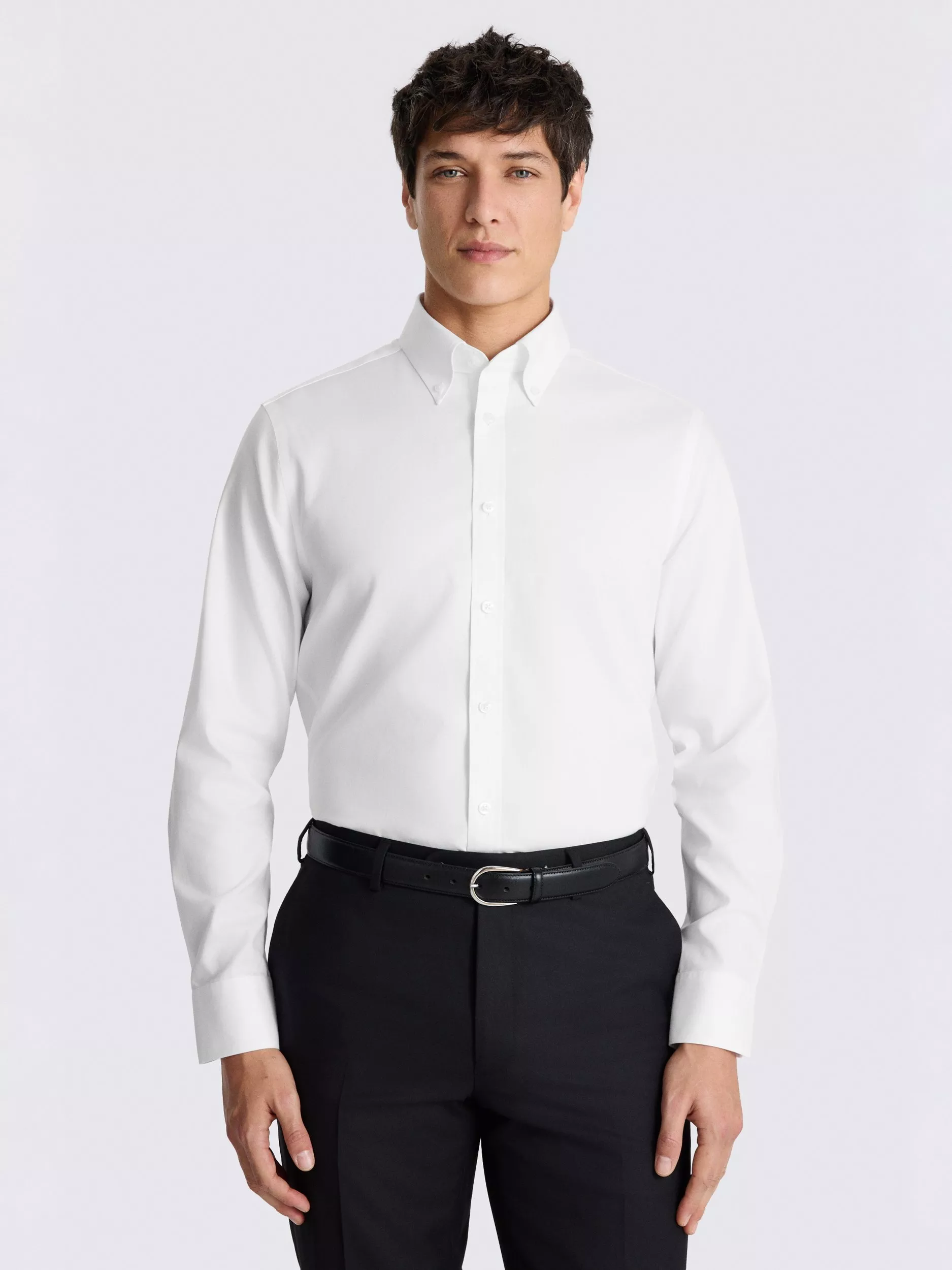 In a sharp tailored fit, this long-sleeved white shirt is a fresh take on a wardrobe essential. Crafted in a super-stretch cotton blend, adding a modern button-down collar and subtle internal contrasts.