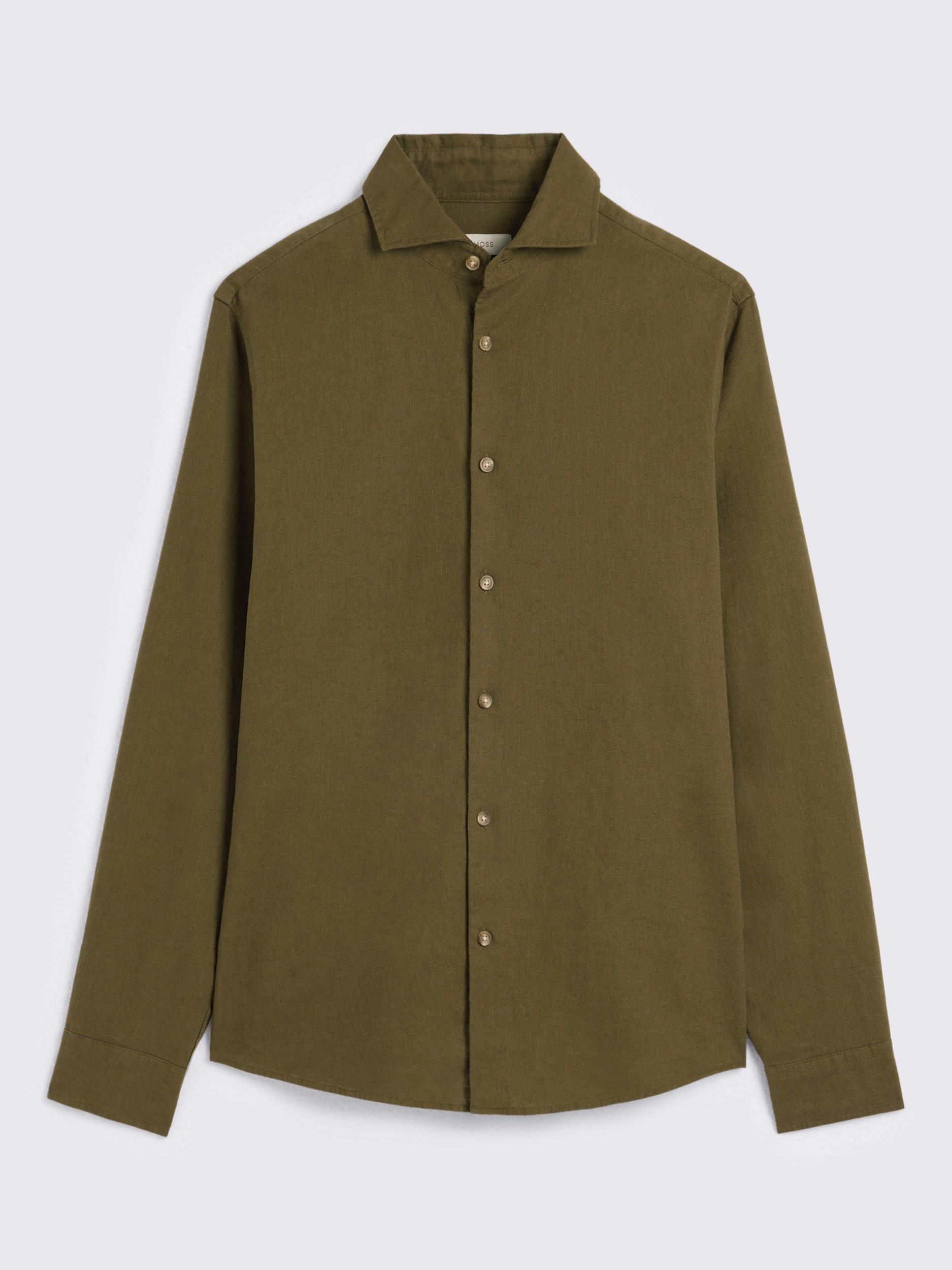 MossCotton Linen Blend Regular Fit Shirt, Dark Olive