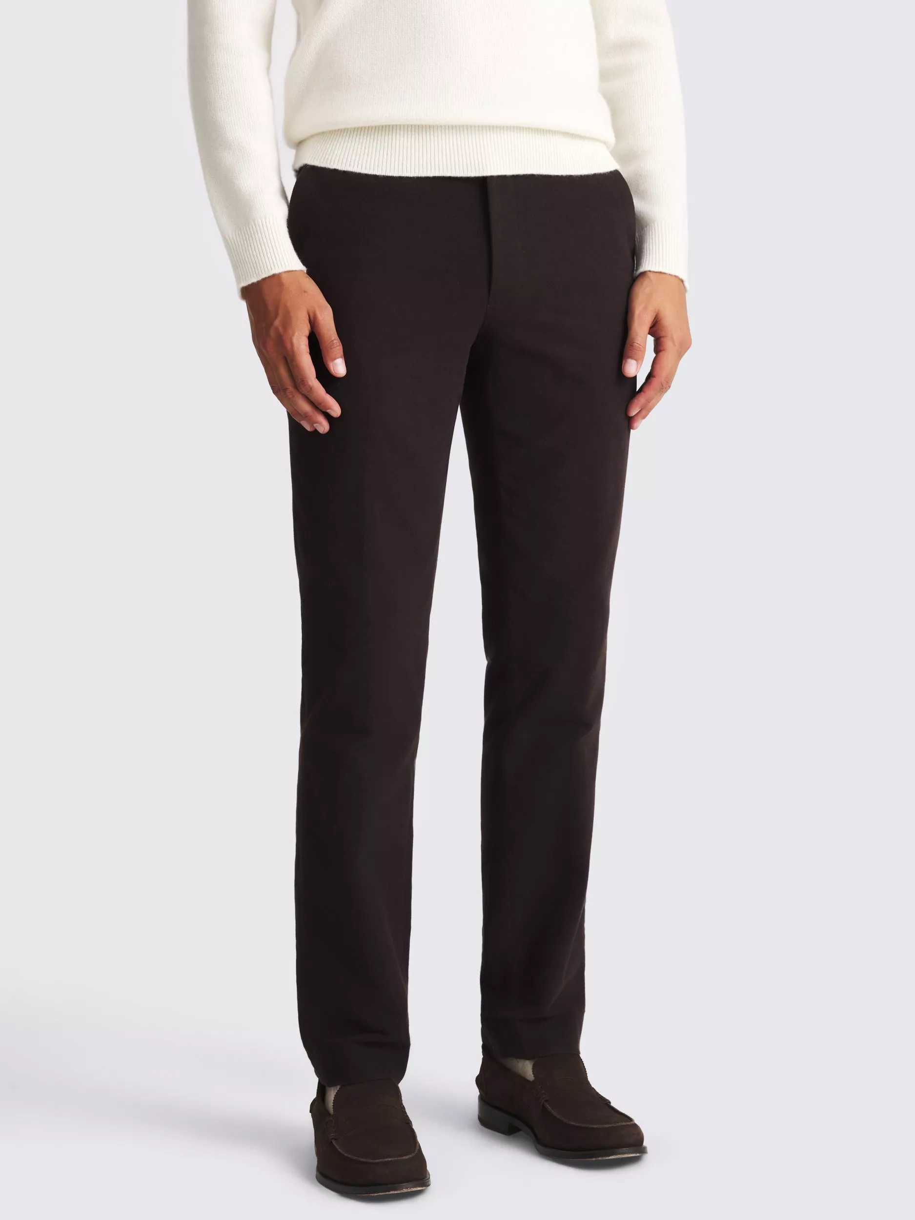 Crafted in pure-cotton moleskin with a suede-like finish, Moss' tailored-fit trousers are delivered in winter white that pairs well with neutral colours. Try them with chestnut knitwear for an easy look that straddles smart and casual.
