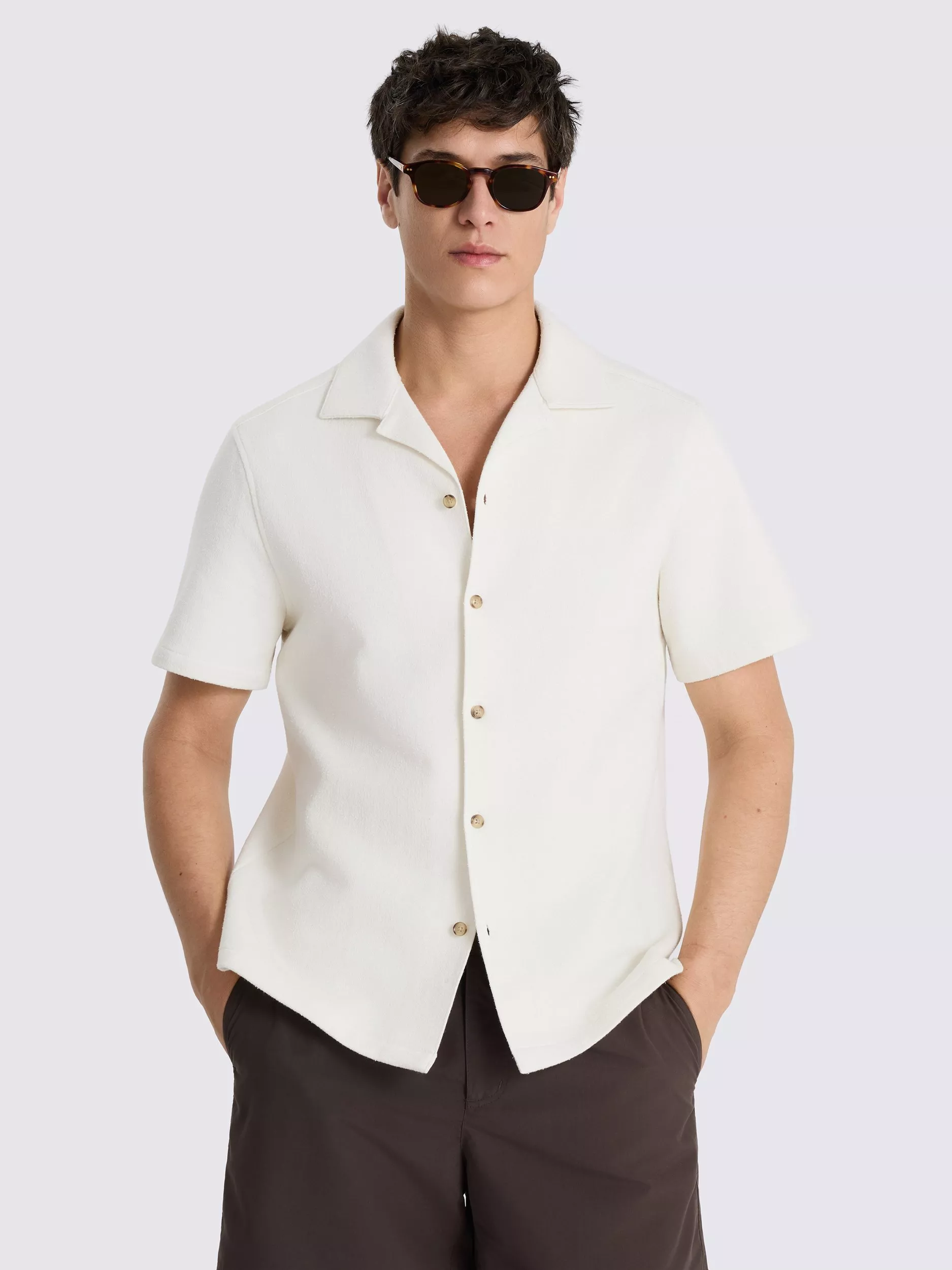 A striped short-sleeved shirt by Moss, made for breezy everyday wear in a soft cotton blend with a roomy regular fit.