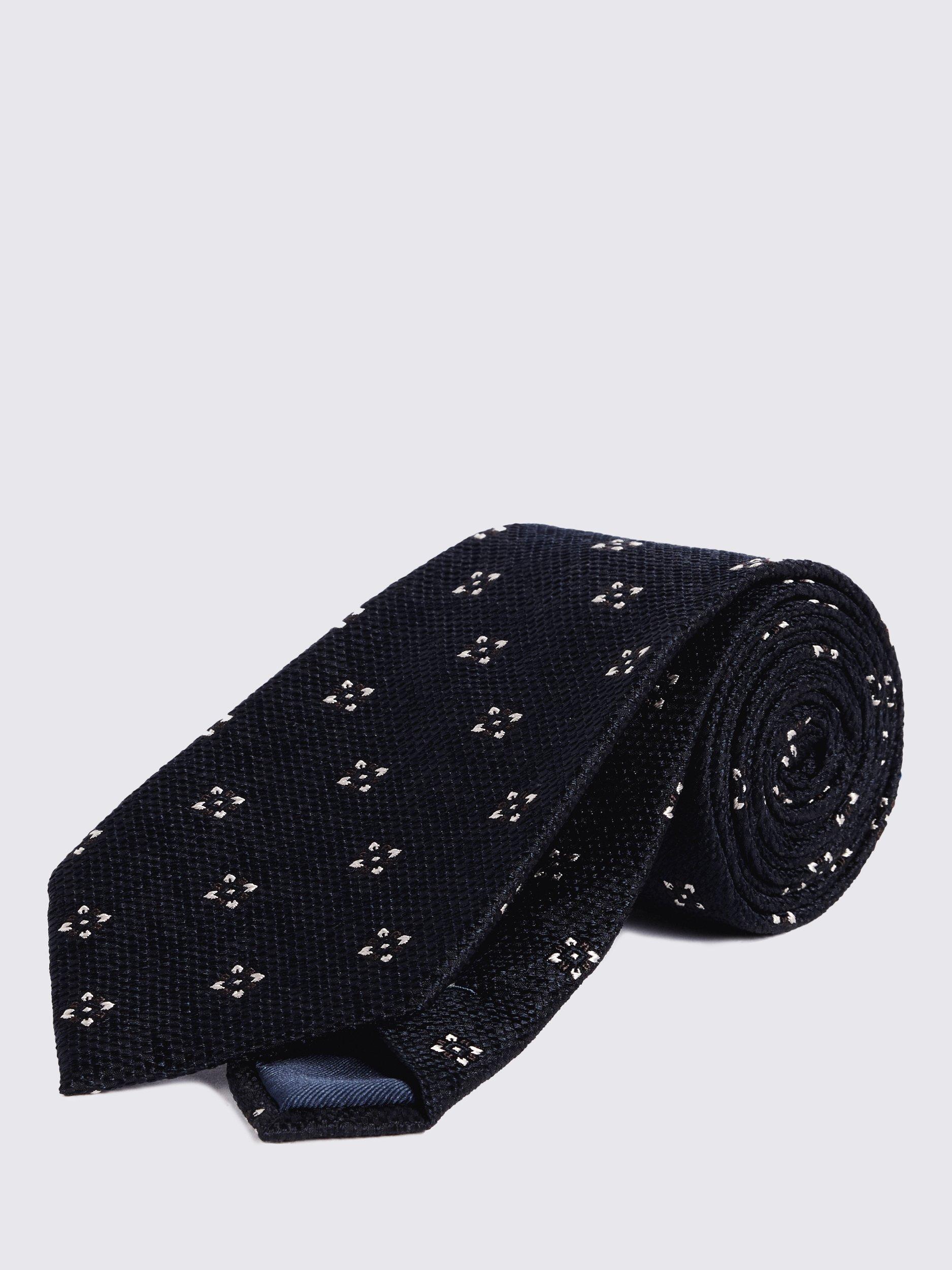 Floral embroidery only adds to the unique appeal of this textured silk tie.
