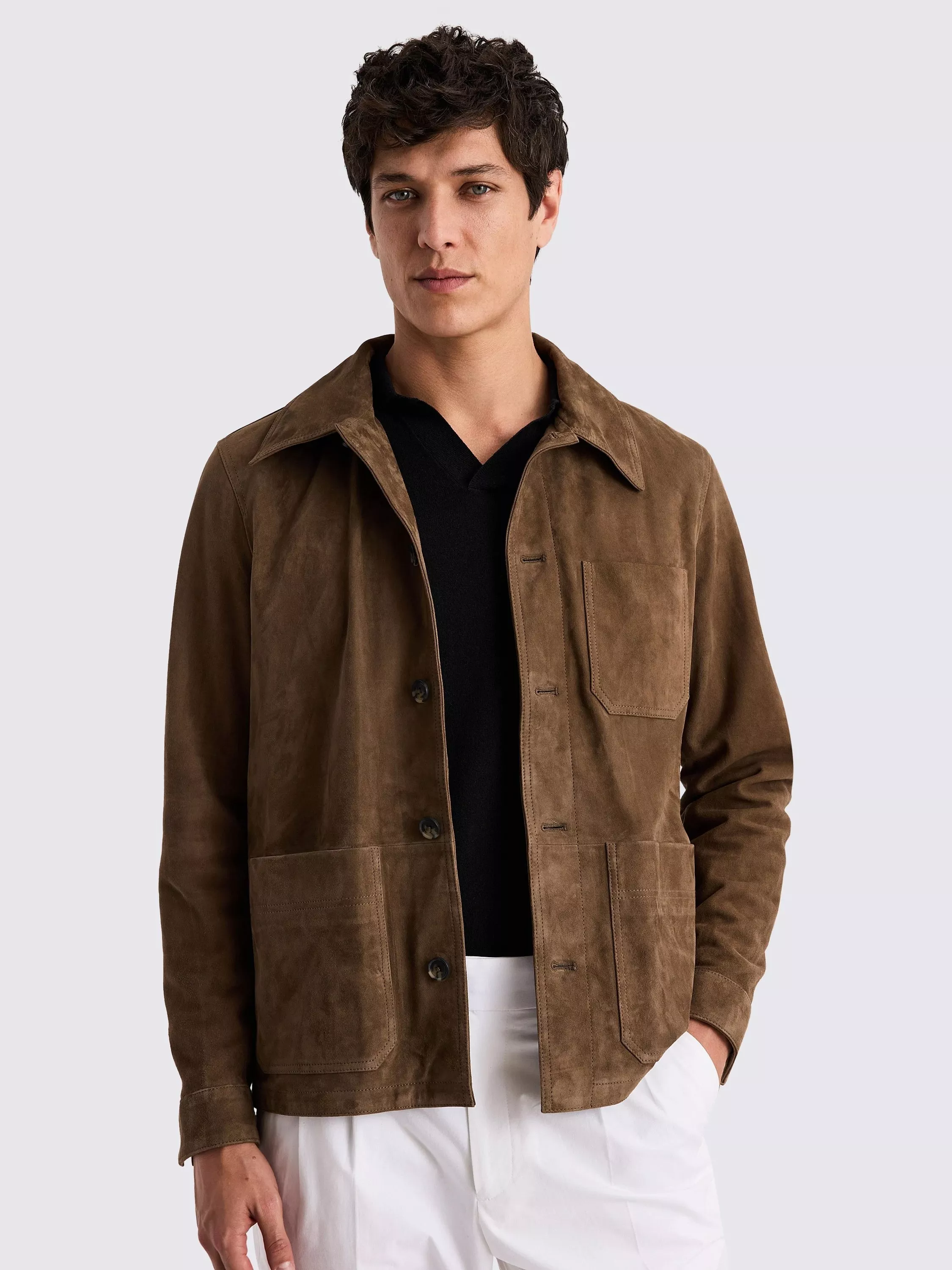 Take layering up a few levels with this shacket, designed in a shade that'll go with everything. Styled simply with patch pockets and tonal buttons, it's cut in butter-soft suede for a richer feel and a more polished look.