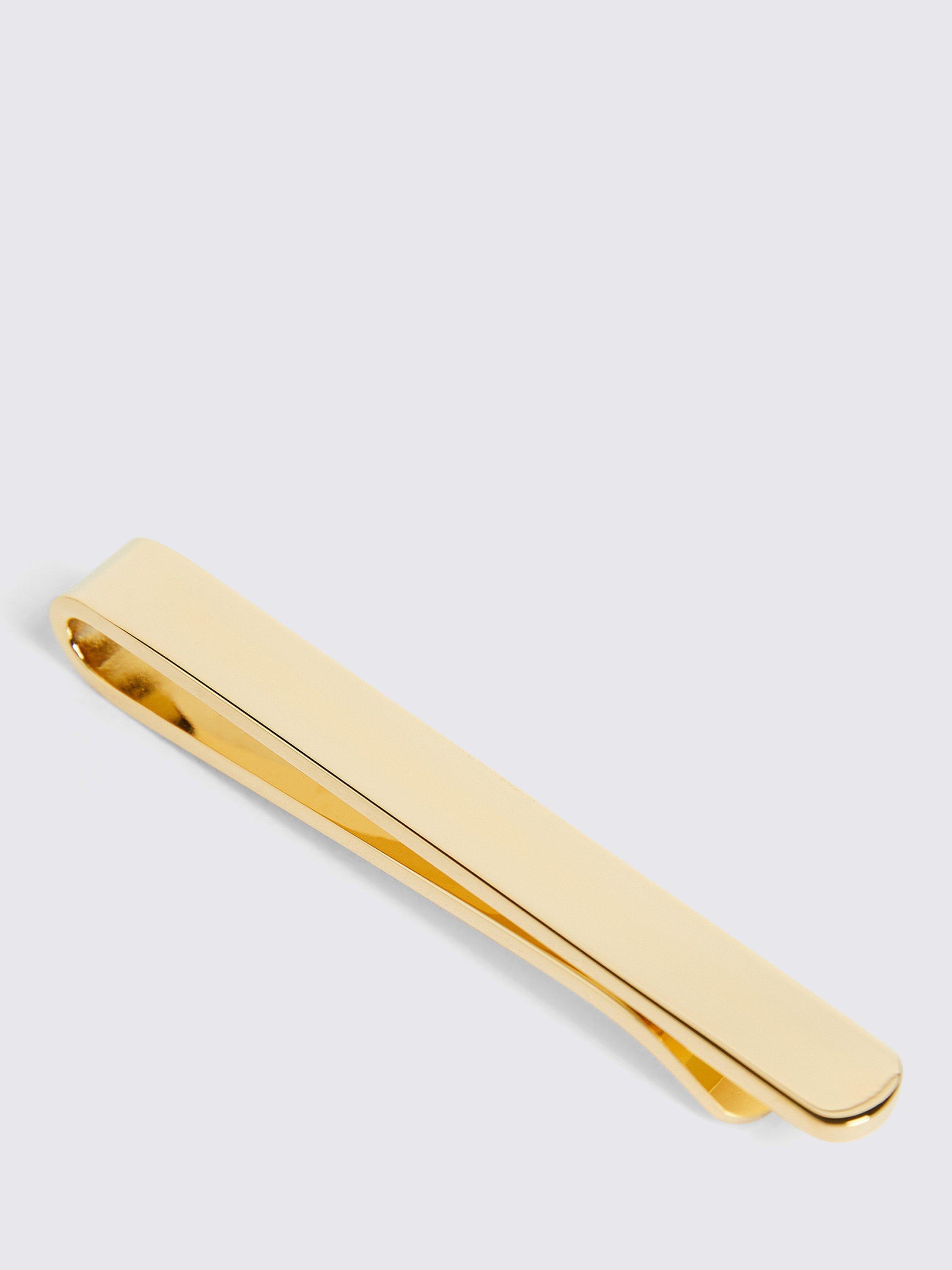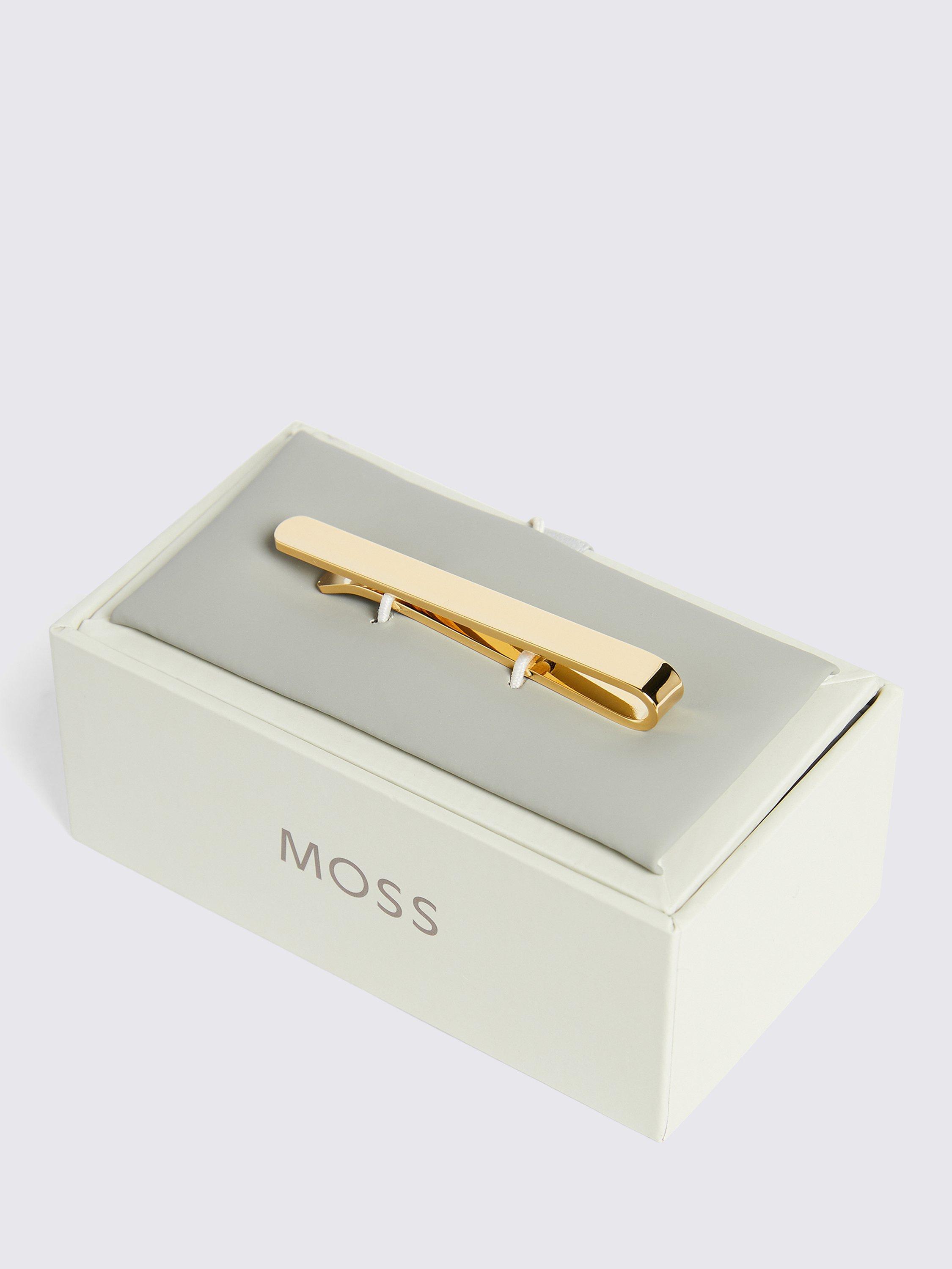 Simple and classic, Moss' slide-on tie bar will help your tie to lie neatly for a uniform look. It's crafted in brass with a gold-tone finish that'll elevate your formal outfit nicely.
