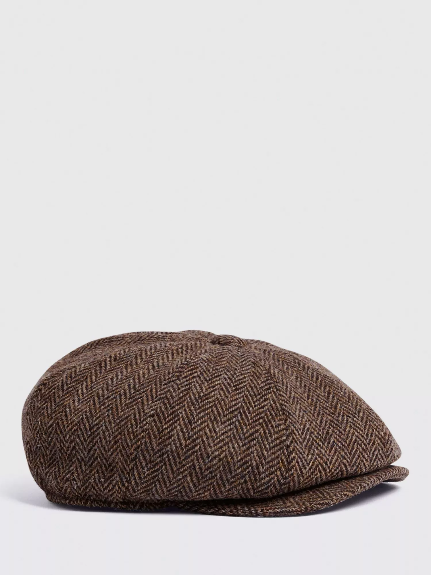 Crafted in authentic Harris Tweed, a pure-wool textile hand-woven in the Outer Hebrides with unrivalled skill and care, Moss' baker boy hat is one you'll want in your lineup this winter. Its neutral tones, textured effect and contrast lining are great for offsetting the solid weave of your coat and tailoring.