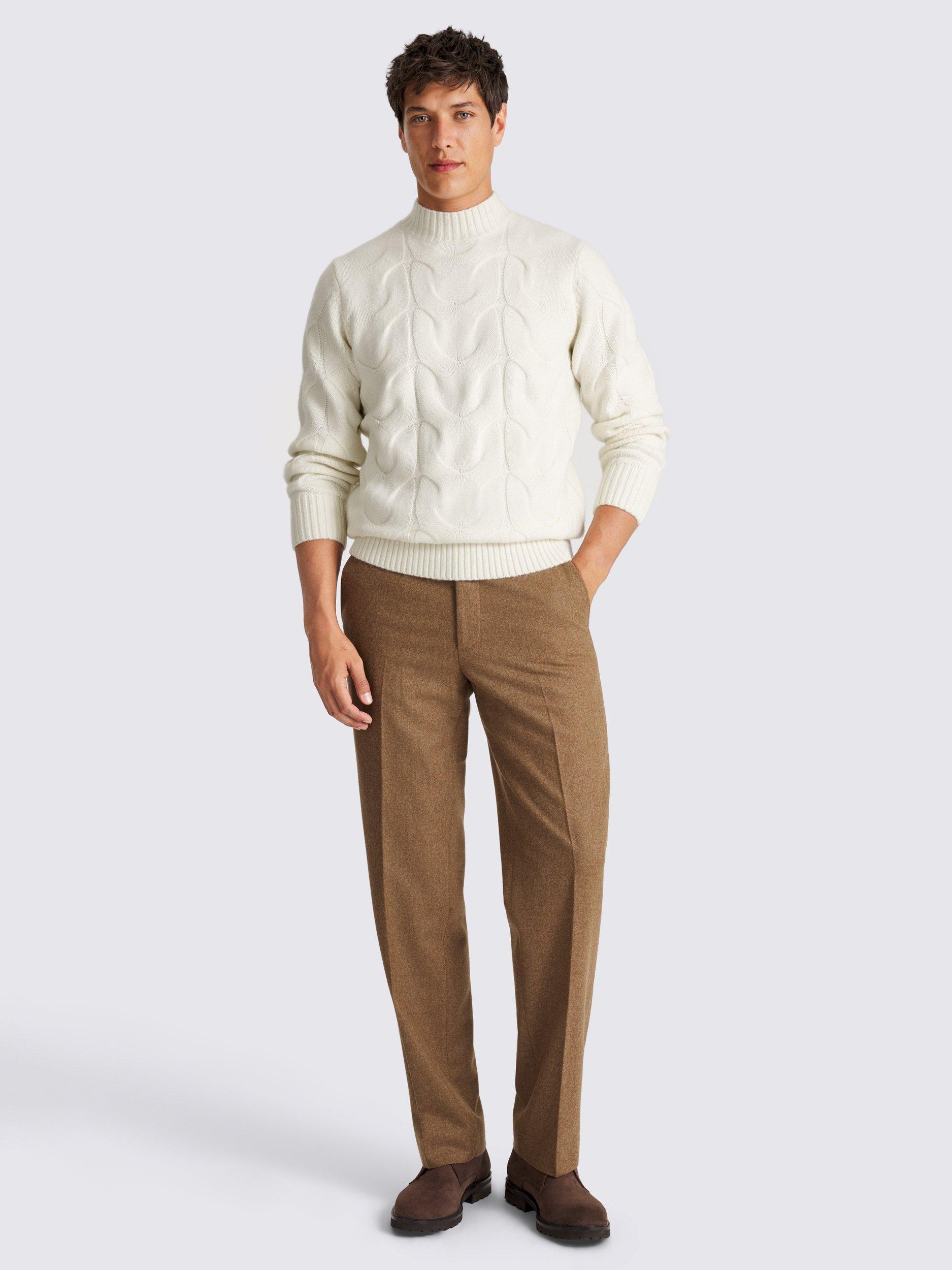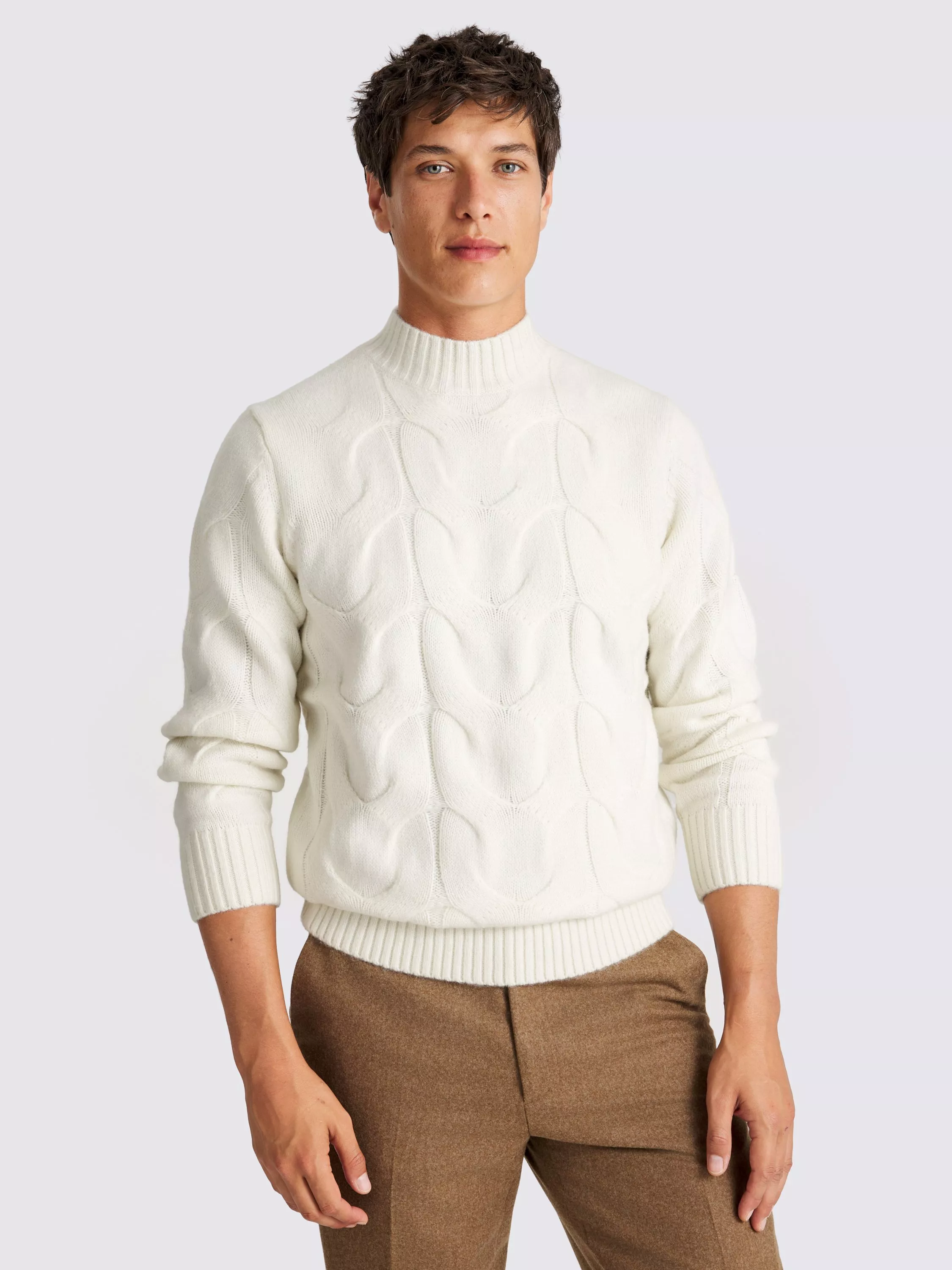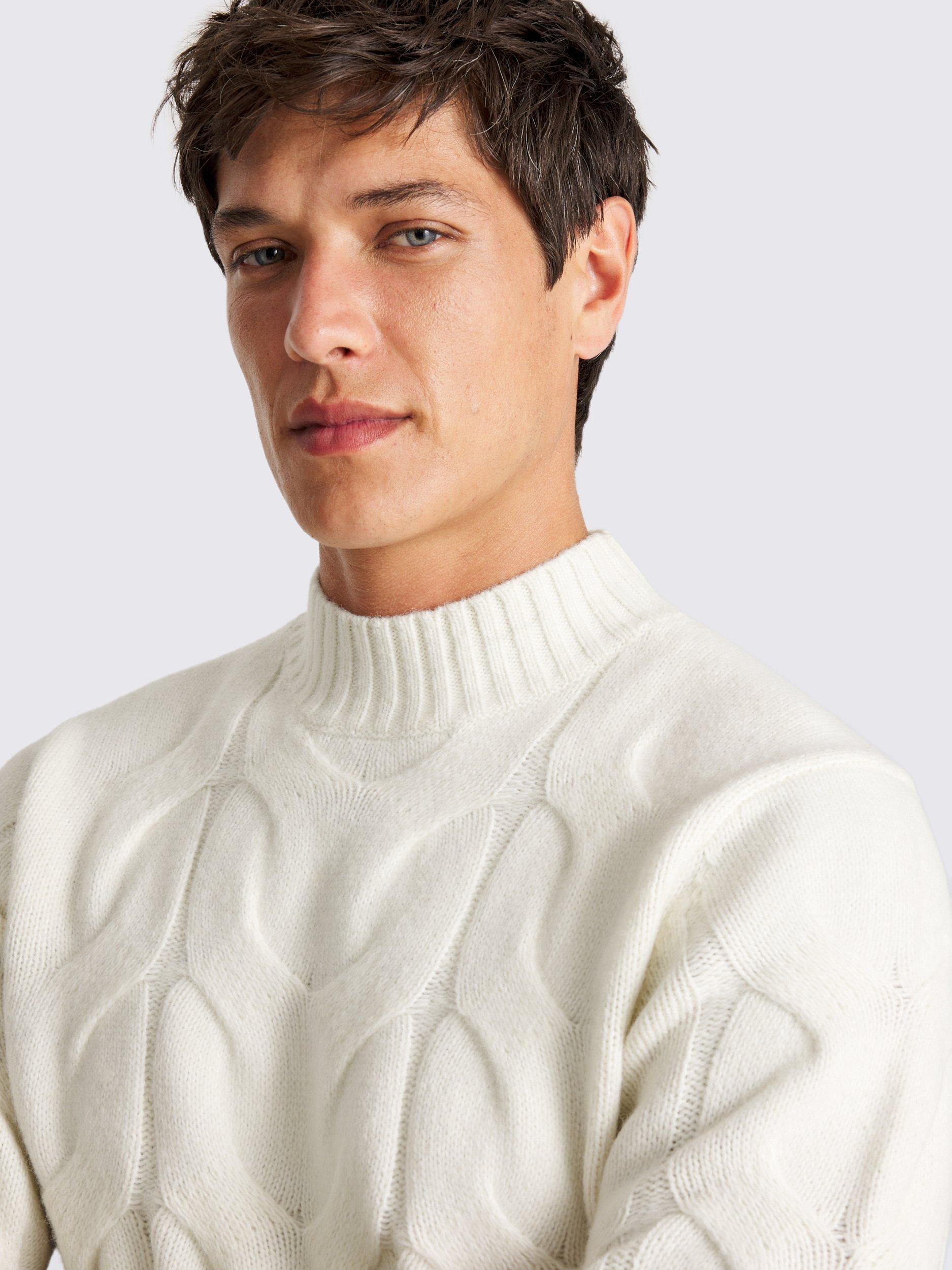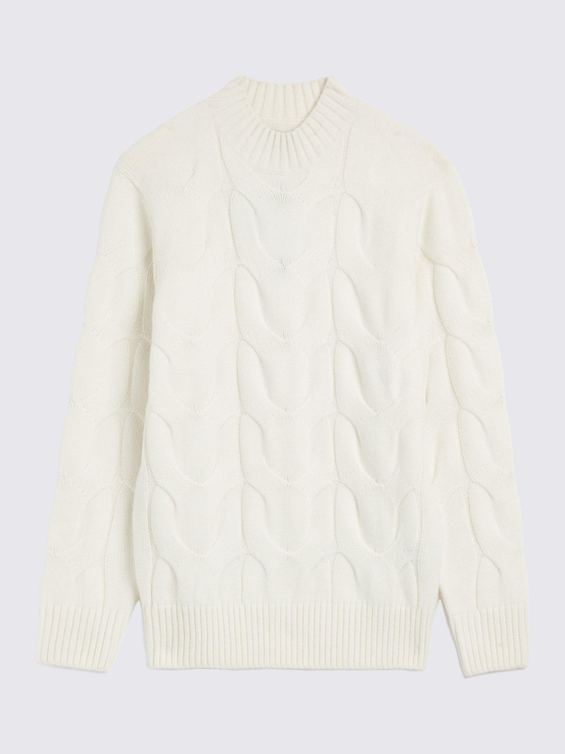 A characterful jumper with a high neckline and a smooth cable-knit structure.