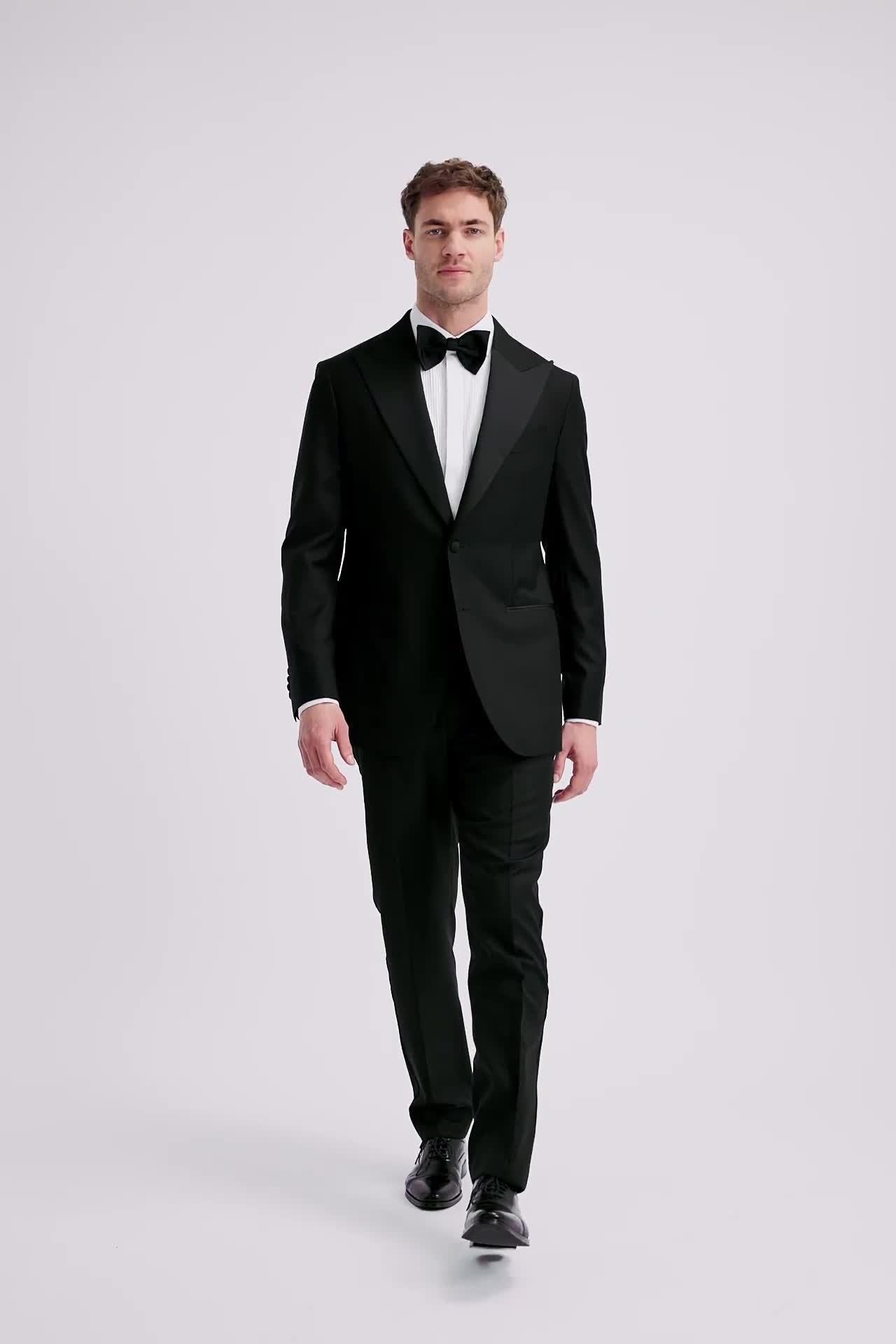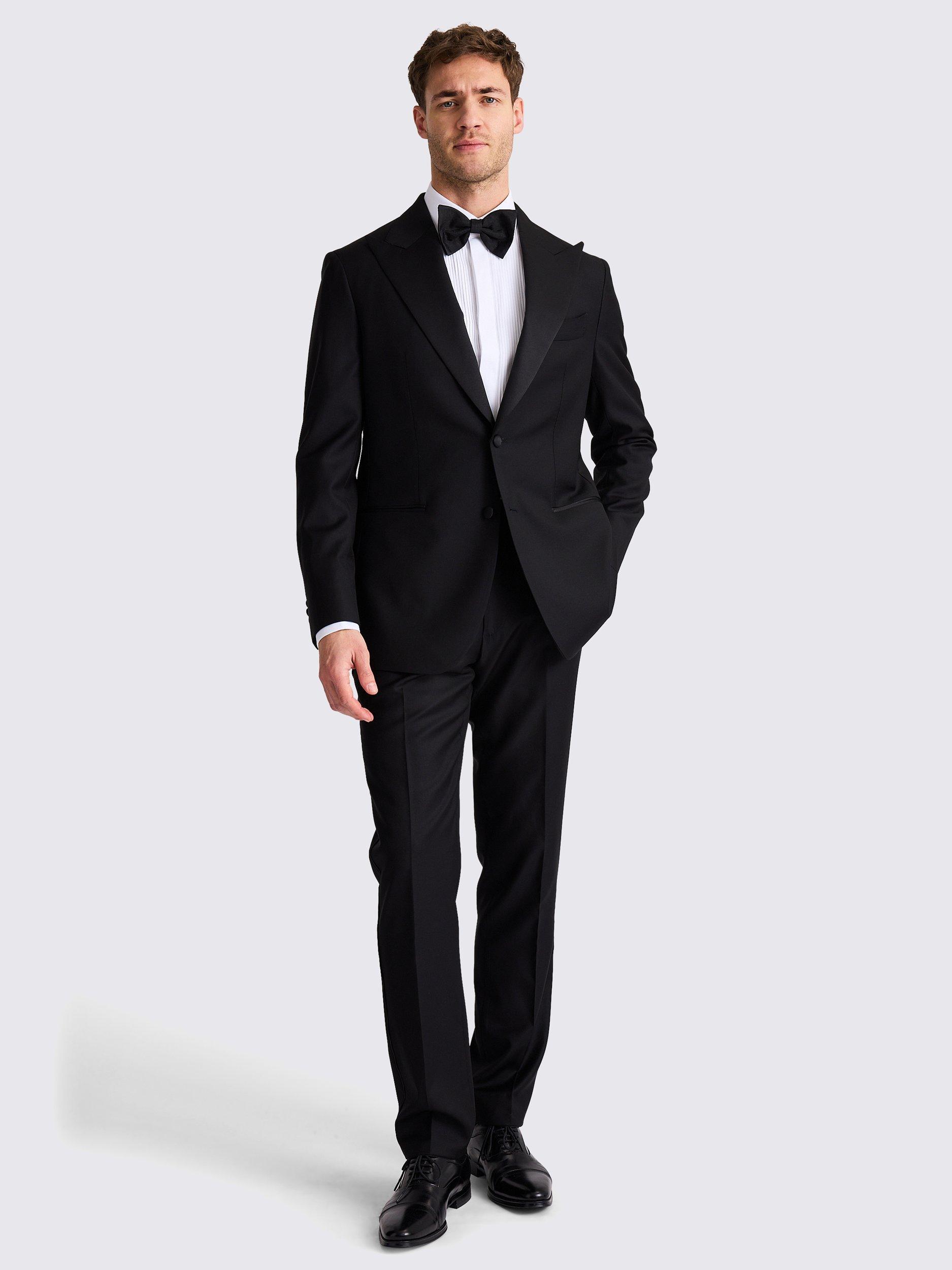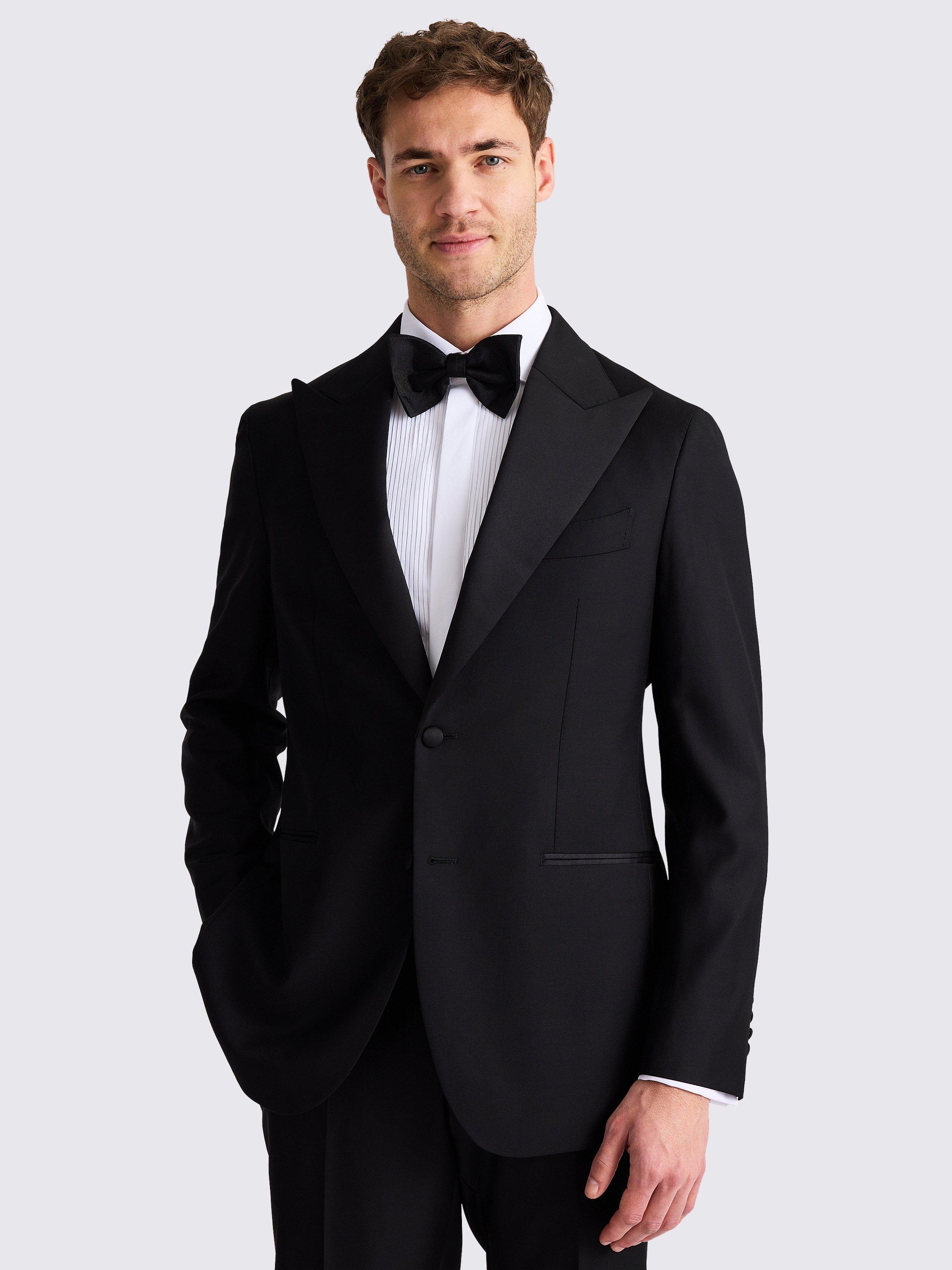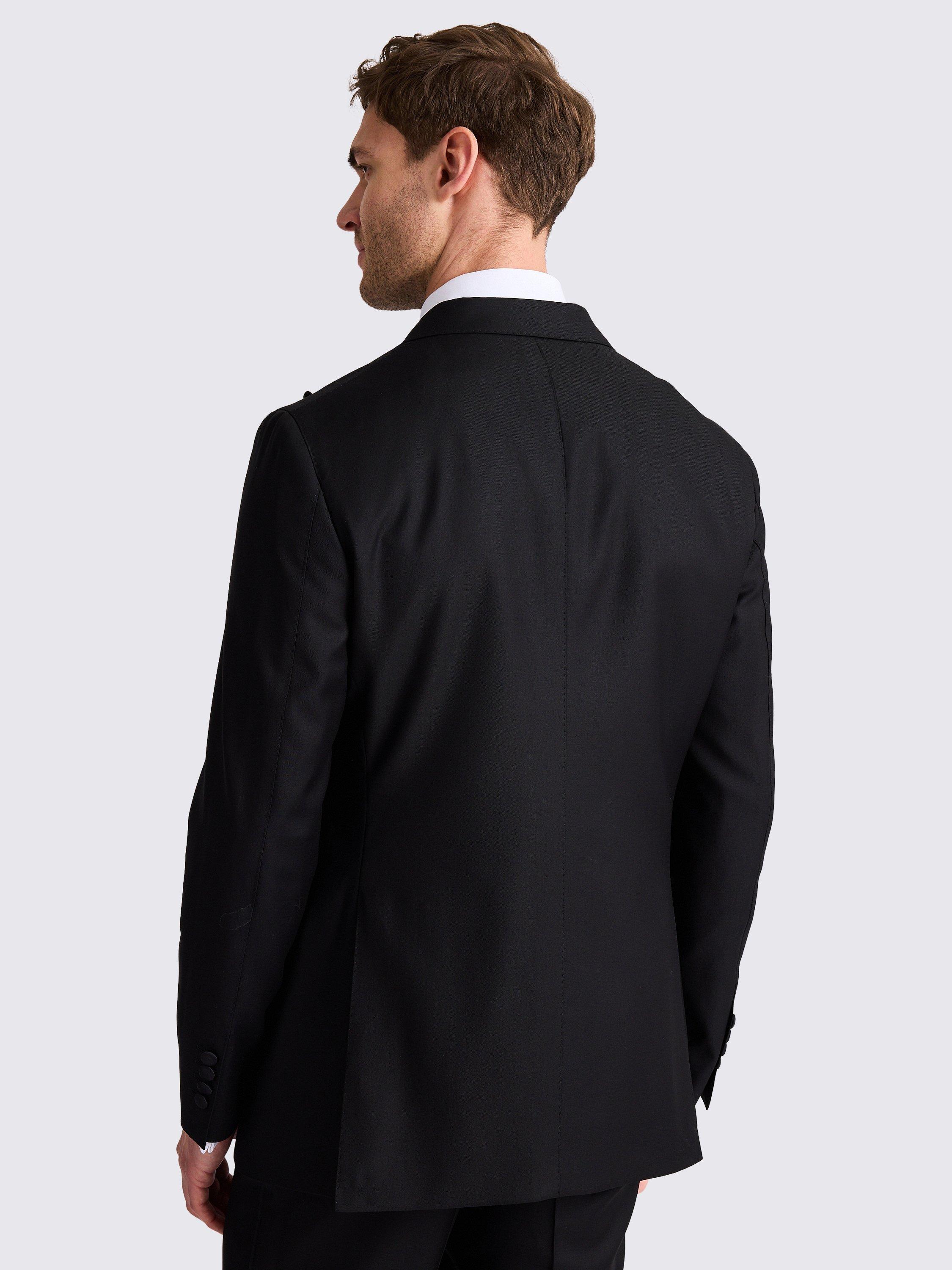 With considered details, including AMF stitching and a mitred waistband extension, this black suit jacket makes easy work of honouring the dress code. Crafted in wool-mohair twill made at the Vitale Barberis Canonico mill, it's cut on Moss's Italian tailored block with a slightly longer jacket length.