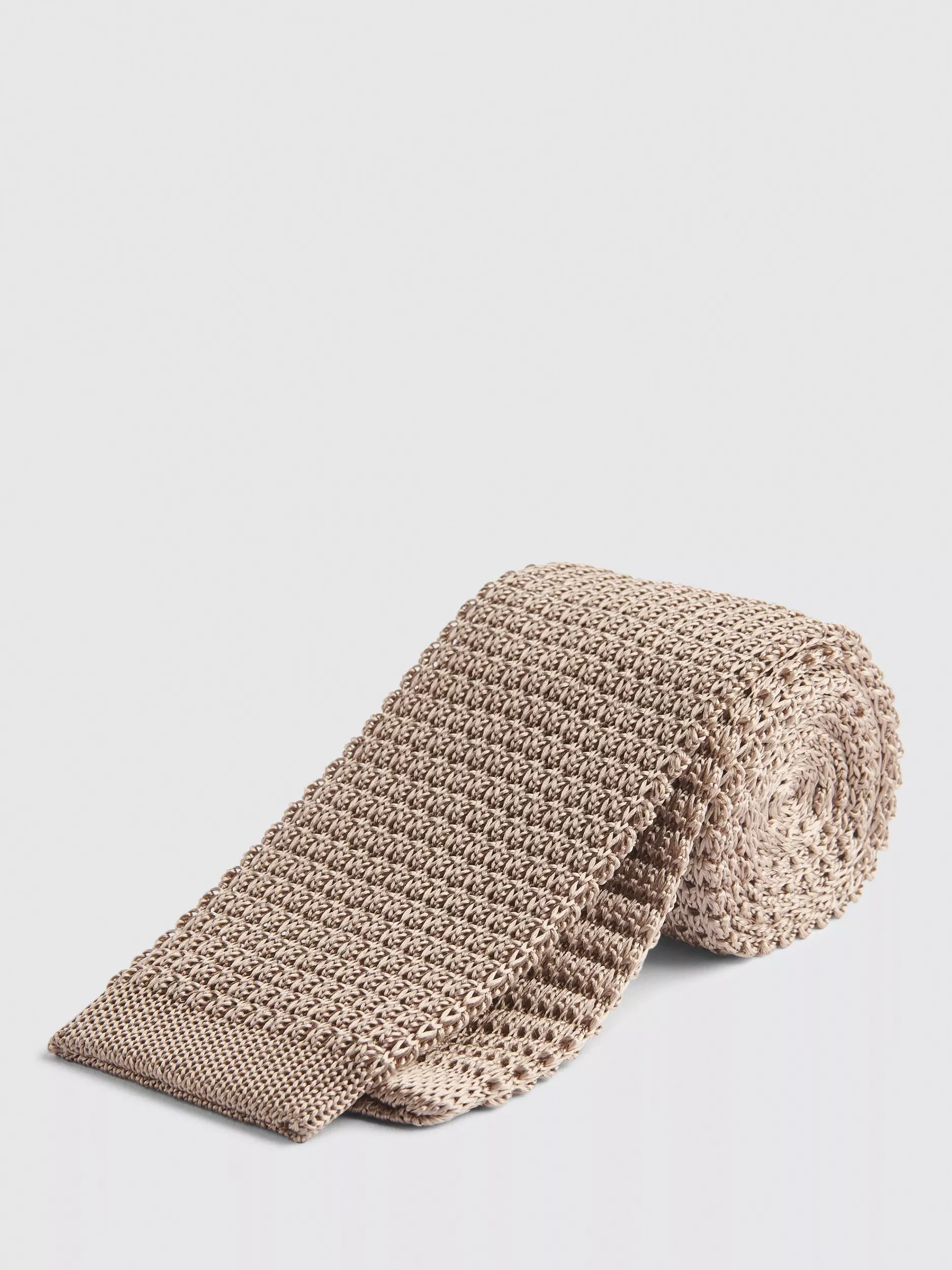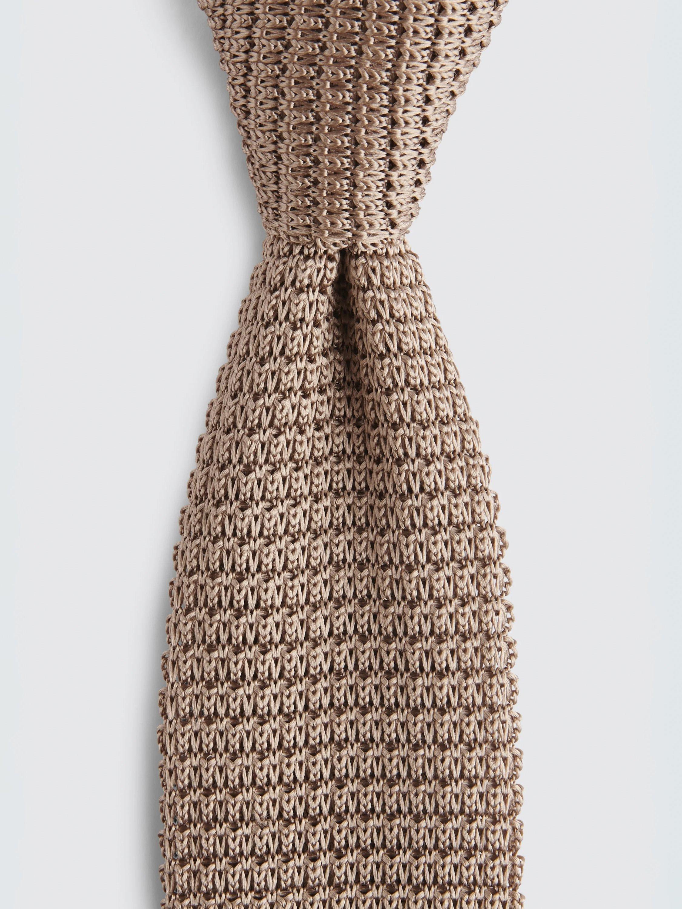 MossKnitted Silk Tie, Biscuit