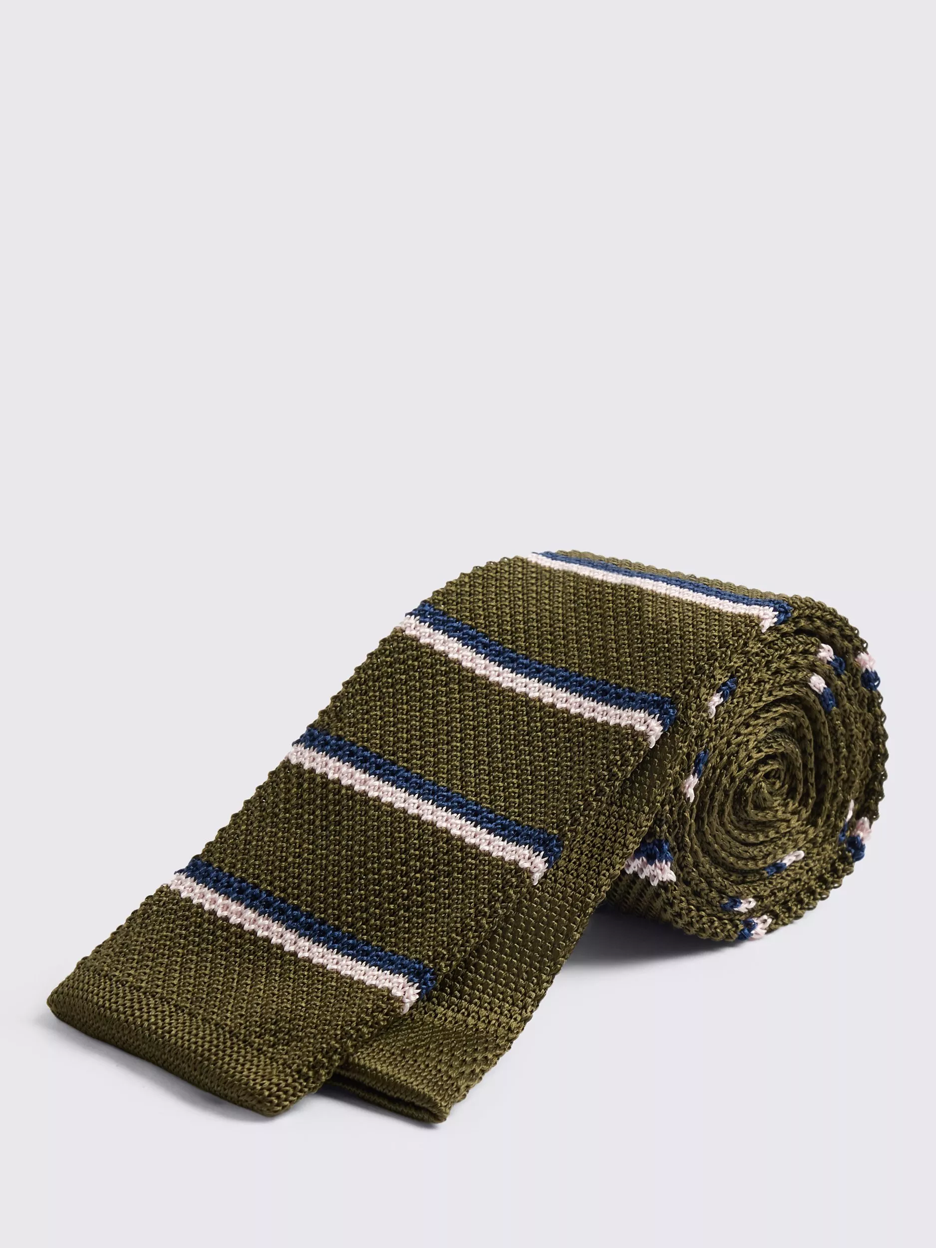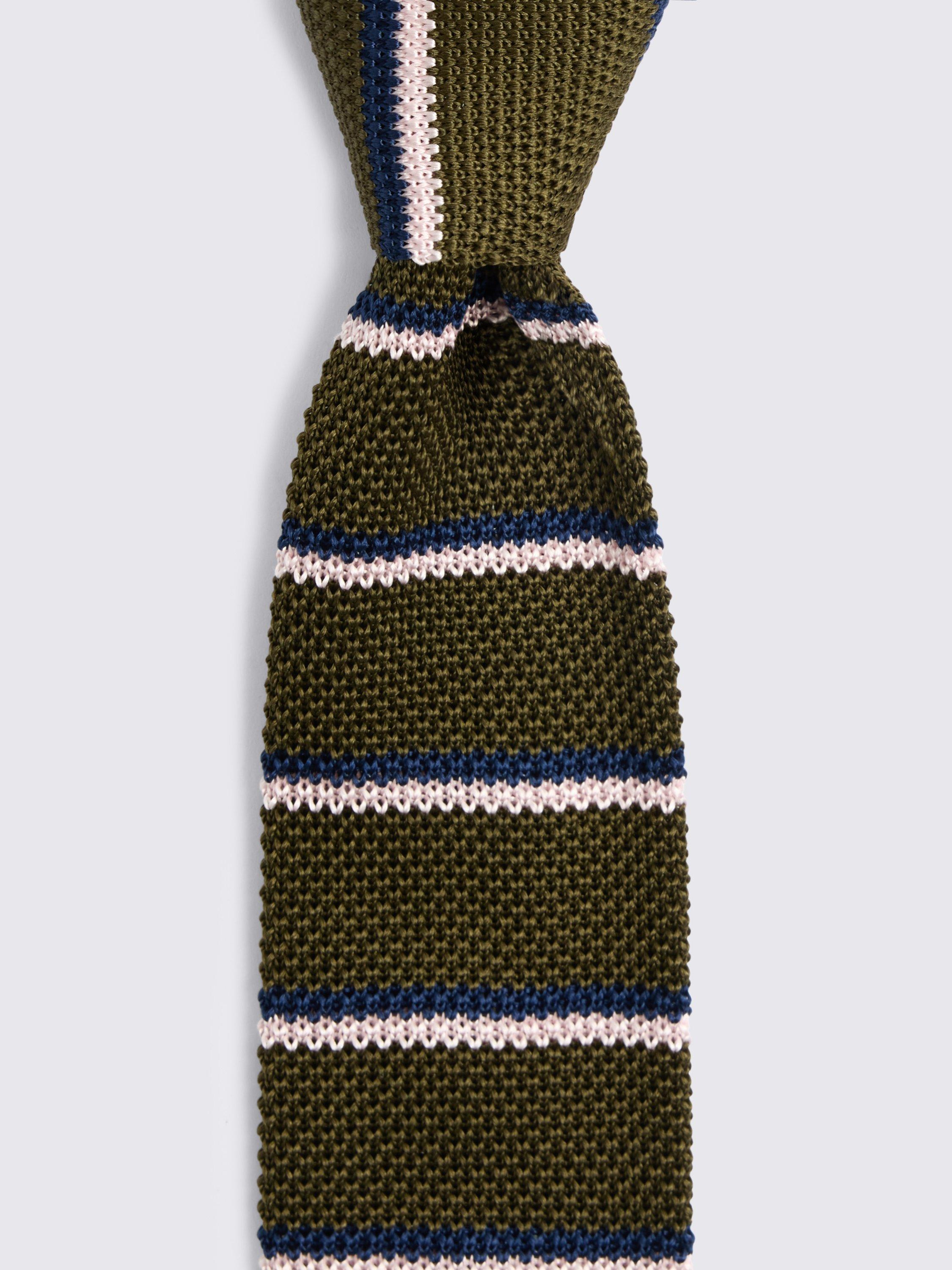 MossKnitted Stripe Silk Tie, Khaki/Pink