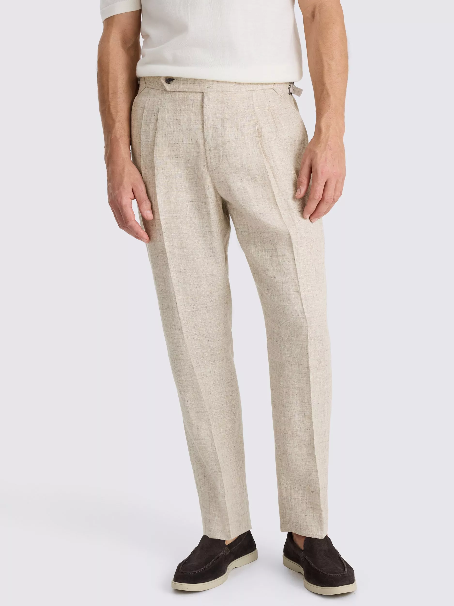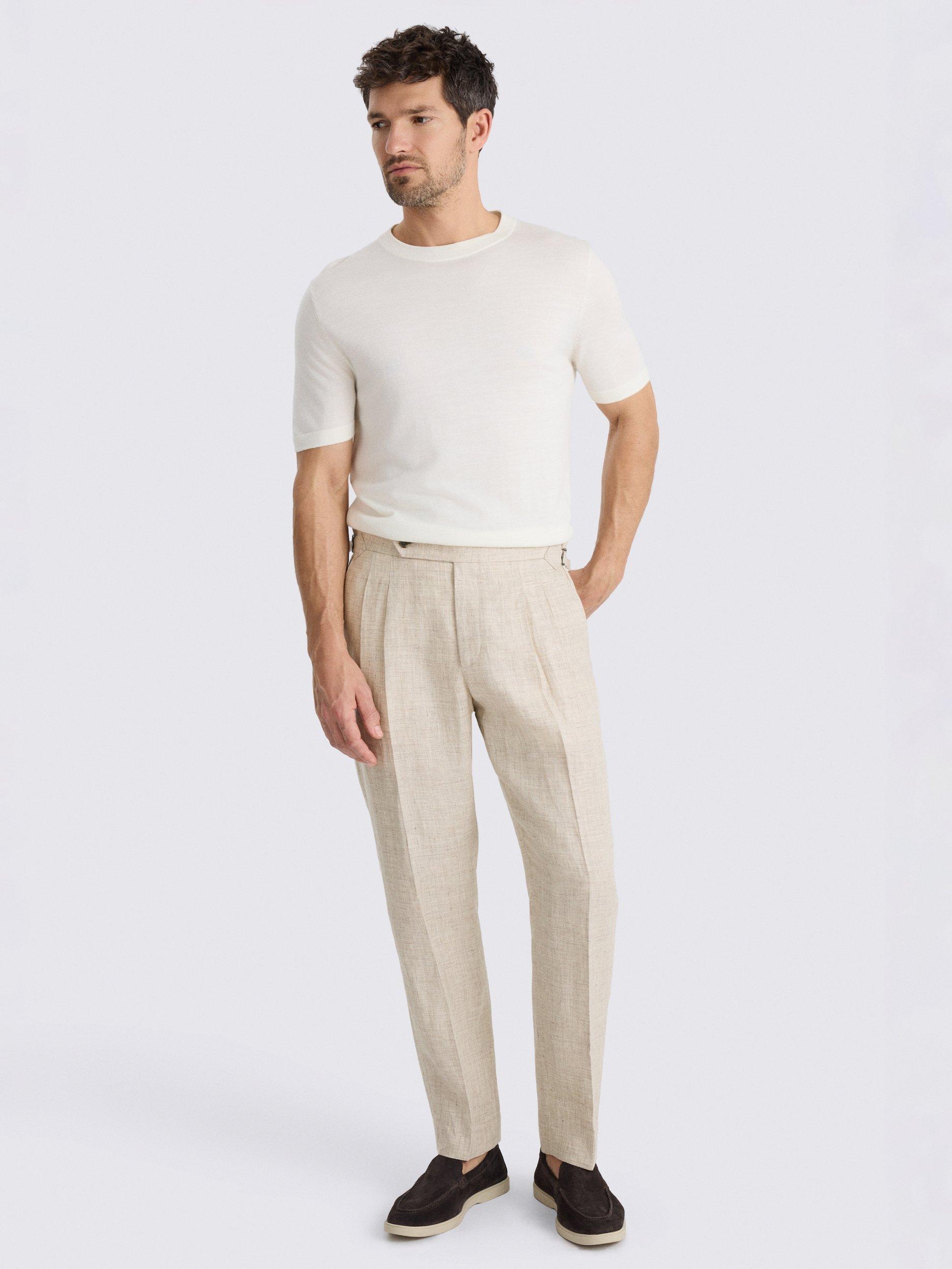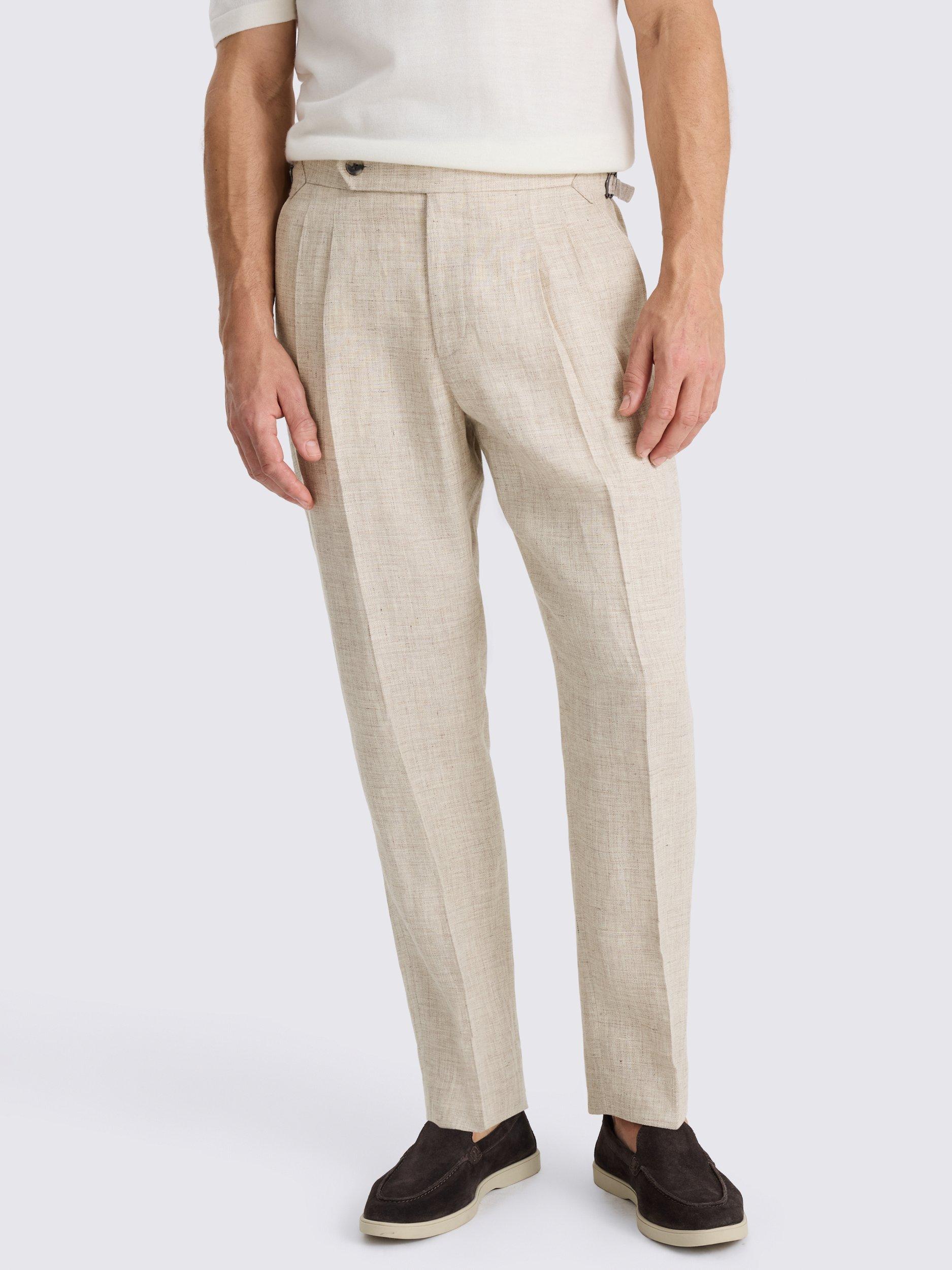 Update your foundations with the modern cut and double front pleats of these trousers. They're crafted in 100% linen with a soft-touch finish and cooling feel that's perfect for summer.