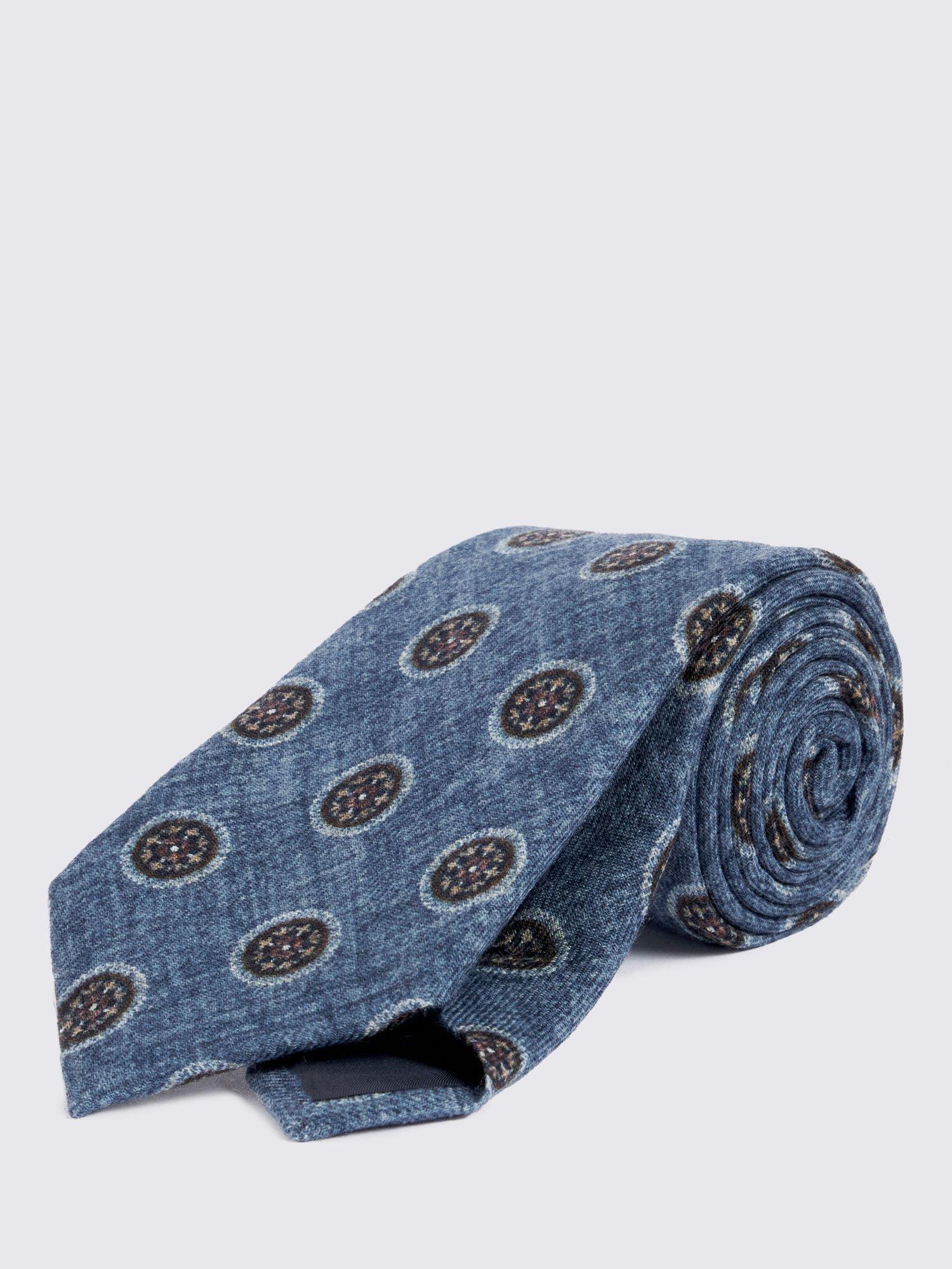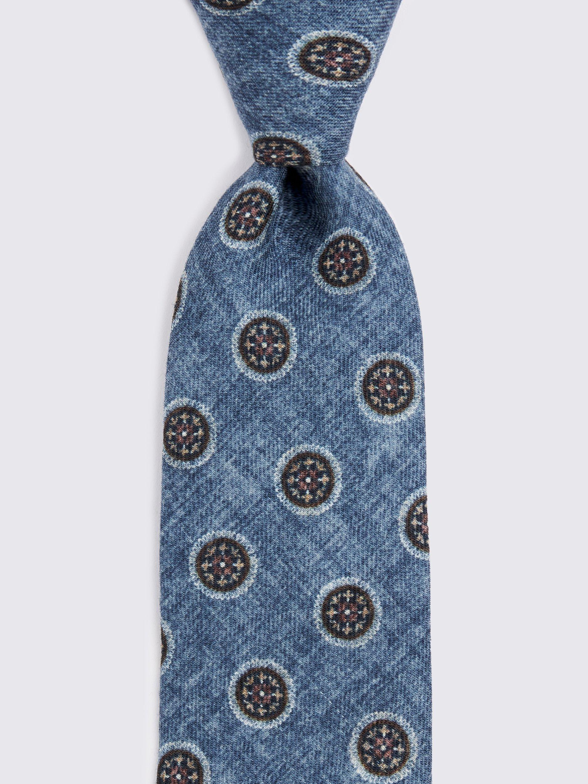 Moss have chosen the finest pure-wool fabric, woven at the Italian Tessitura Bottinelli mill, to create this classically inspired tie. Medallion motifs punctuate the design for a style that never falls out of favour.