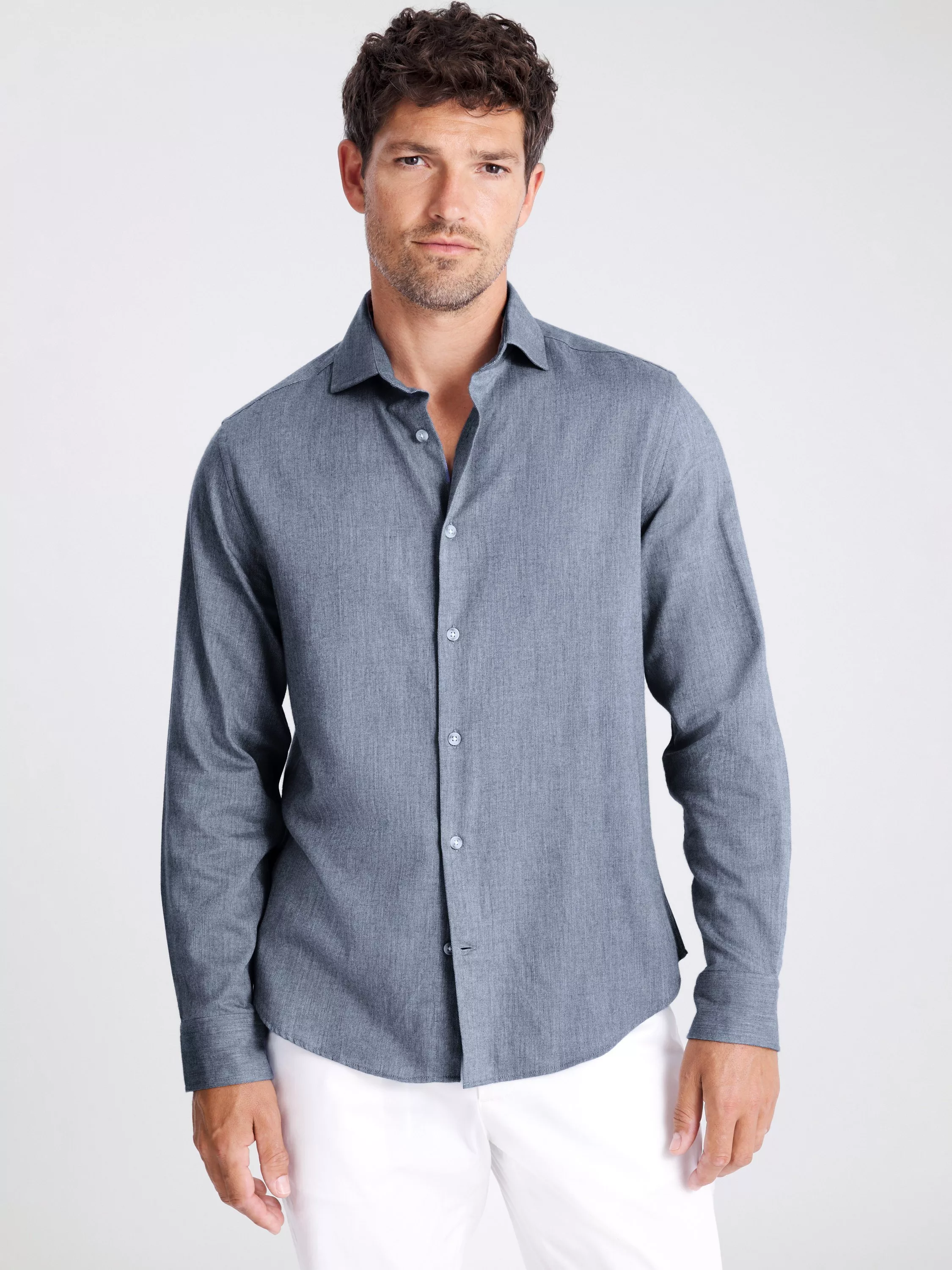 With a brushed effect that fluffs up the pure-cotton fibres for extra softness, Moss' shirt is one you'll find easy to dress up ...and down. The fabric has a melange finish that'll set off a pair of paper-touch cotton chinos nicely.