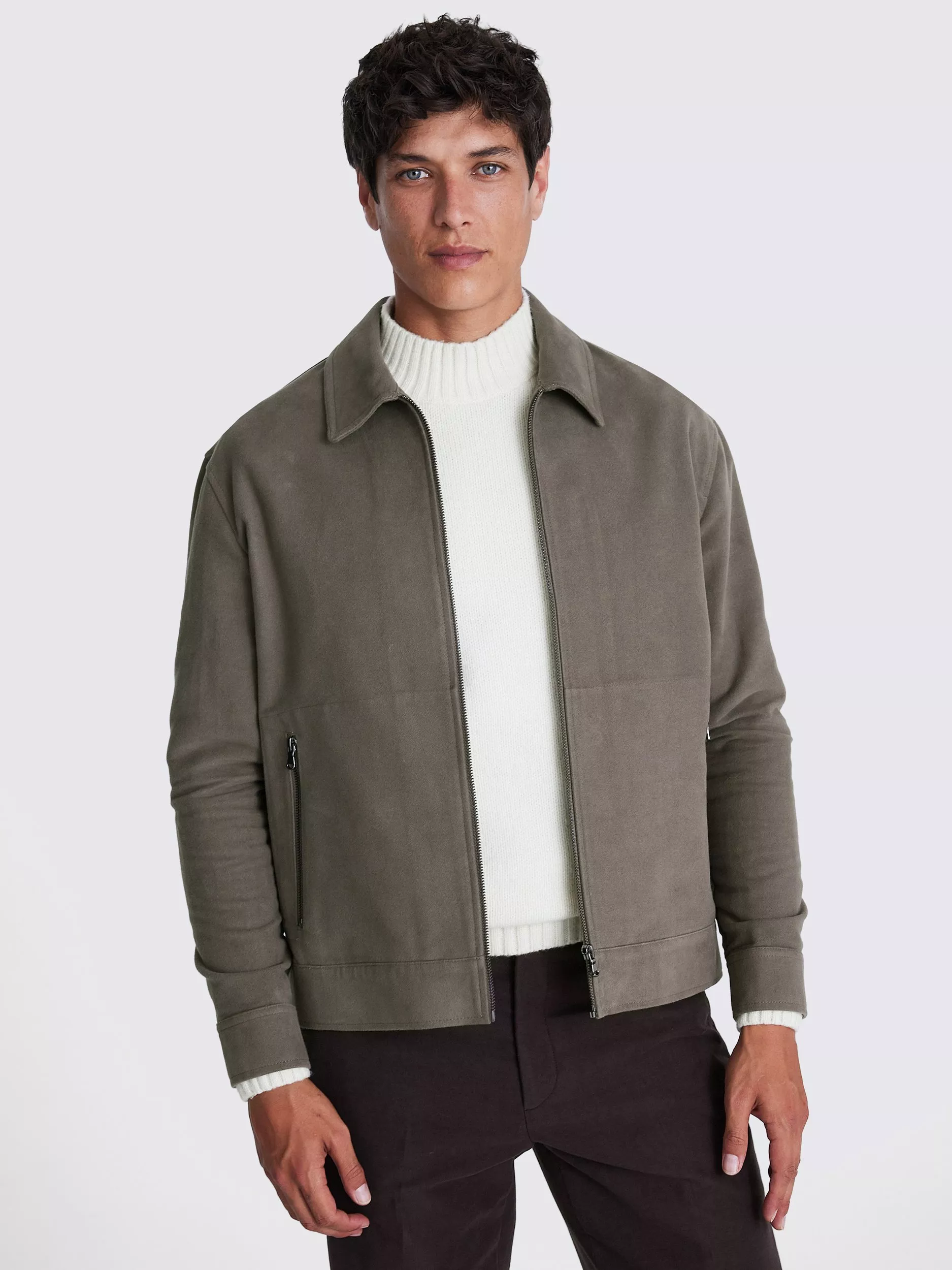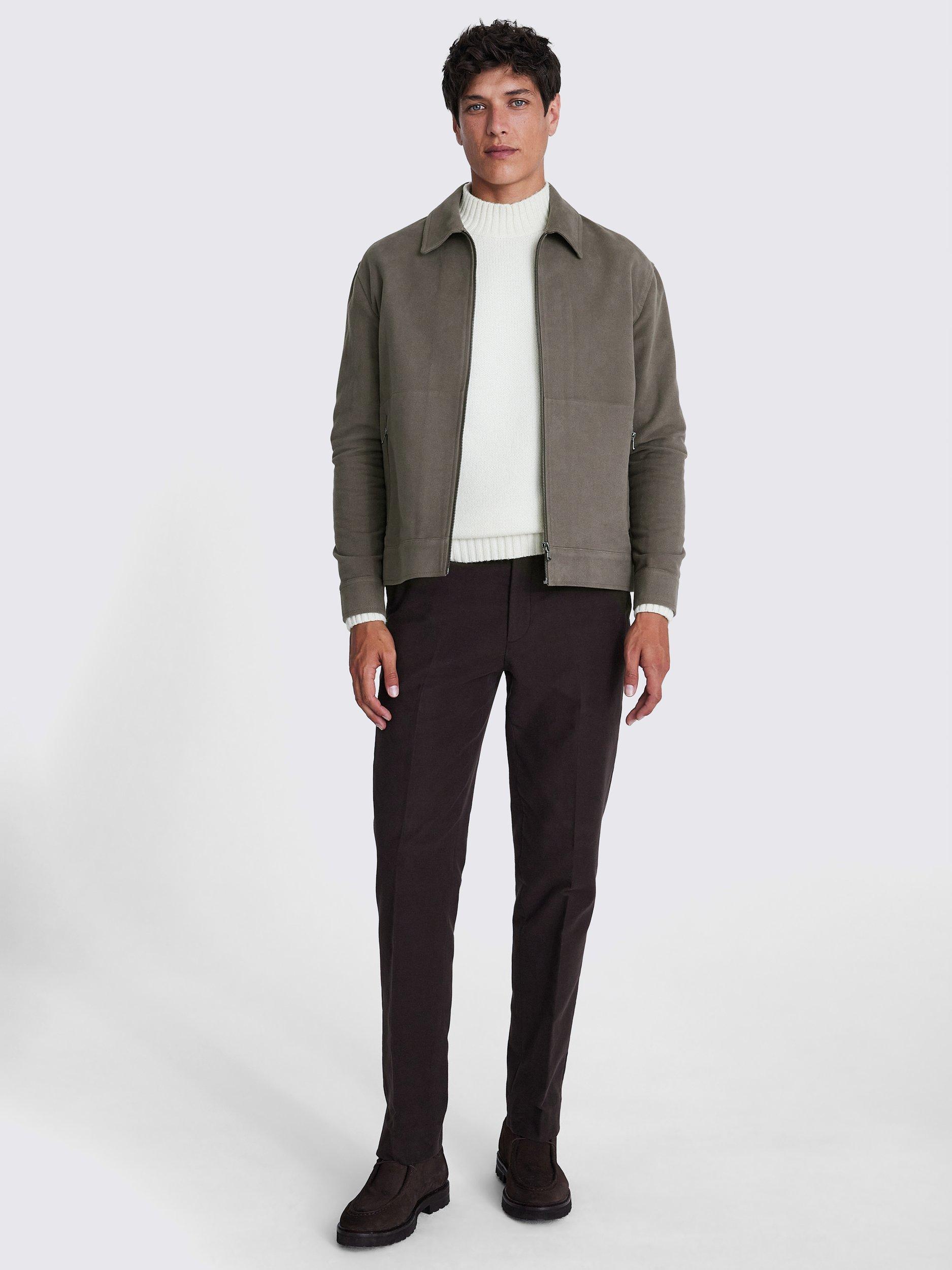 Thin and breathable yet pretty weighty at the same time, Moss' Italian-made cotton moleskin-effect material is a great choice for layering pieces. Pick up this taupe jacket and you'll find yourself reaching for it all week long.