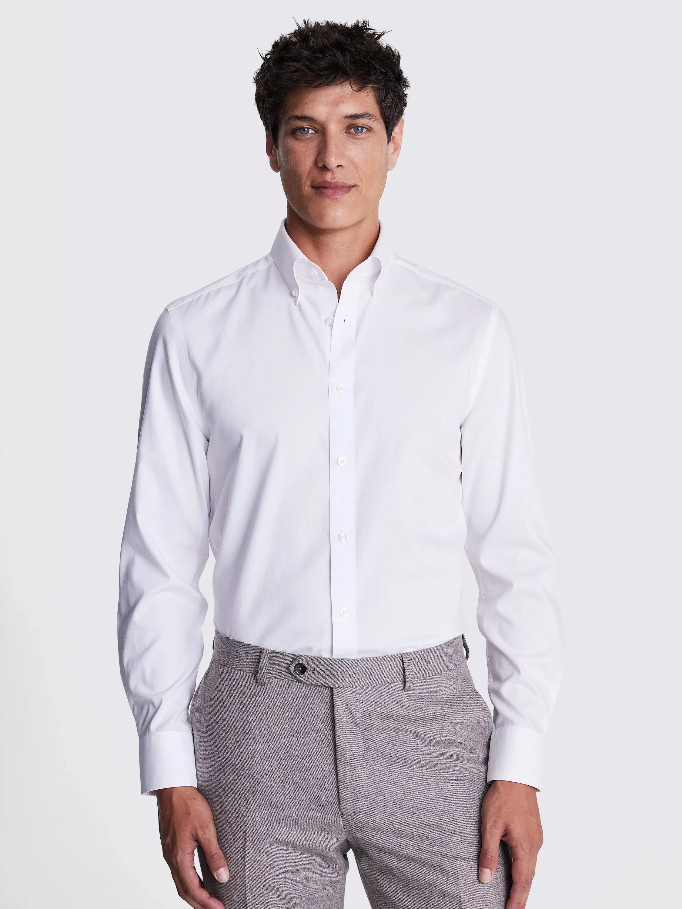 Tailored for a sharp, modern fit, this white shirt is a perfect choice for daily wear. The Oxford cotton is treated with innovative technology that permanently smooths the fabric, so it will never need ironing. With a classic button-down collar and carefully taped seams, it's designed for both style and ease.