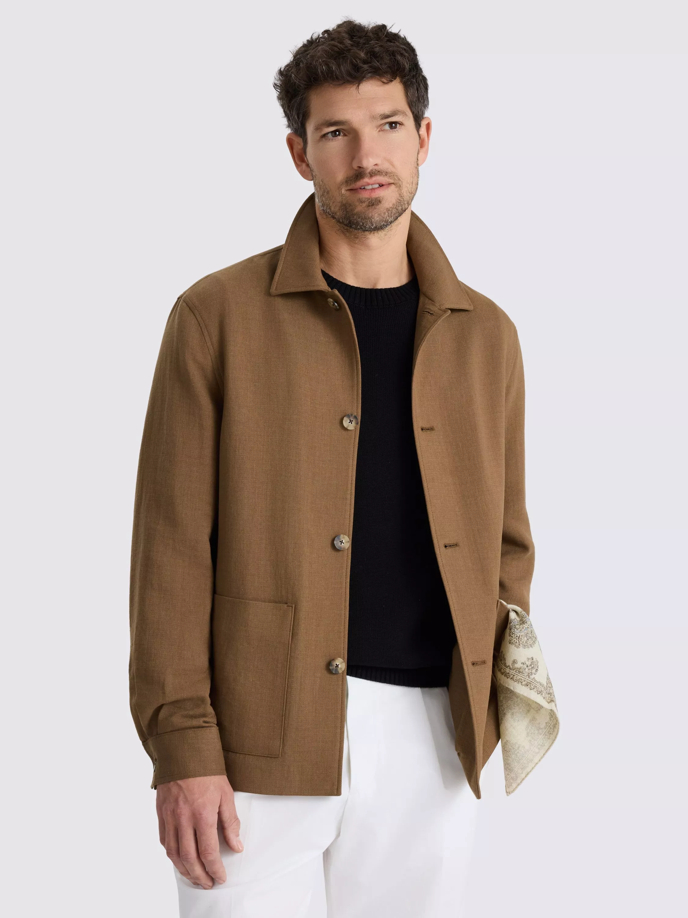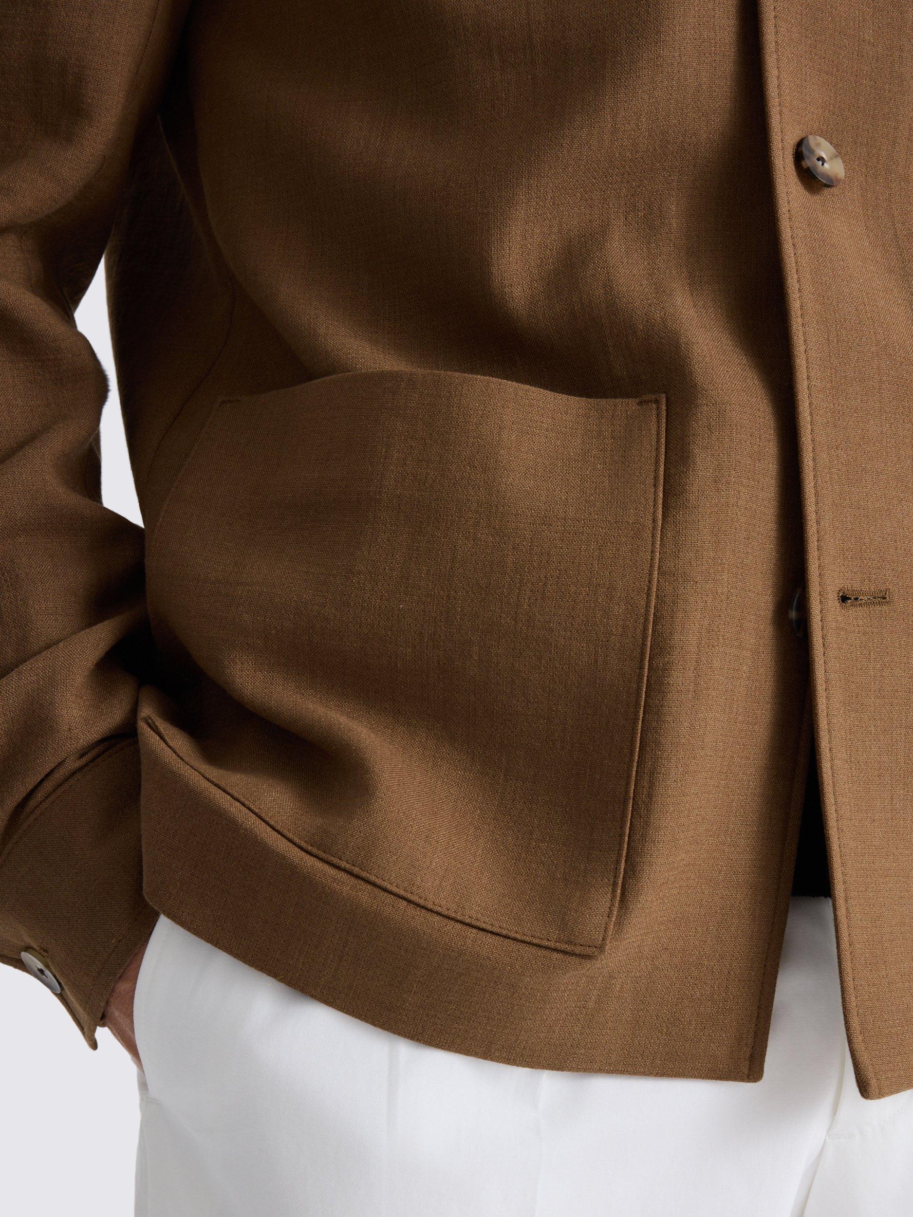 The chestnut tone, patterned buttons and clean patch pockets add up to versatile simplicity you'll look forward to styling.