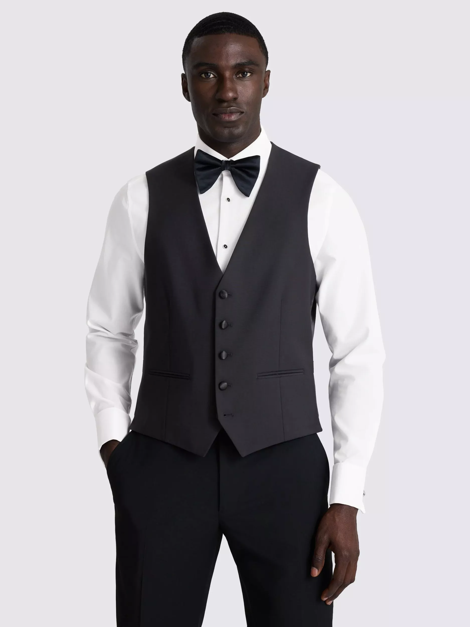 Complete a black-tie-ready three-piece with this Performance tailored-fit waistcoat. Designed in wool-blend cloth with sharp satin trims, the fabric includes a generous amount of stretch to ensure comfortable movement and provide reliable wrinkle resistance. The quality construction and intelligent material blend make this an effortlessly polished foundation for formal wear.