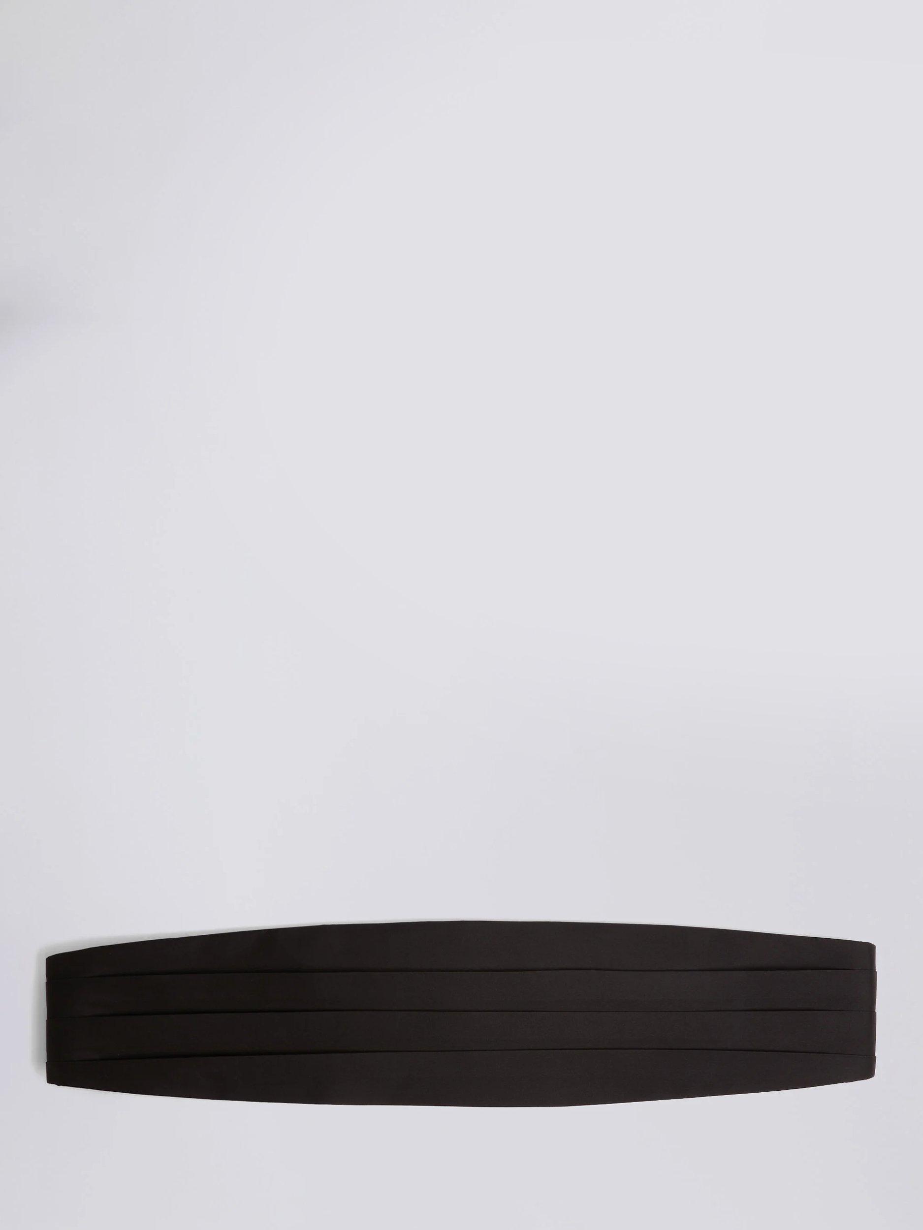 Moss' pleated black cummerbund is crafted in 100% silk for a rich and refined appearance and is ideal for pairing with a jacquard bow tie.