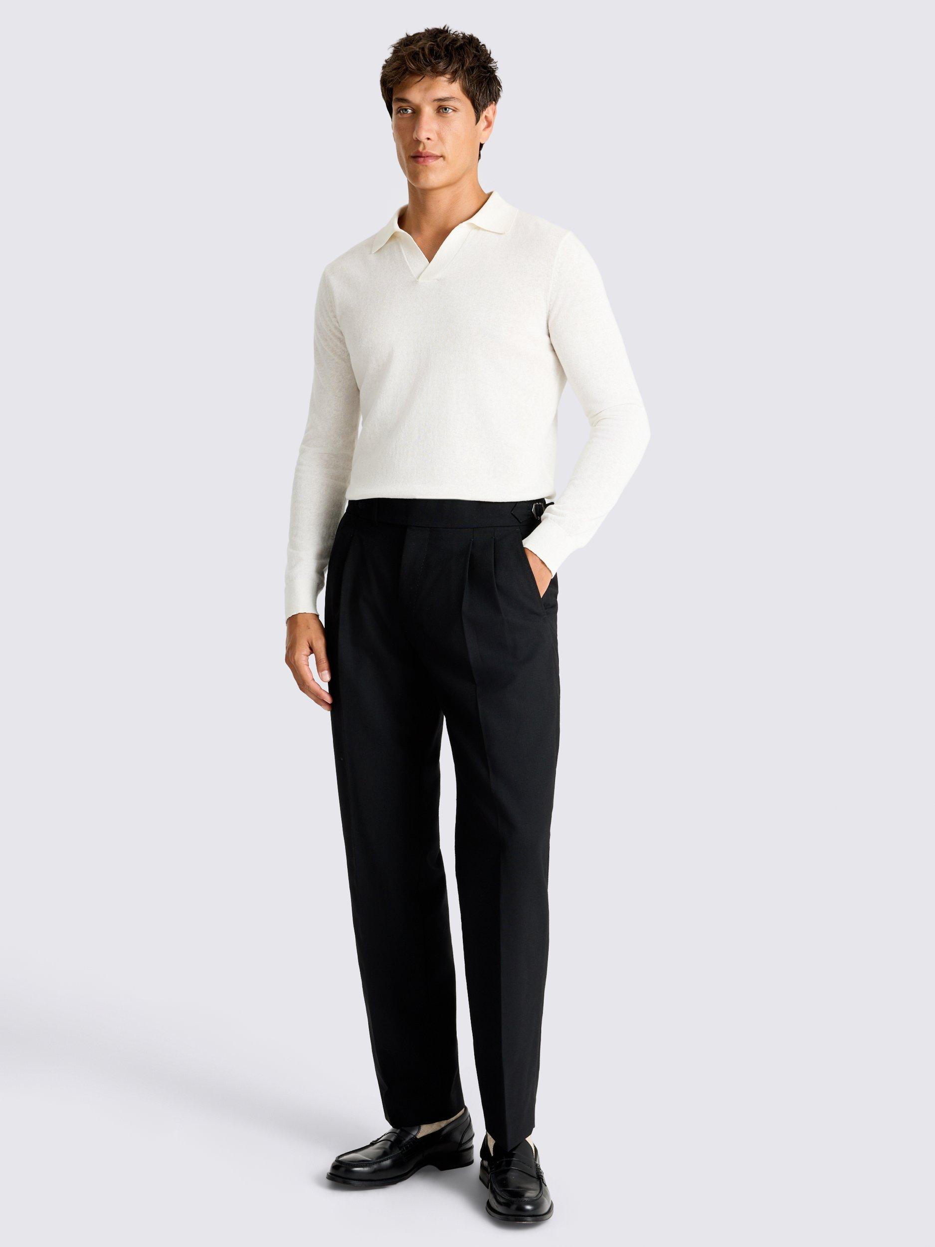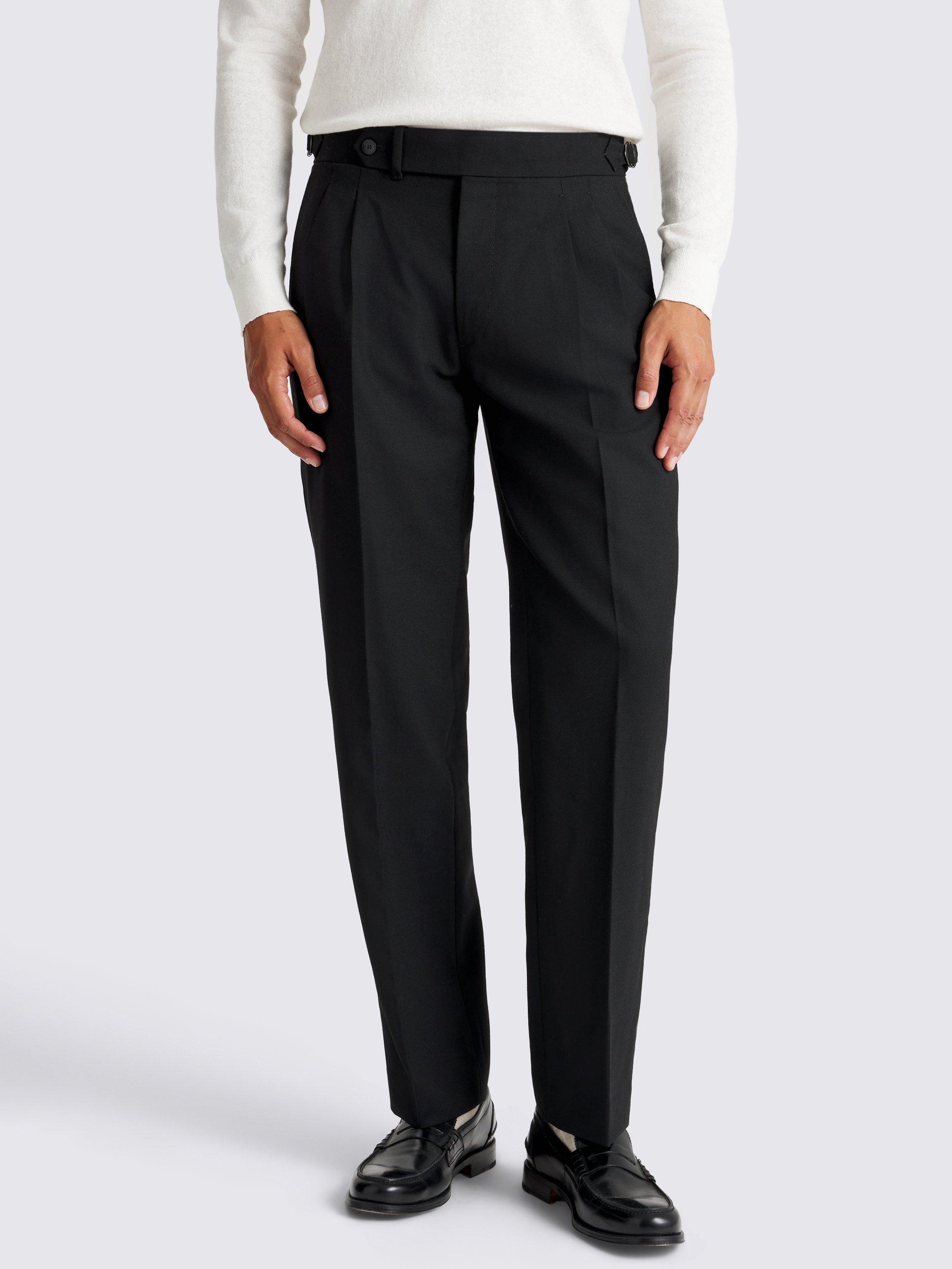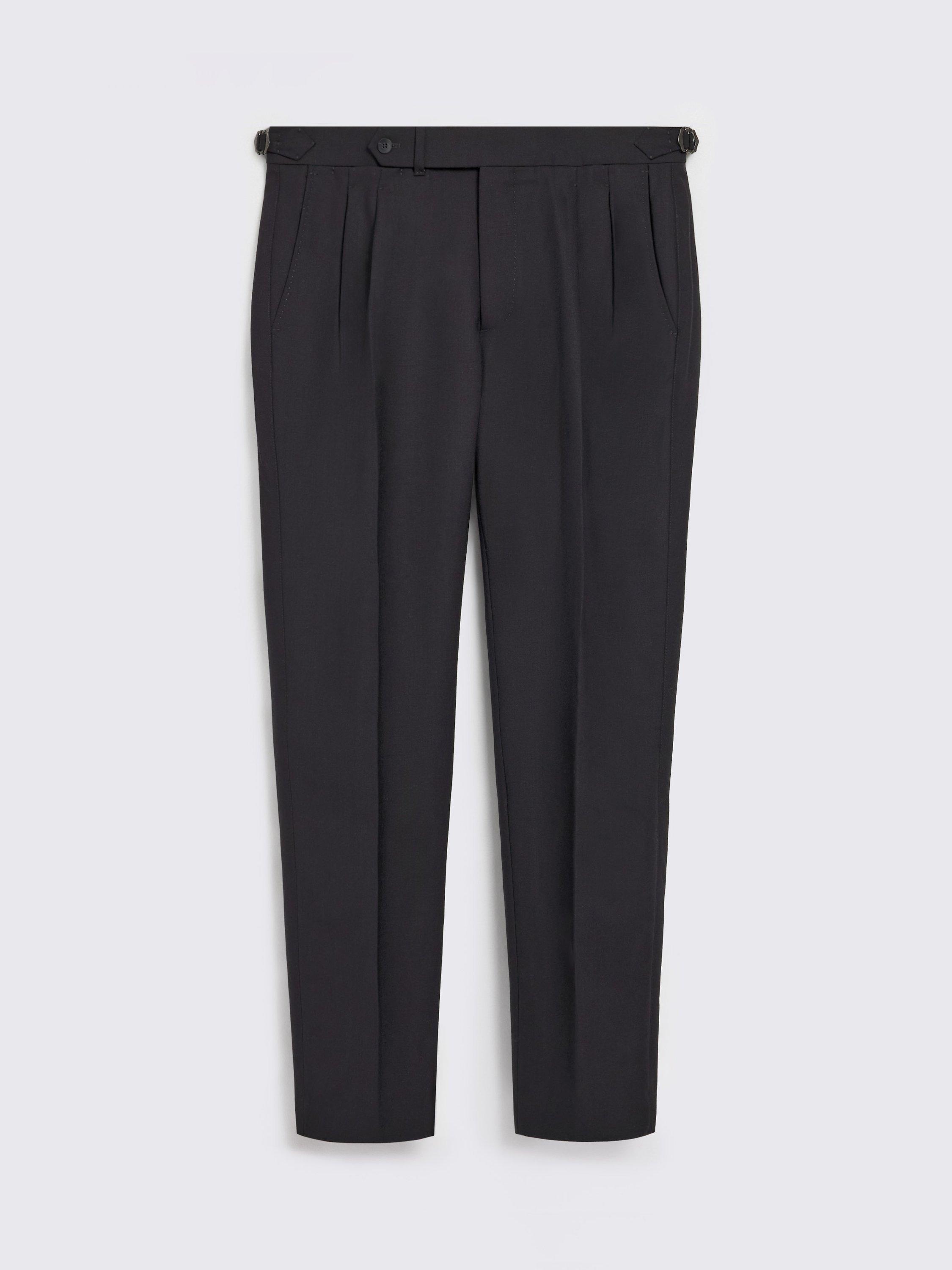 Crafted in 100% wool for a soft, breathable feel, these trousers serve as a versatile foundation for various dress codes. The front pleats and side adjusters add sartorial touches for modern styling.