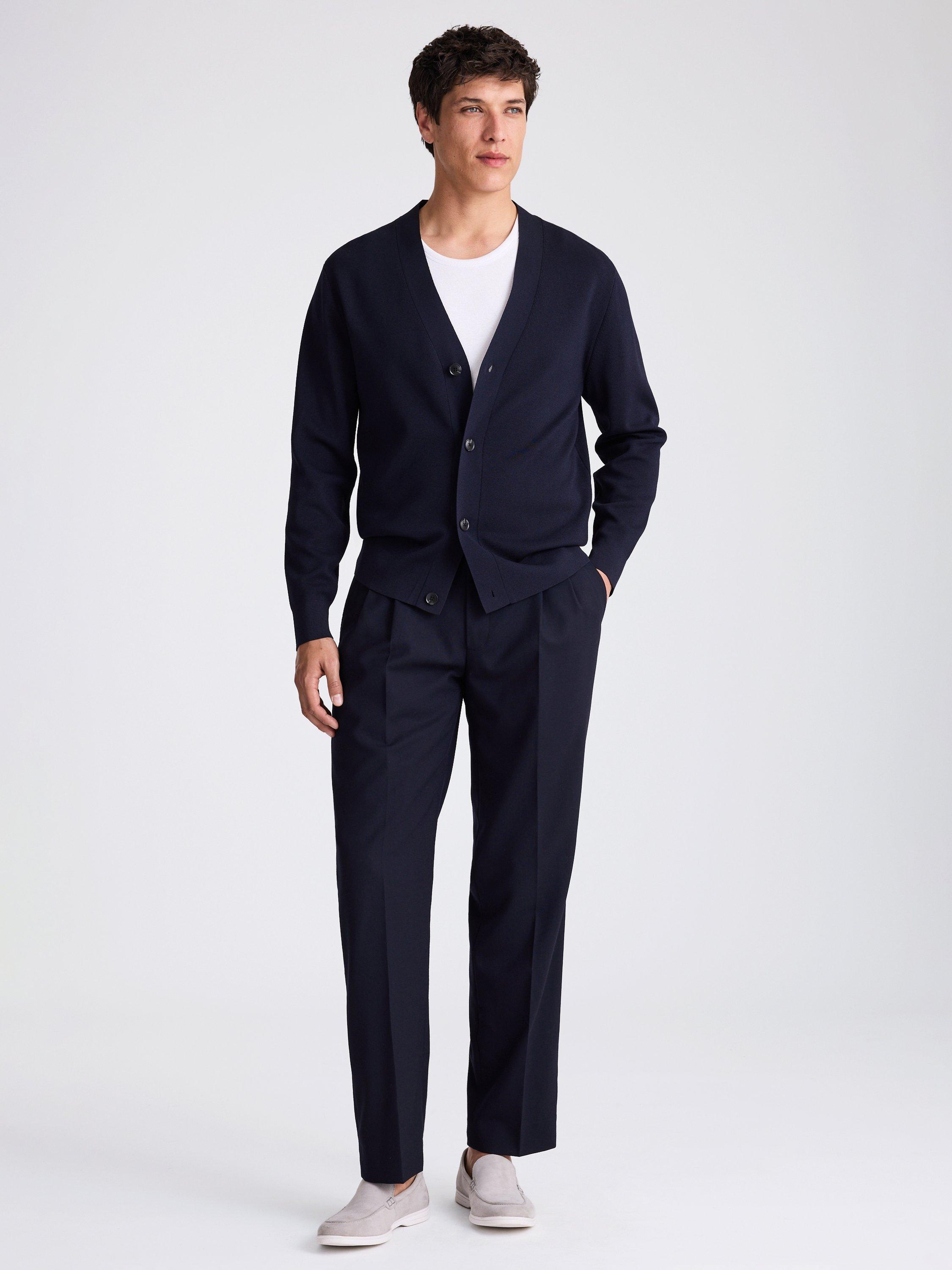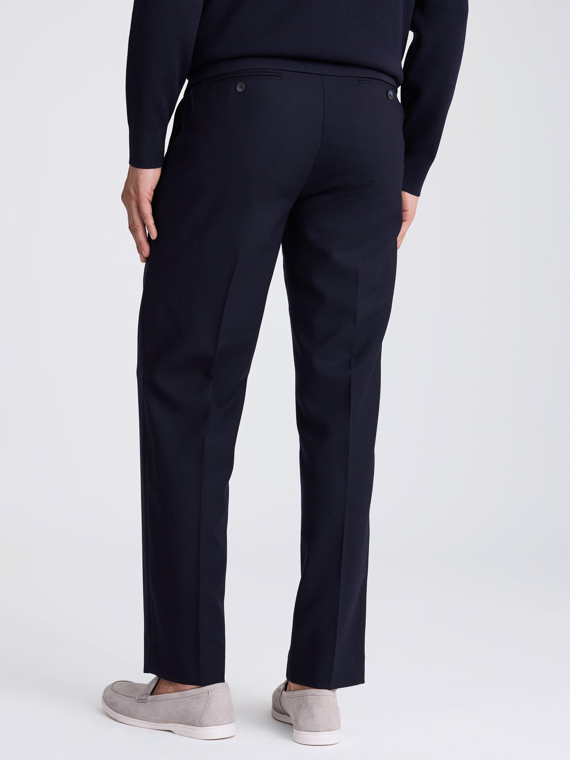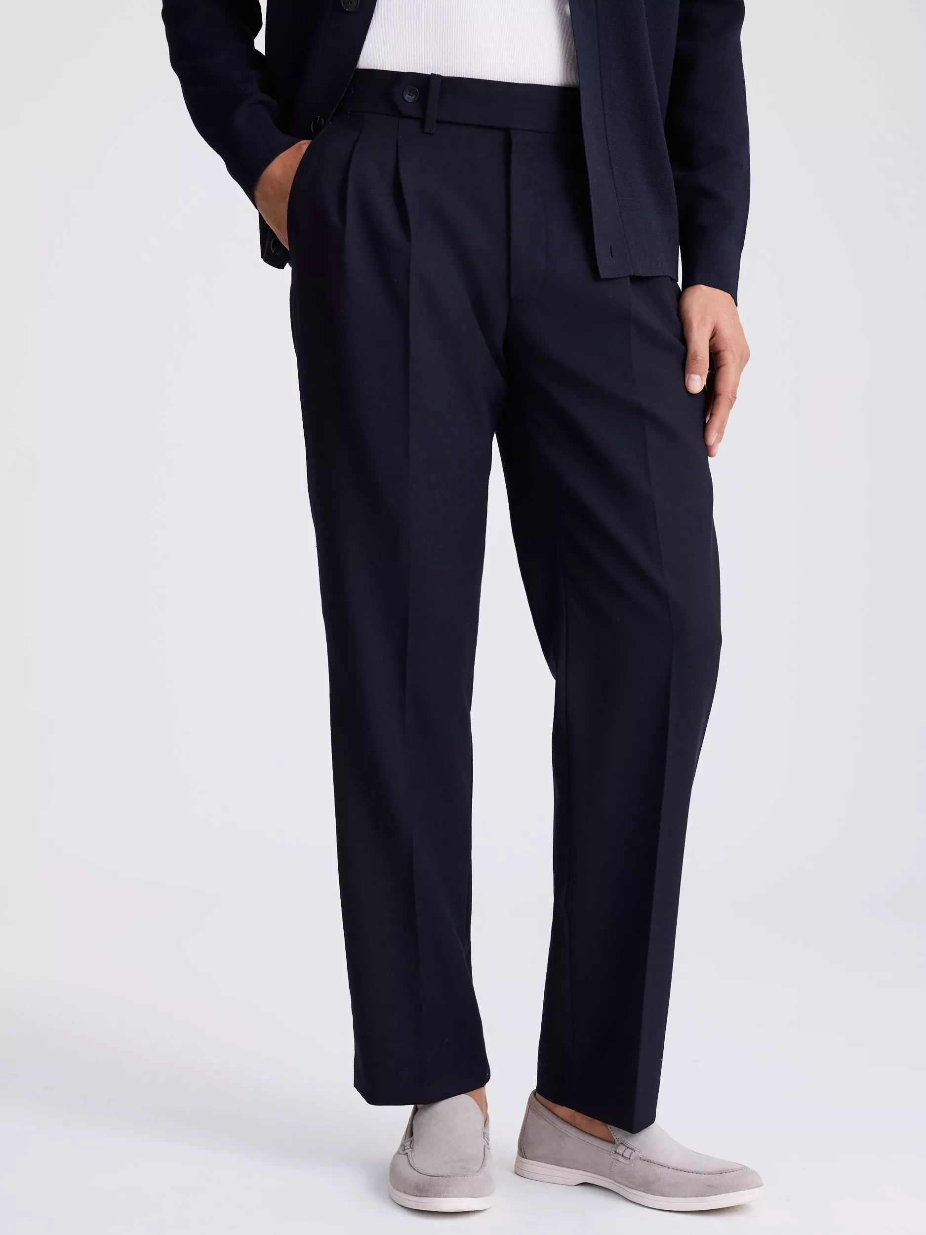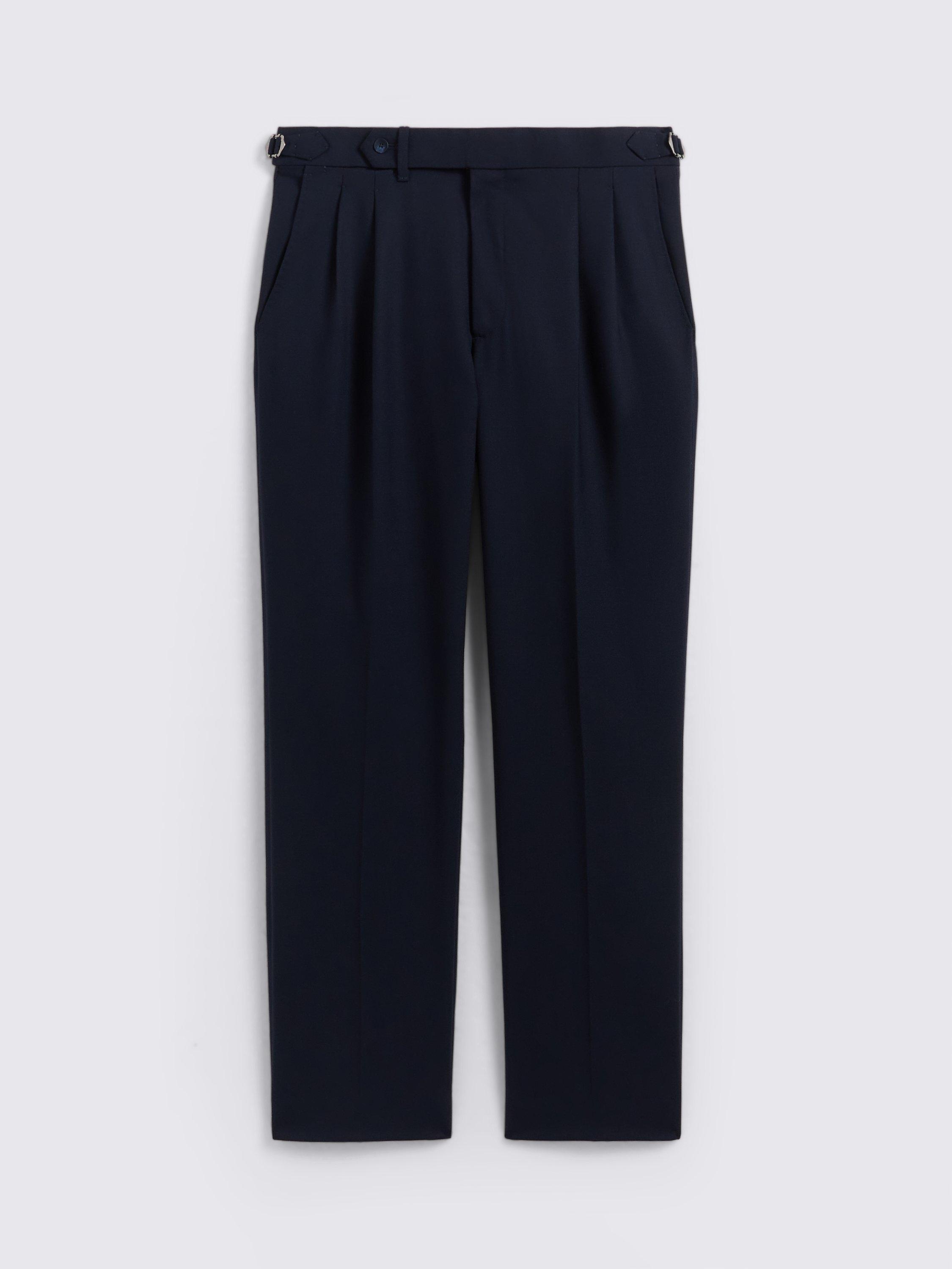 Crafted in 100% wool for a soft, breathable feel, these trousers serve as a versatile foundation for various dress codes. The front pleats and side adjusters add sartorial touches for modern styling.