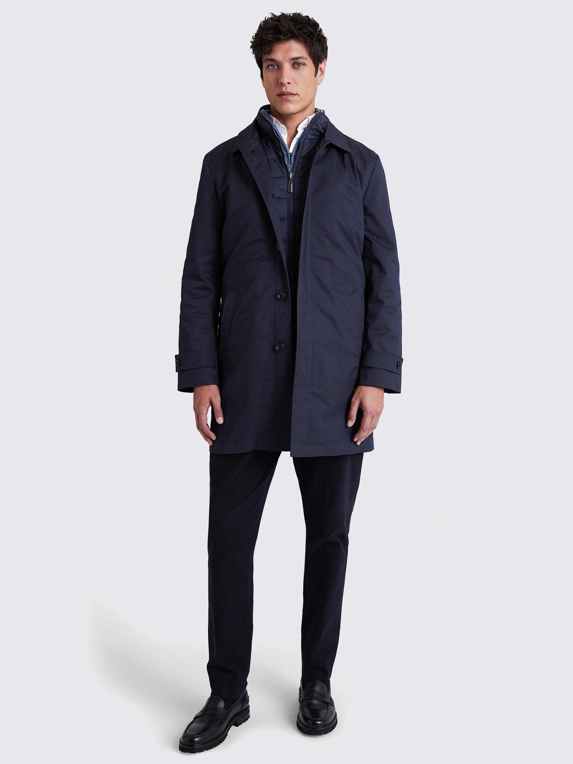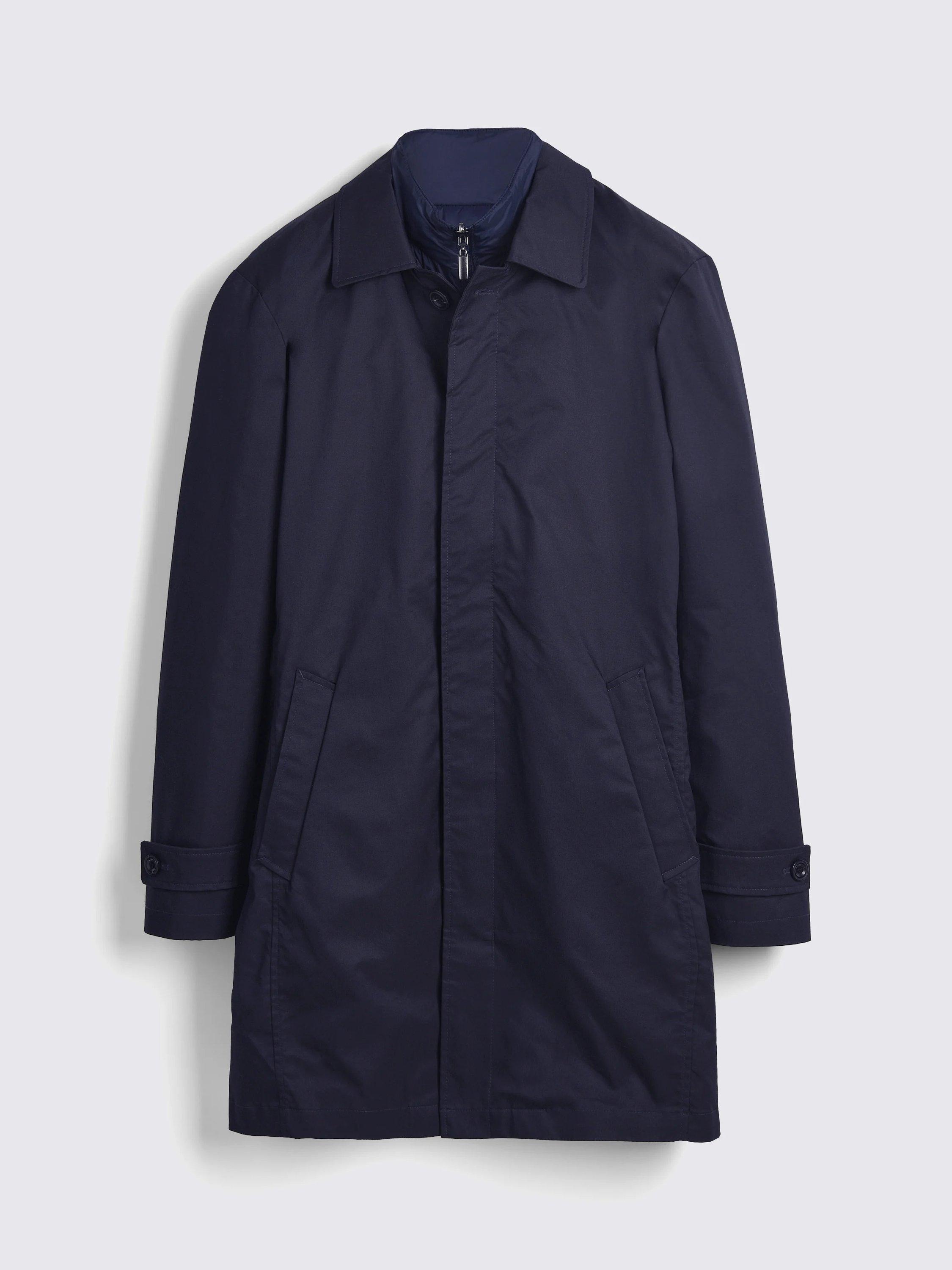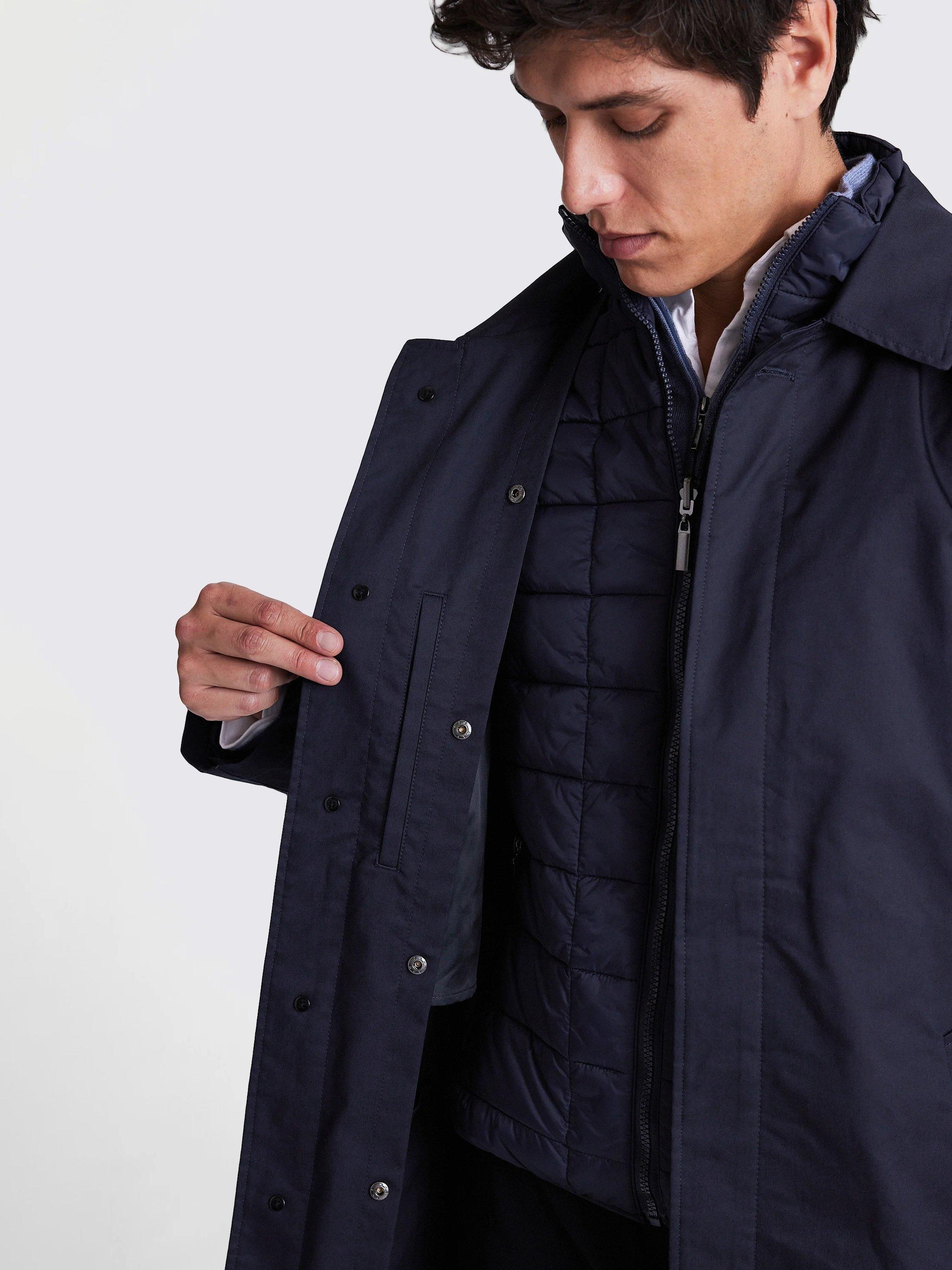 Every seasonal wardrobe needs a solid lineup of dependable outerwear. Rich in breathable cotton, this navy raincoat delivers three options in one: a lightweight raincoat to shrug on for showers, a removable nylon gilet insert that stands up to being worn solo and, combined, a warm, shower-proof coat for cold, wet days.