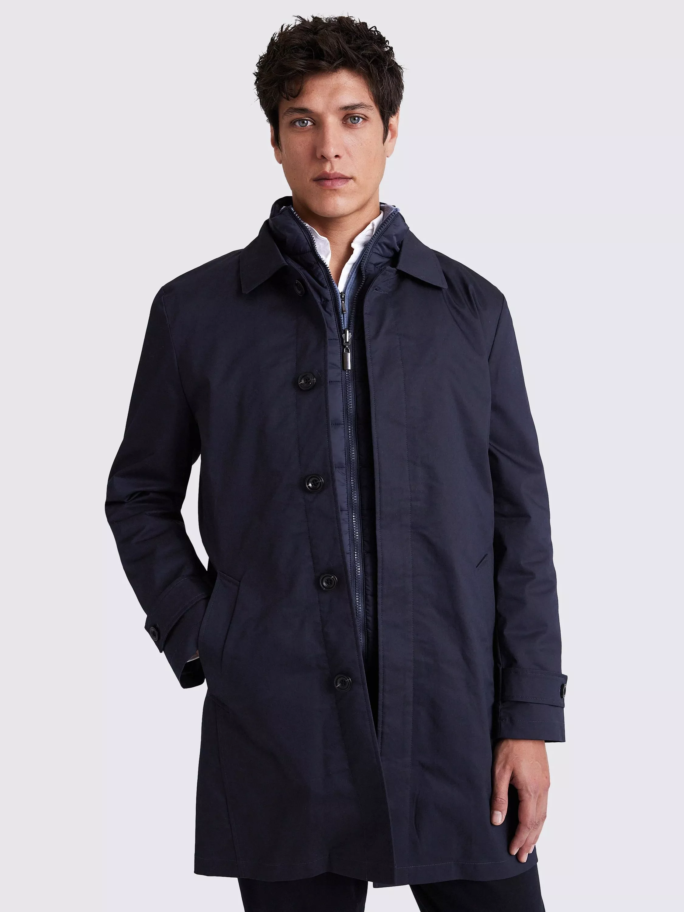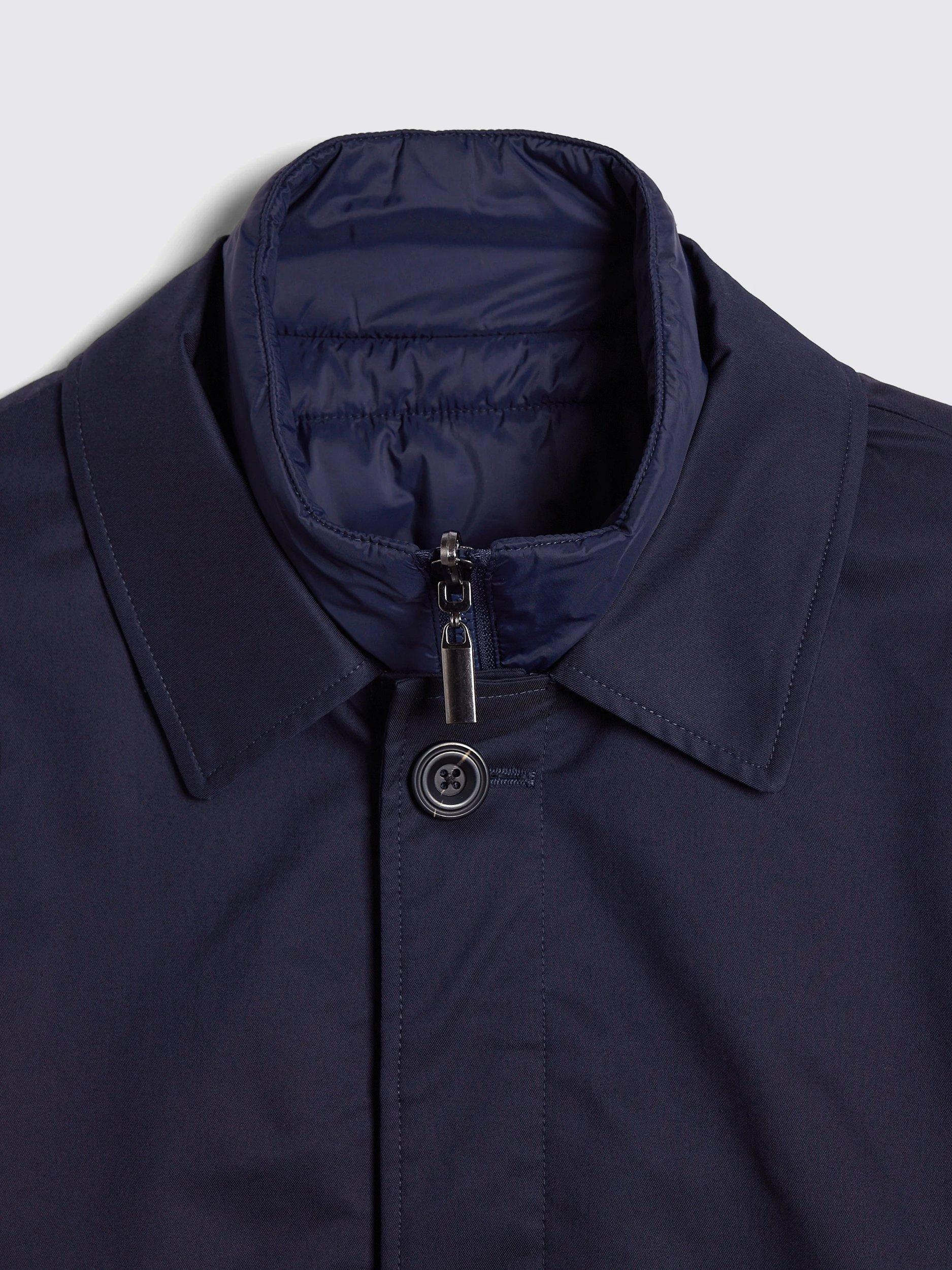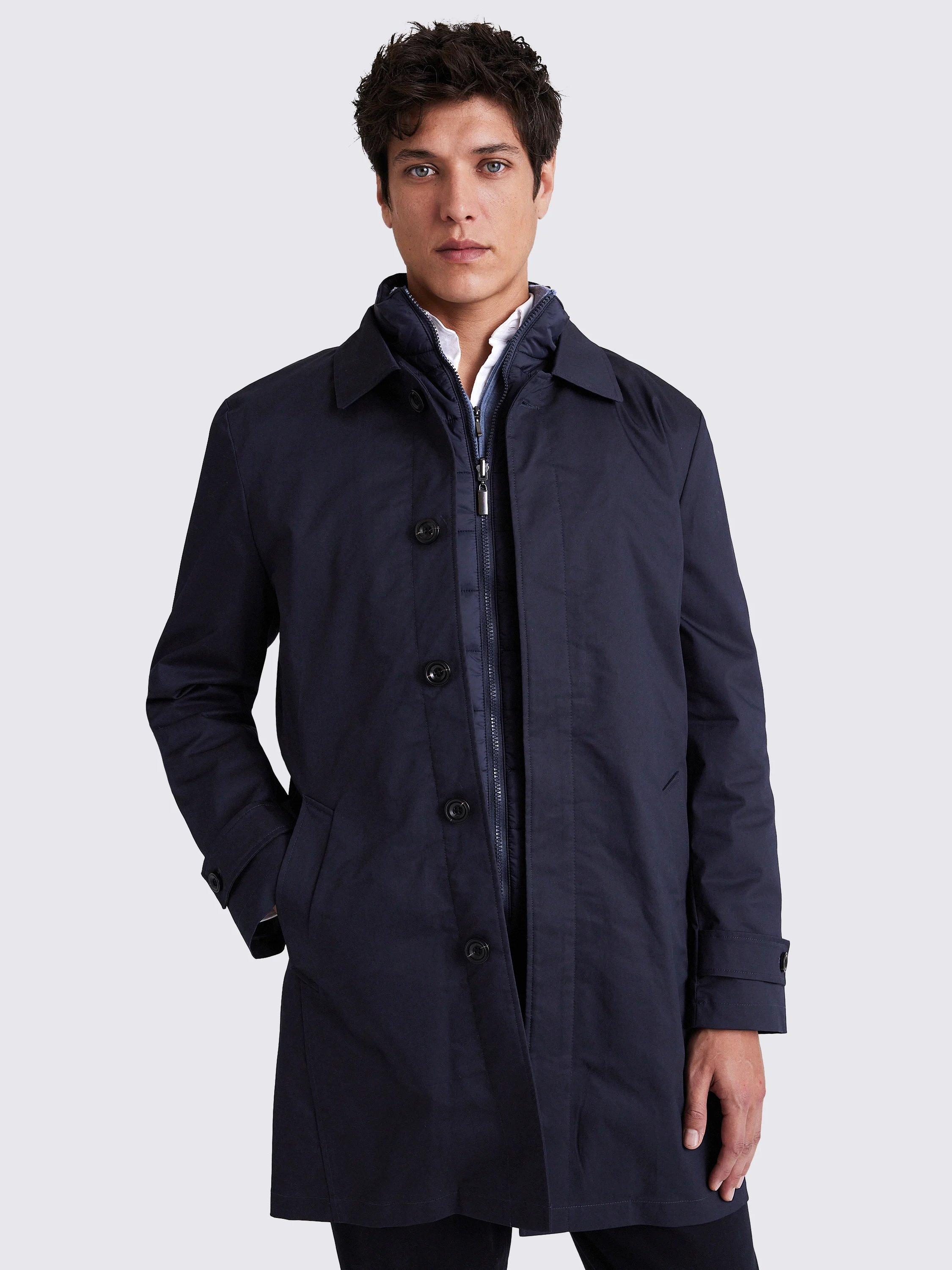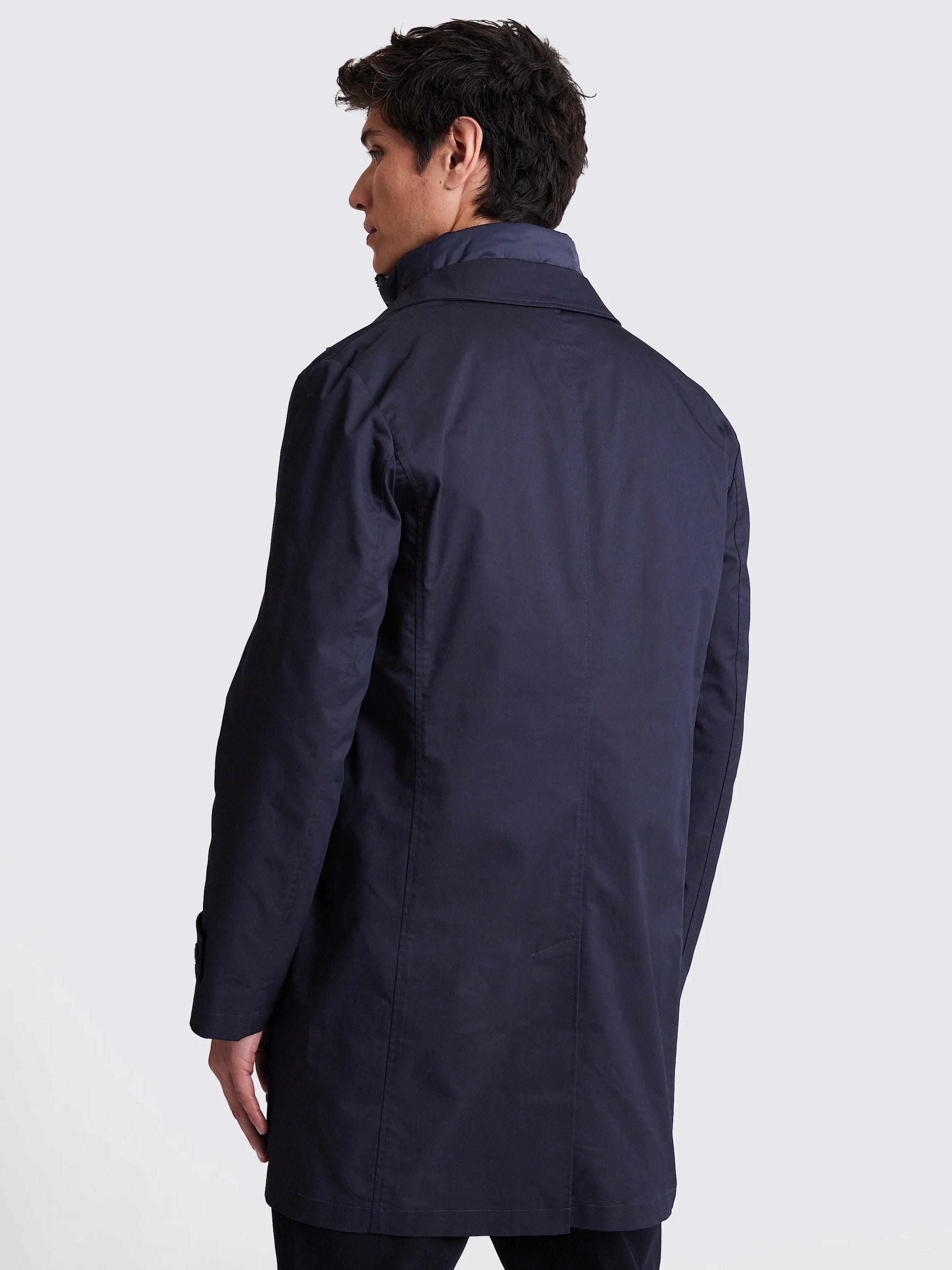 Every seasonal wardrobe needs a solid lineup of dependable outerwear. Rich in breathable cotton, this navy raincoat delivers three options in one: a lightweight raincoat to shrug on for showers, a removable nylon gilet insert that stands up to being worn solo and, combined, a warm, shower-proof coat for cold, wet days.