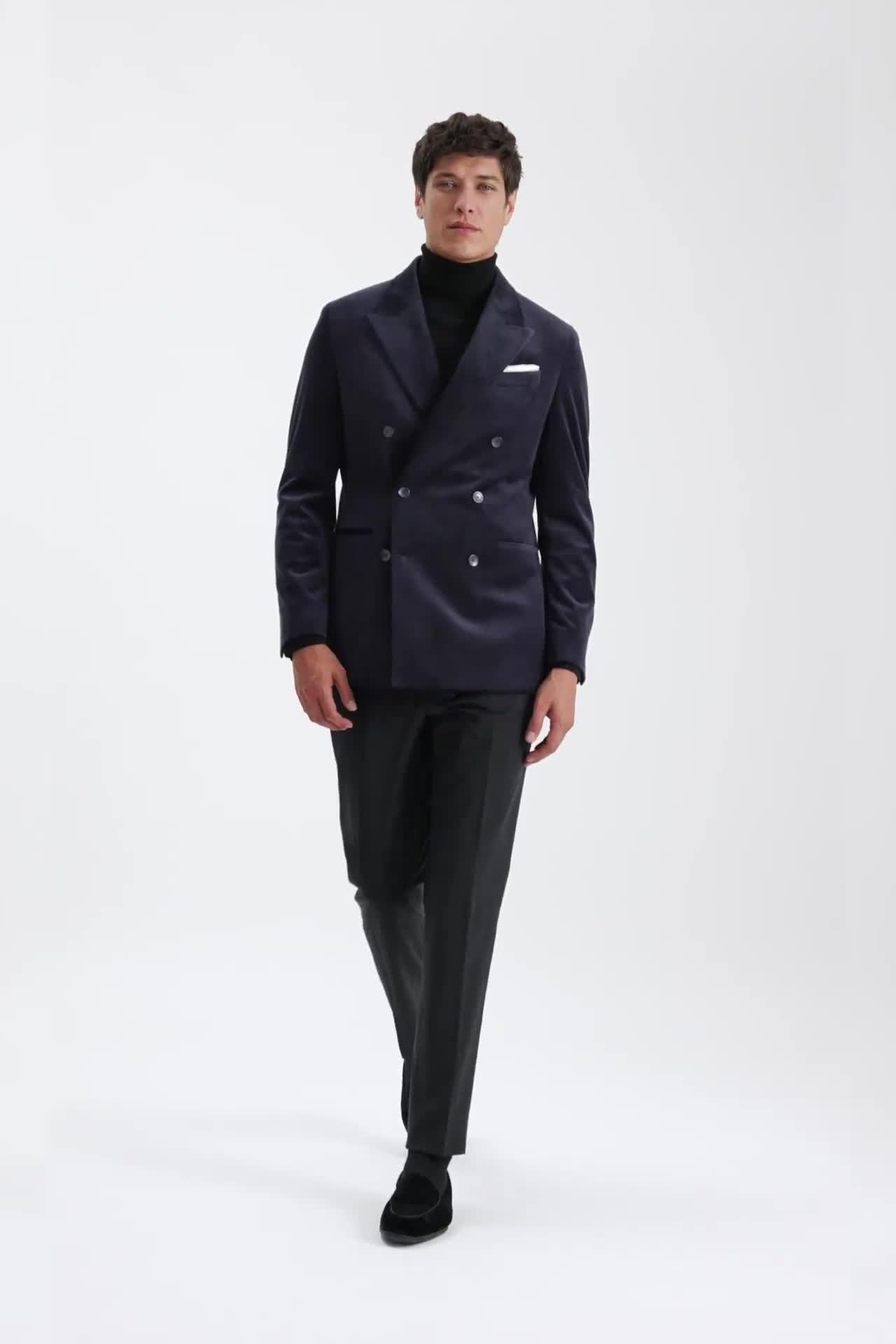 A velvet jacket is a classic way to approach a formal dress code. This double-breasted design is made from 100% cotton, giving the plush texture a smooth, luxurious feel