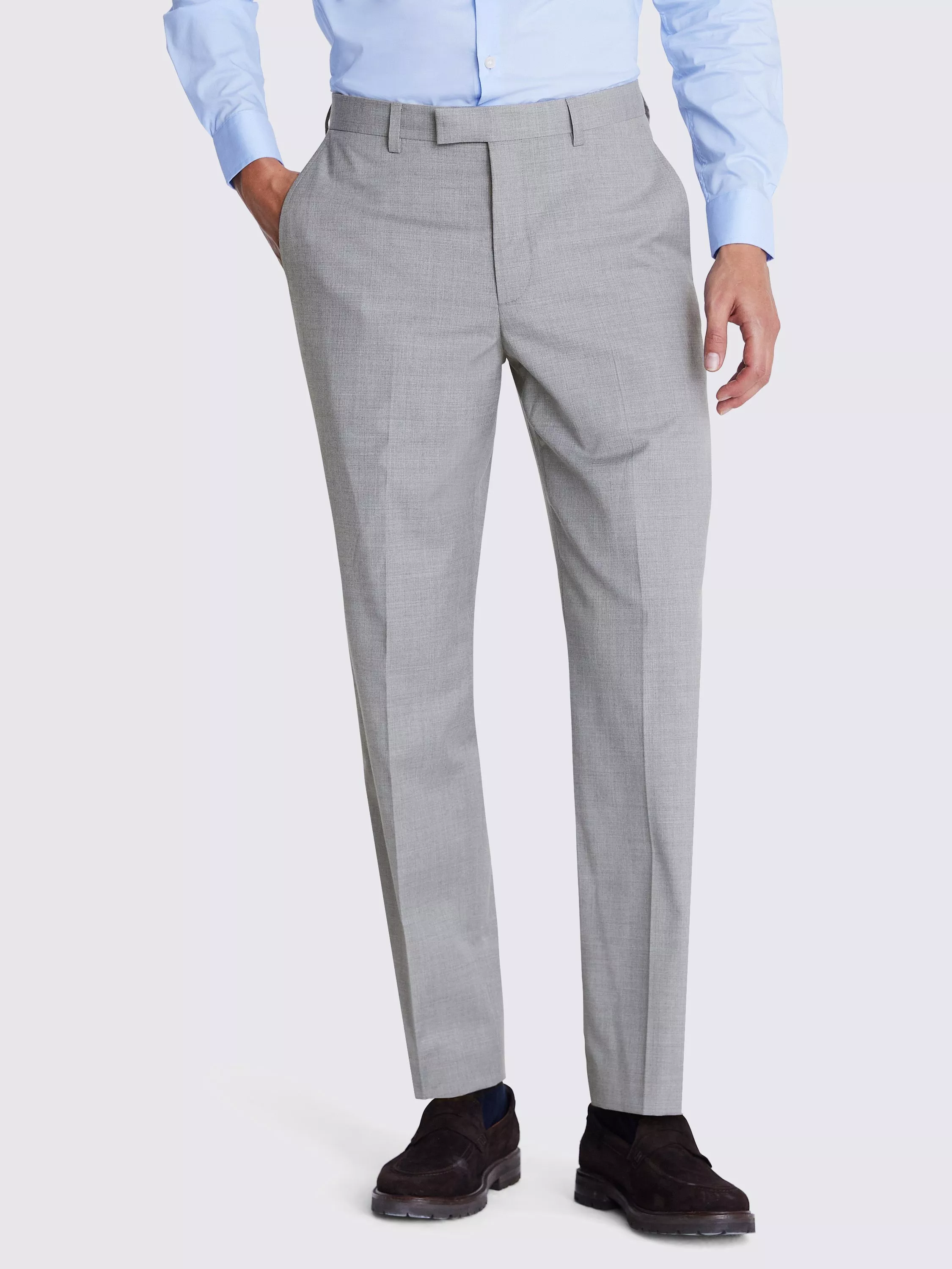 Crafted in stretch cloth that's designed to move with you, these Moss trousers are a foundation you'll be glad you bagged. They're tailored to an easy regular fit and delivered in a light-grey tone that works with everything from the full three-piece to more dialled-back office and weekend looks.