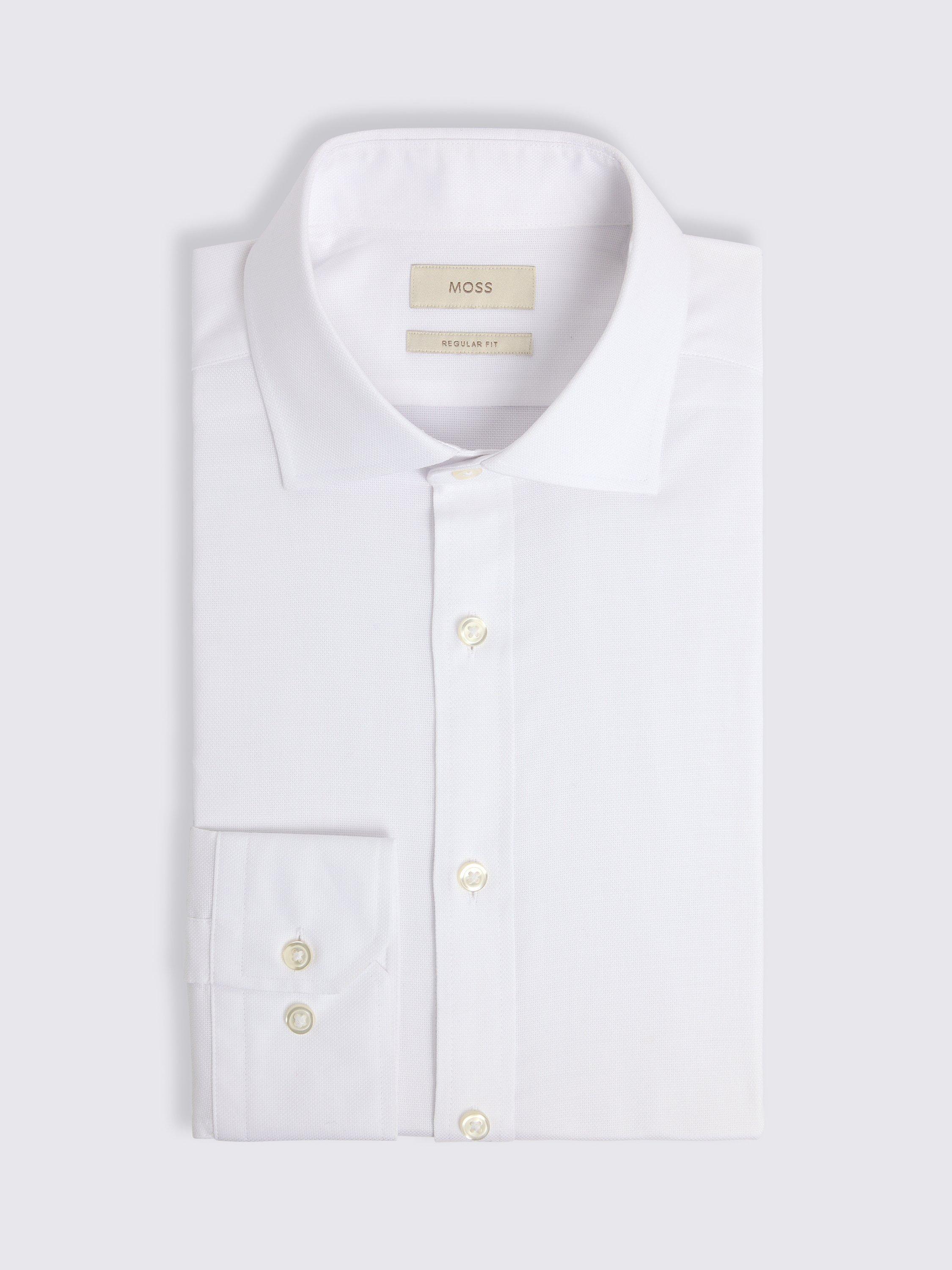 MossRegular Fit Stretch Cotton Dobby Shirt, White