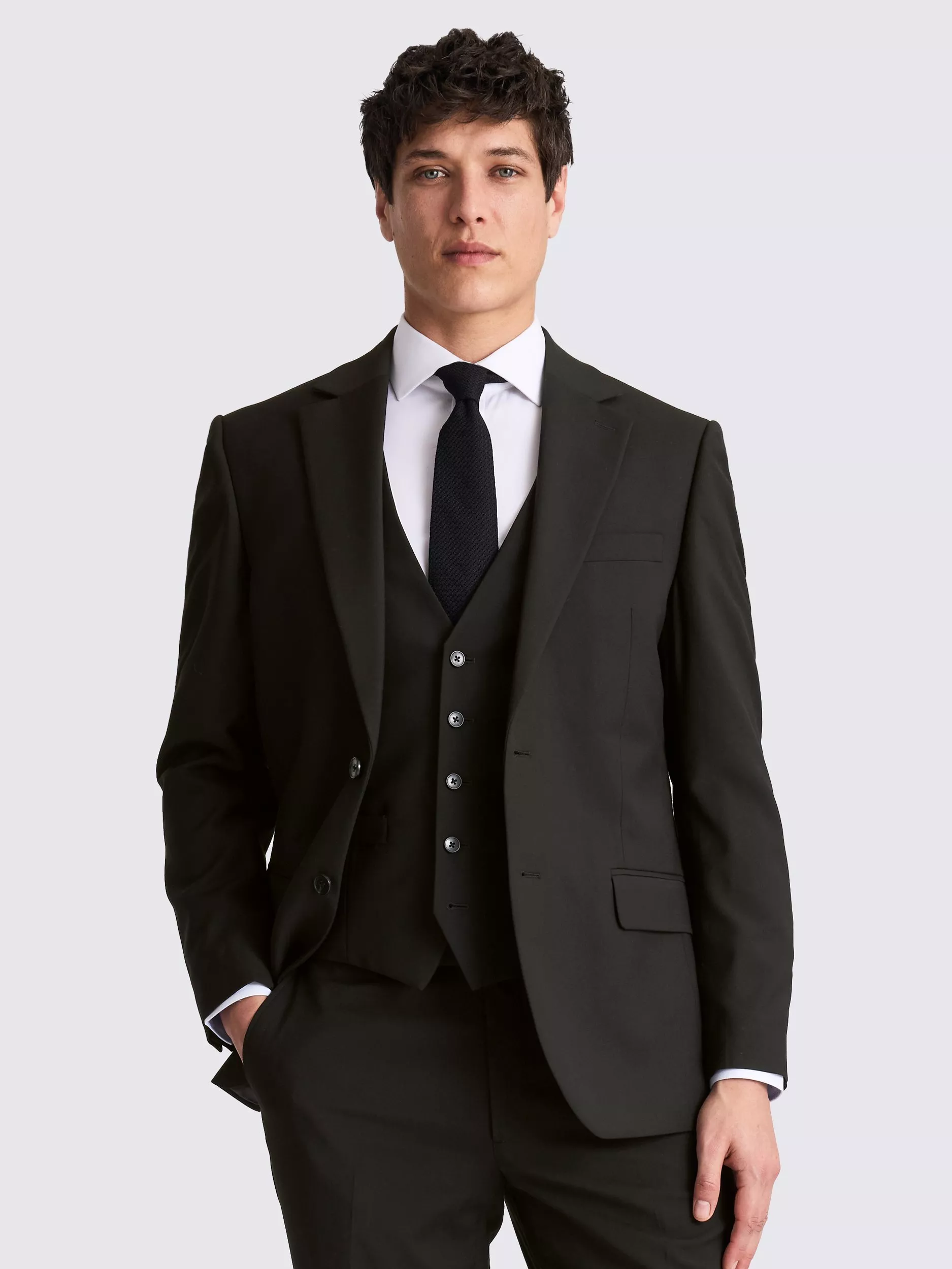 Cut to an easy regular fit, this suit jacket is a solid pick on busy days that require on-form dressing. It's designed in stretch fabric to bring you reliable comfort and crease recovery. Style the whole three-piece together or use the separate pieces to build looks that fit any occasion.