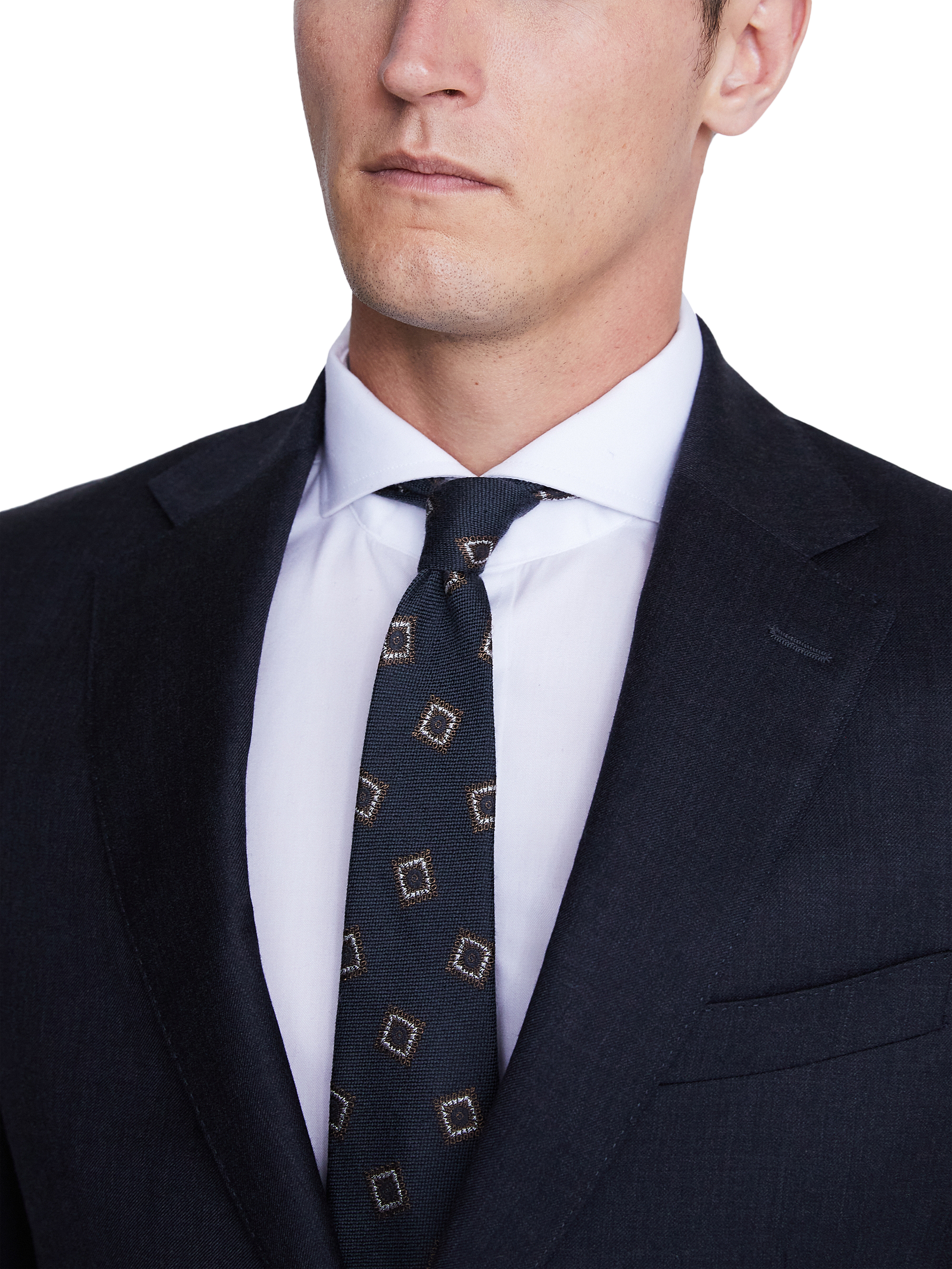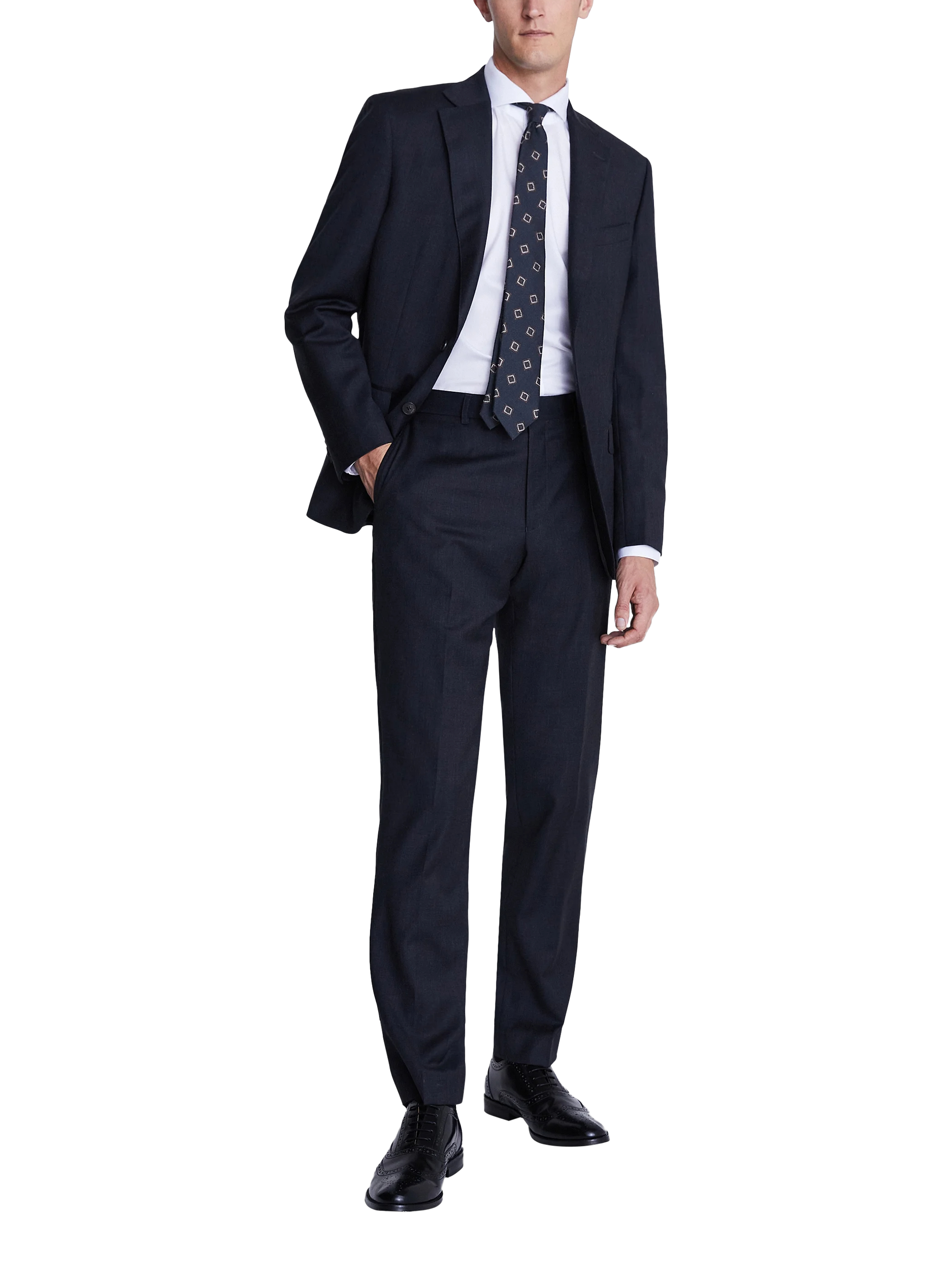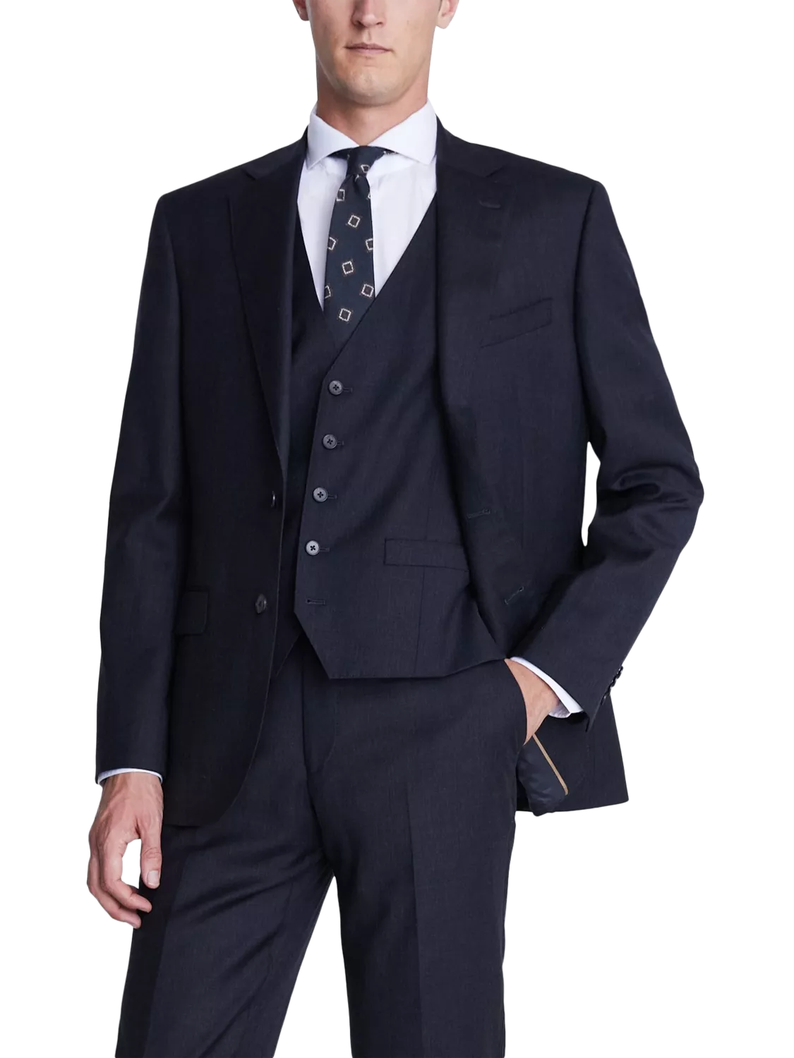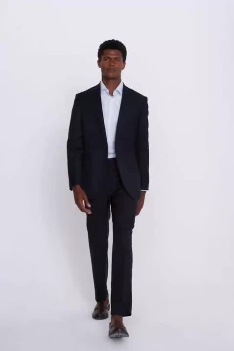 Still with the structure but with a cleverly positioned half lining in the jacket, Moss' suit is all about comfort and great drape. It's tailored to a regular fit in navy twill made from pure wool and intentionally designed to give you maximum styling options.