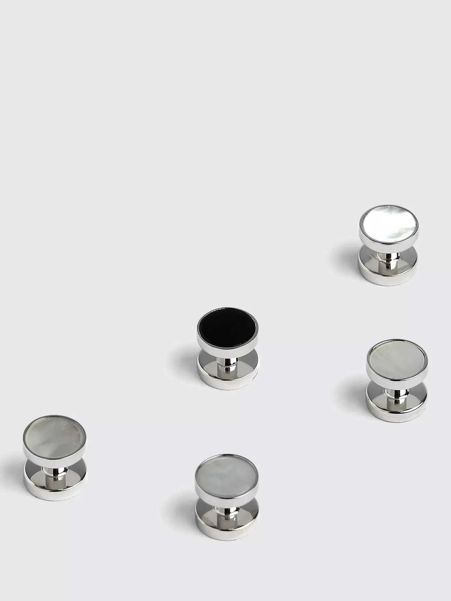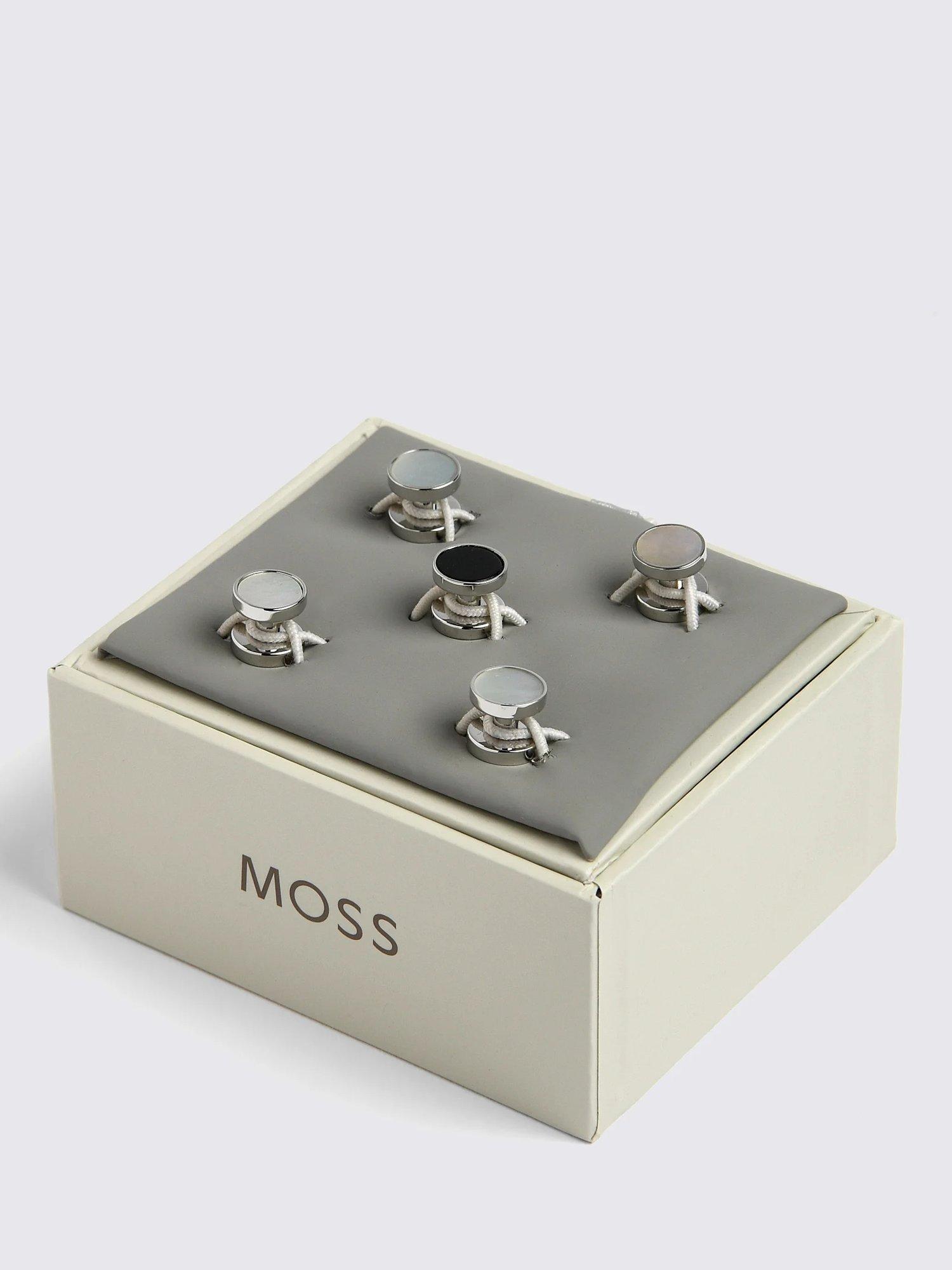 A good set of shirt studs will always look the part - double your chances of success with Moss' reversible design. With silver onyx on one side and mother-of-pearl on the other, you'll always have the right finishing touch for your black-tie style.