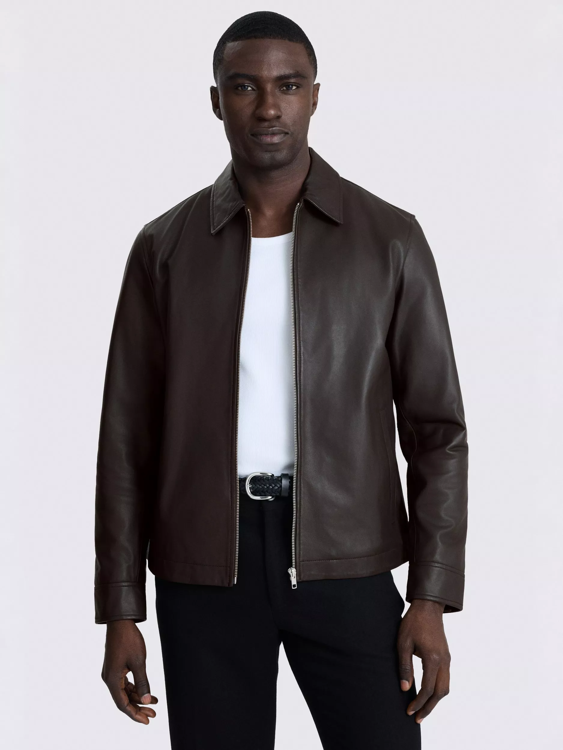 MossRich Nappa Leather Jacket, Dark Brown