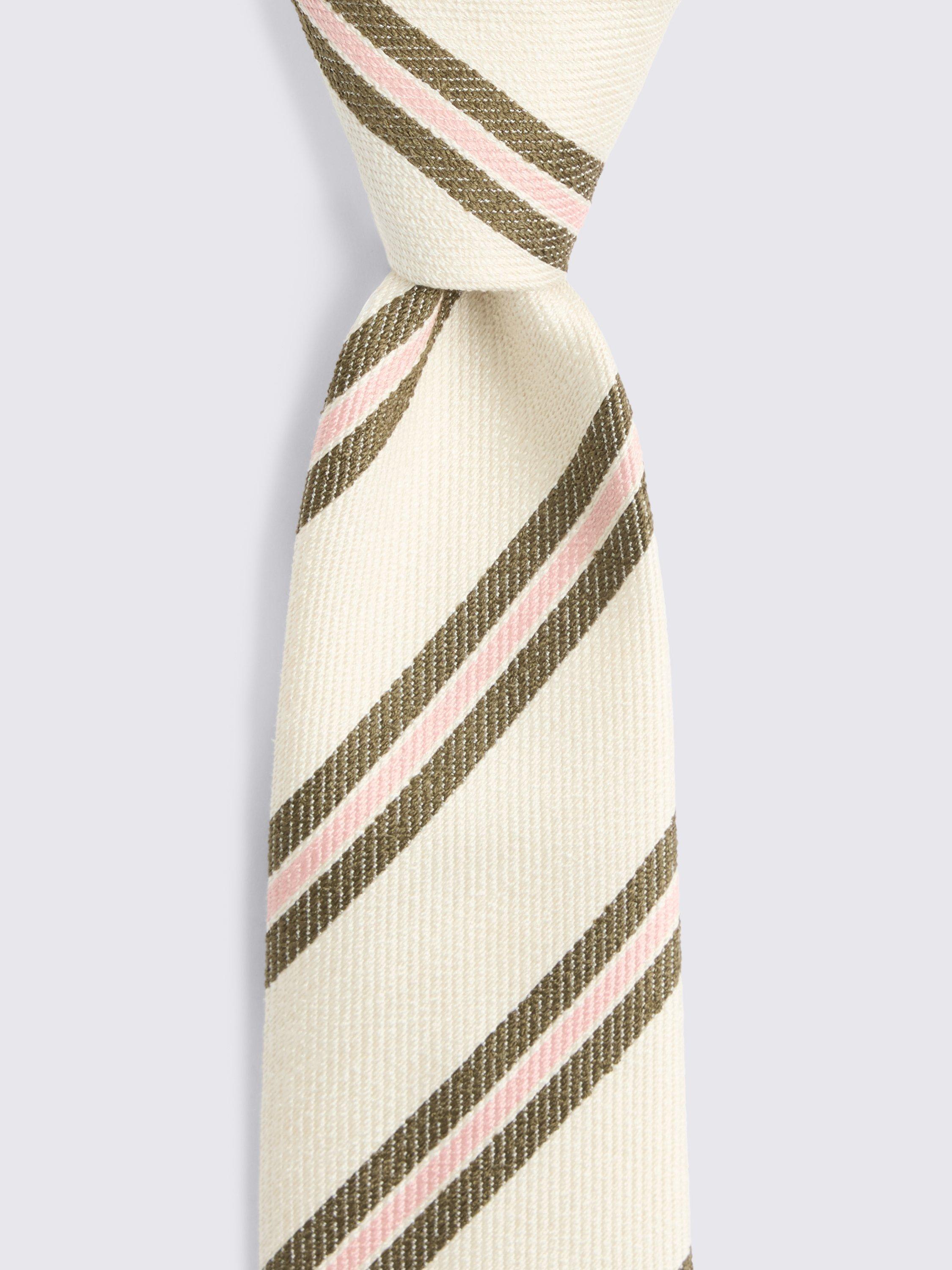 MossSilk Diagonal Stripe Tie, Off-White/Olive/Pink