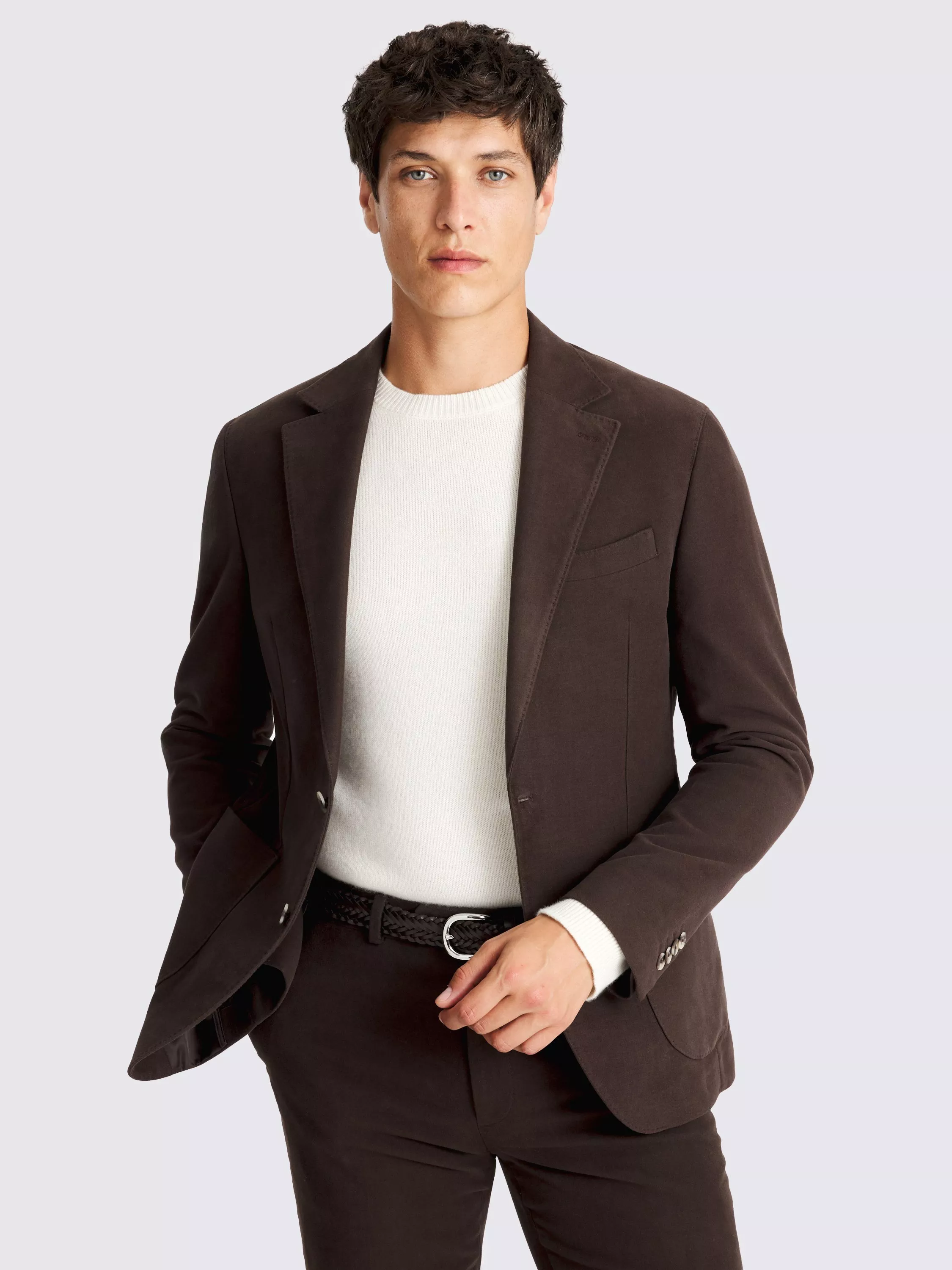 MossSingle Beasted Moleskin Formal Jacket, Brown