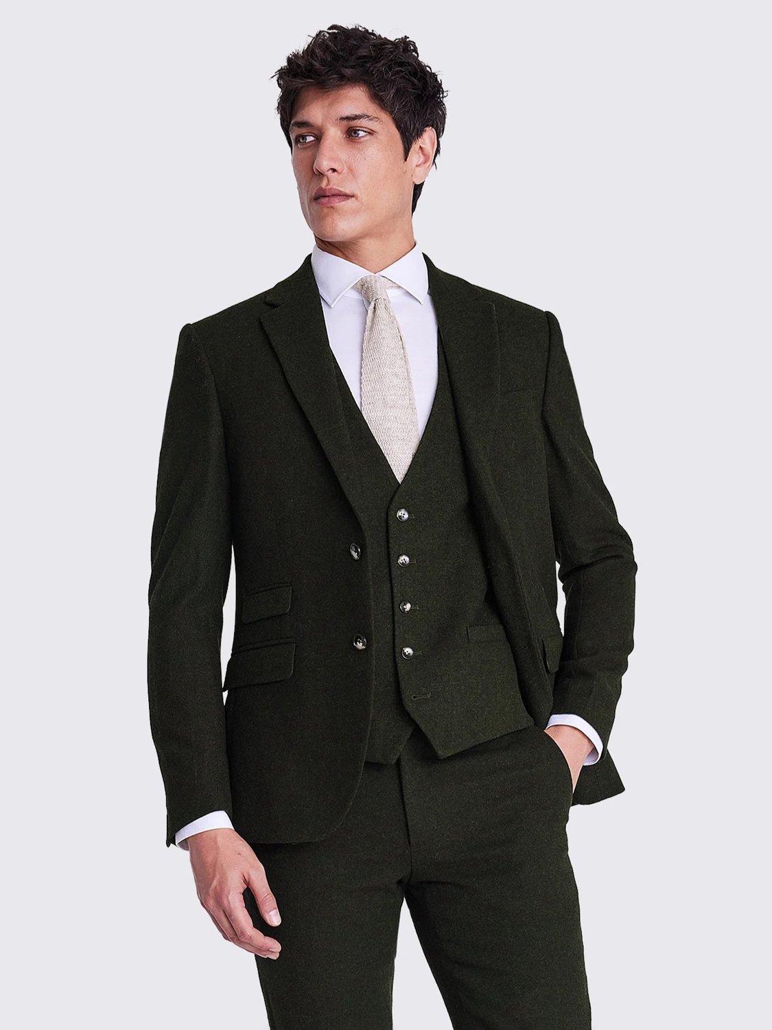 Perfect paired with the matching suit trousers and waistcoat, finish the look with a knitted tie and suede Derby shoes.