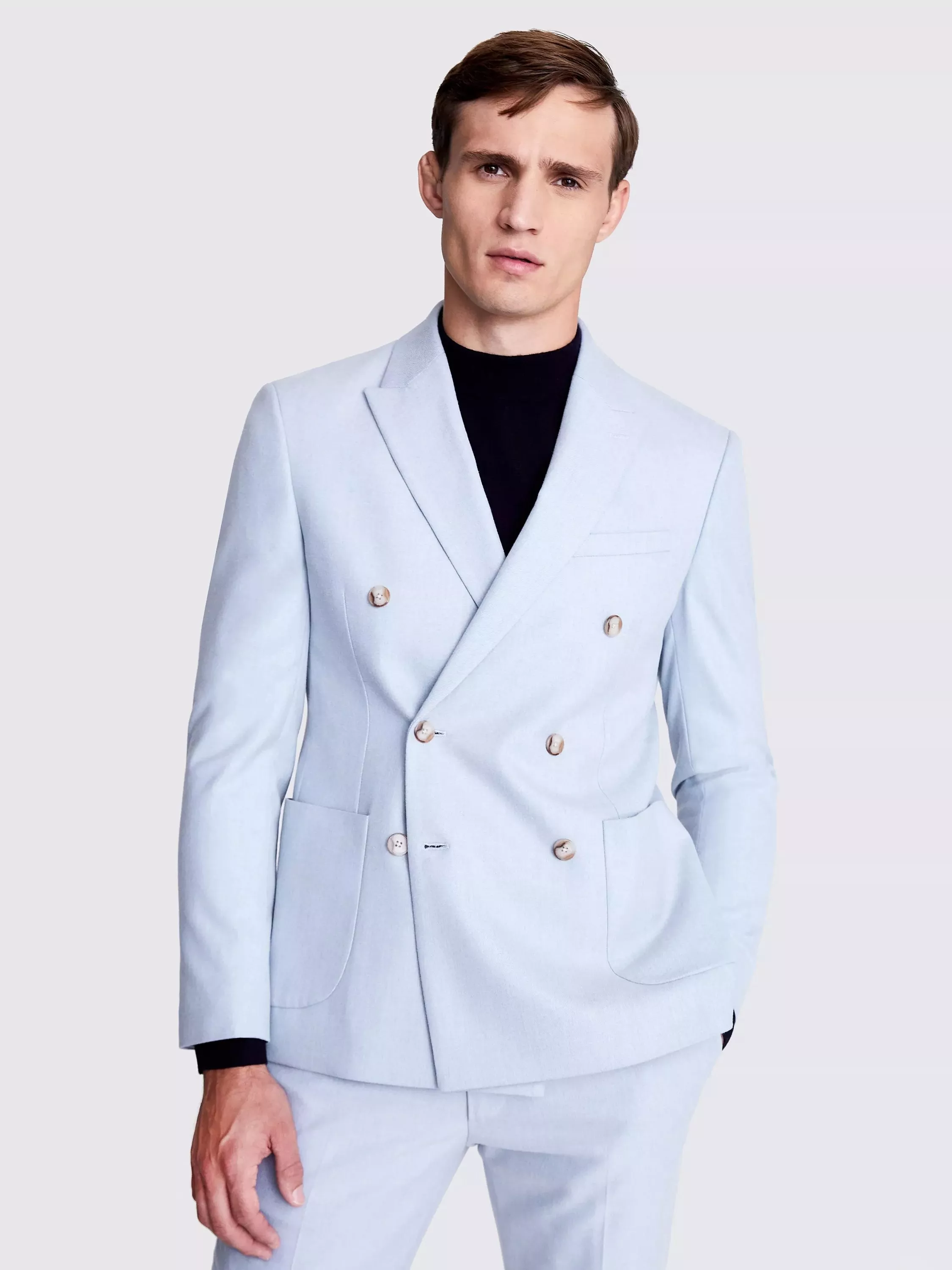 Crafted in a blend that's rich in recycled fibres, this suit jacket checks the boxes for style with improved sustainability. It's cut to a clean slim fit with a double-breasted jacket for a contemporary approach to flannel tailoring.