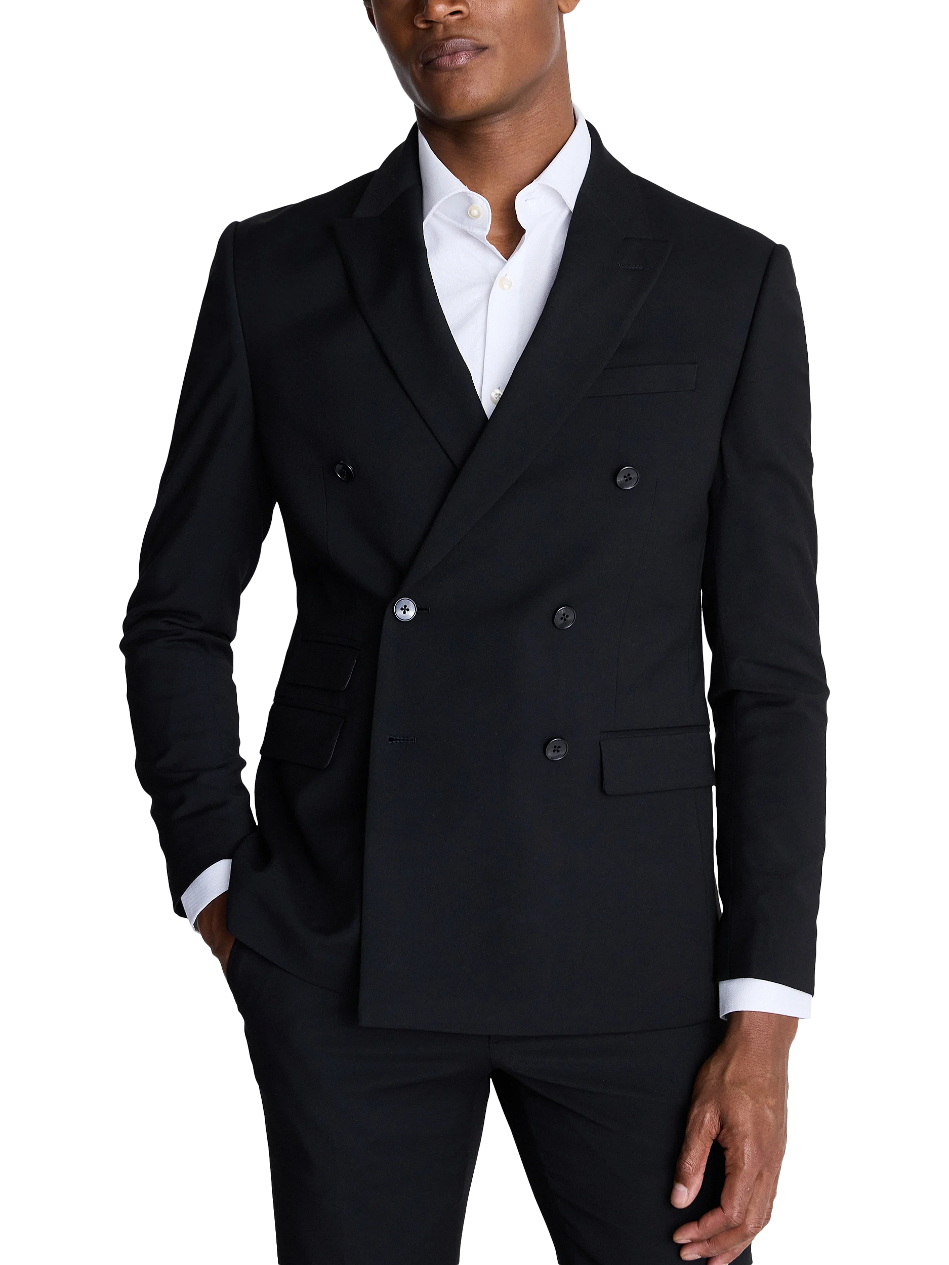 Adapted for the modern wardrobe, the double-breasted suit jacket has come a very long way from its naval origins. Cut in a slim fit with a stretch blend that allows for easy movement as you go about your day. Keep it simple with a white tee and low-tops, or layer up with knitwear for a more formal look.