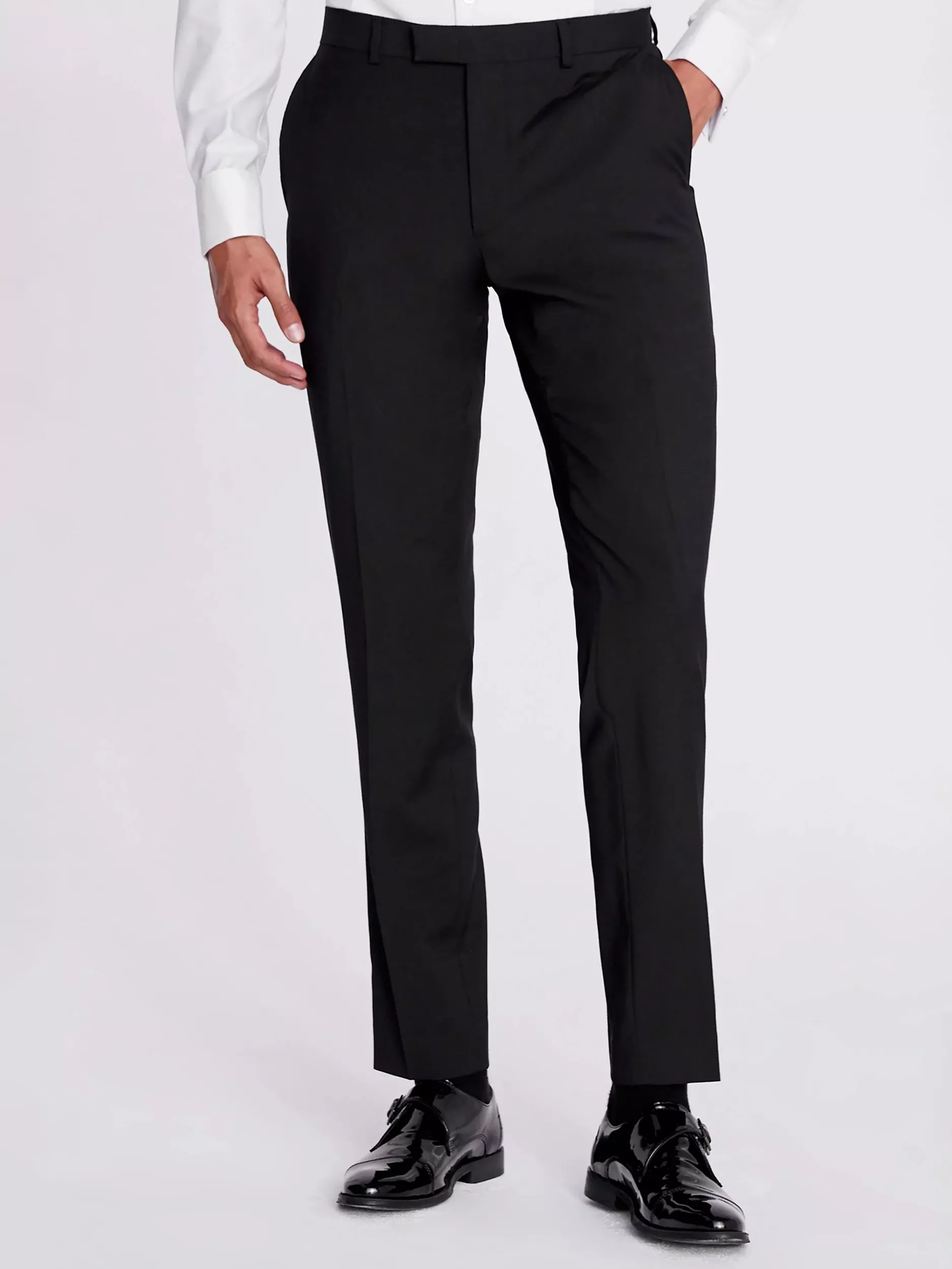 Although they're designed to be styled with the three-piece tuxedo, Moss's navy trousers aren't trimmed with the traditional satin inserts at the side seams. The result? You'll get extra mileage from your investment, as they'll act as a versatile foundation for workwear, too. The slim cut travels neatly to a break that'll sit just above your choice of formal footwear.