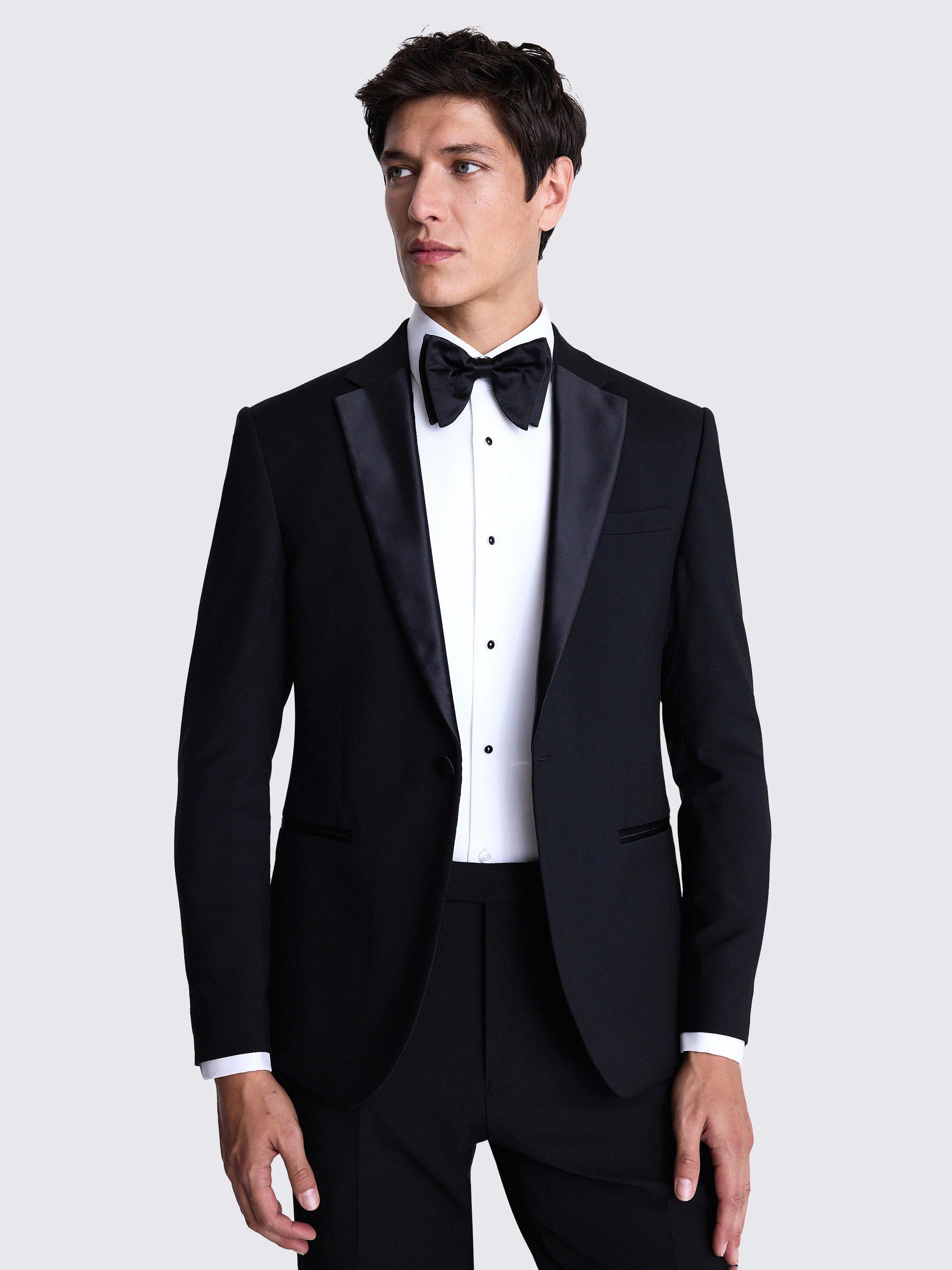 A trim tuxedo jacket that'll strike all the right notes at your next black-tie event, Moss has all the hallmarks of a great dress suit. It's delivered in classic black, cut to a slim fit and detailed with tonal silken trims at the lapels, buttons and jetted pockets.