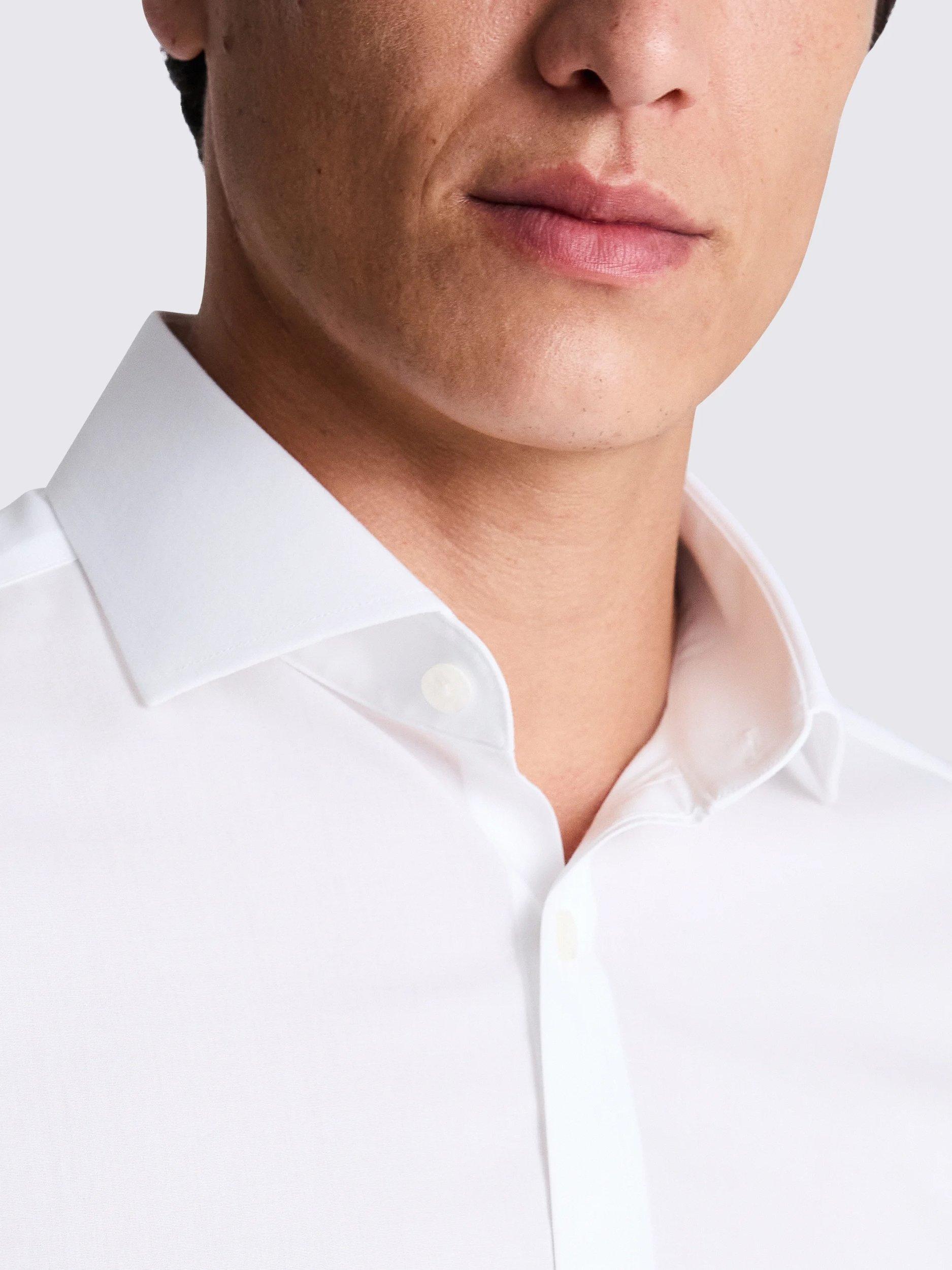 Finished with Moss's non-iron treatment for a smooth and crisp look that sticks around on hectic days, Moss' slim-fitting white shirt is a great investment for busy schedules. It's crafted in soft cotton with a poplin weave for a reliably breathable feel.