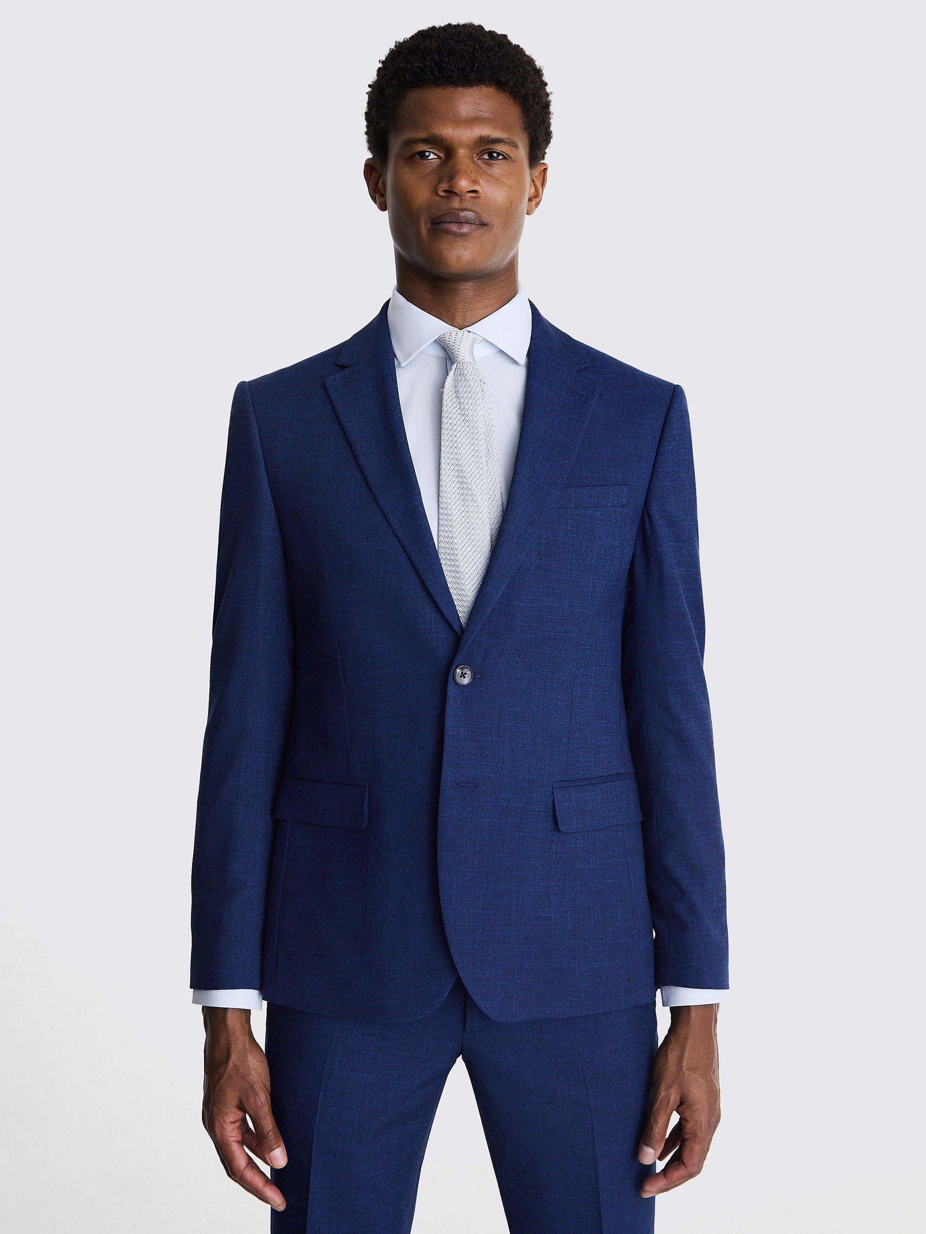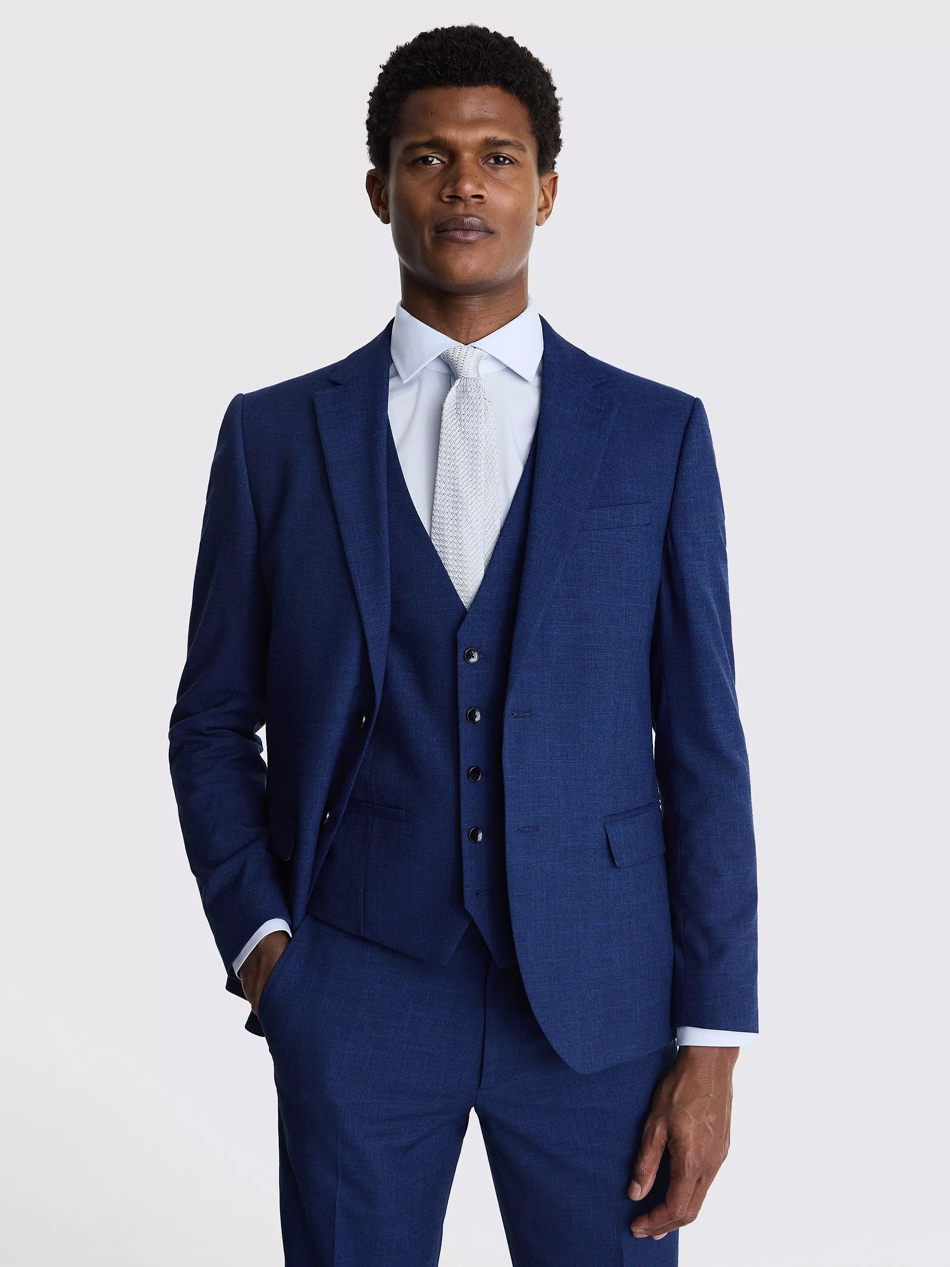 The deliberate unevenness in slub fabric is what gives Moss's single-breasted blue jacket its charm.