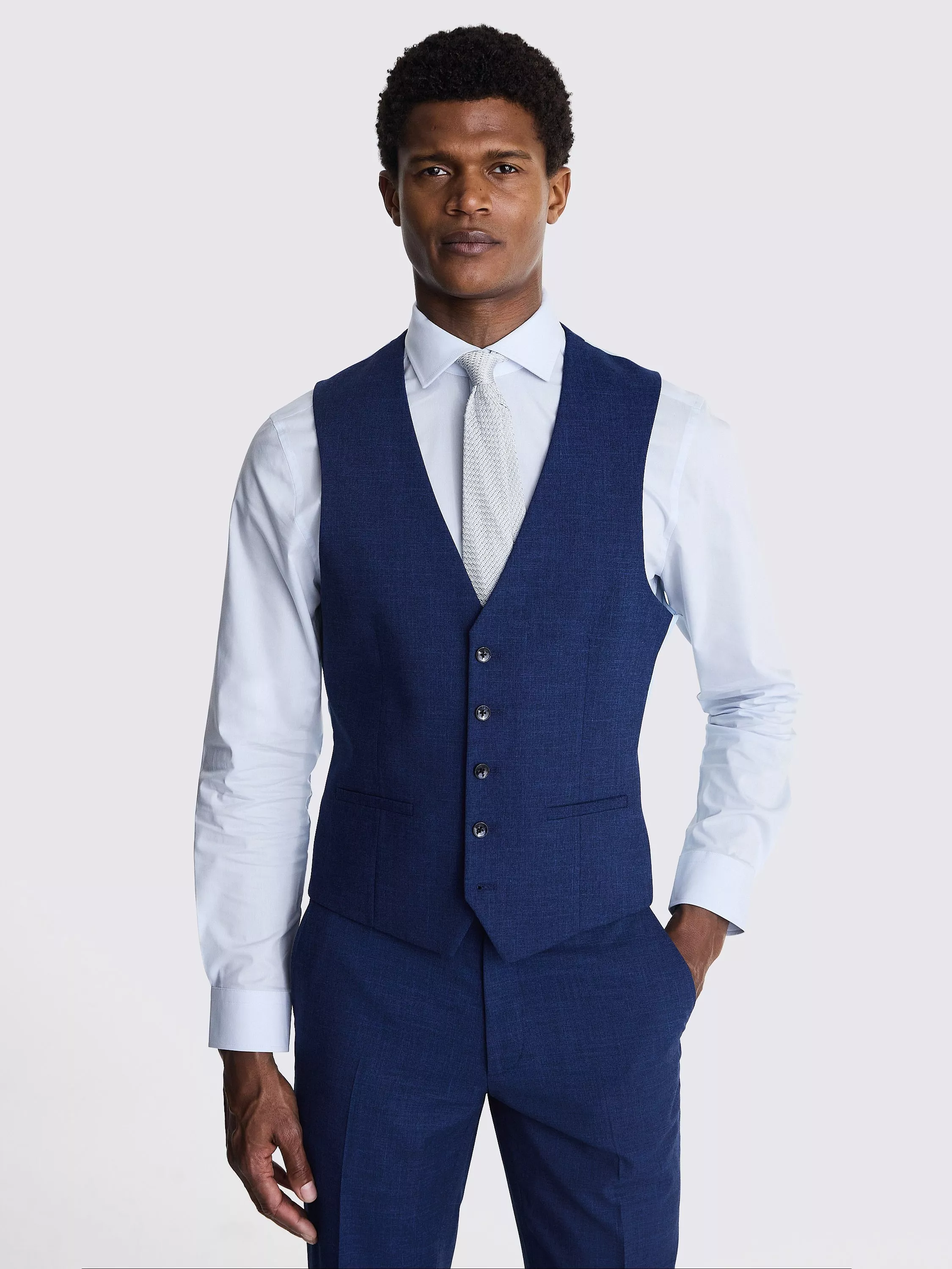 The always favoured slim waistcoat gets a new-season refresh thanks to creative fabric choice by Moss. Cut in cloth that carries a slub texture for a melange appearance, it's tailored to a contemporary slim fit and lined with a sky-blue silken interior.