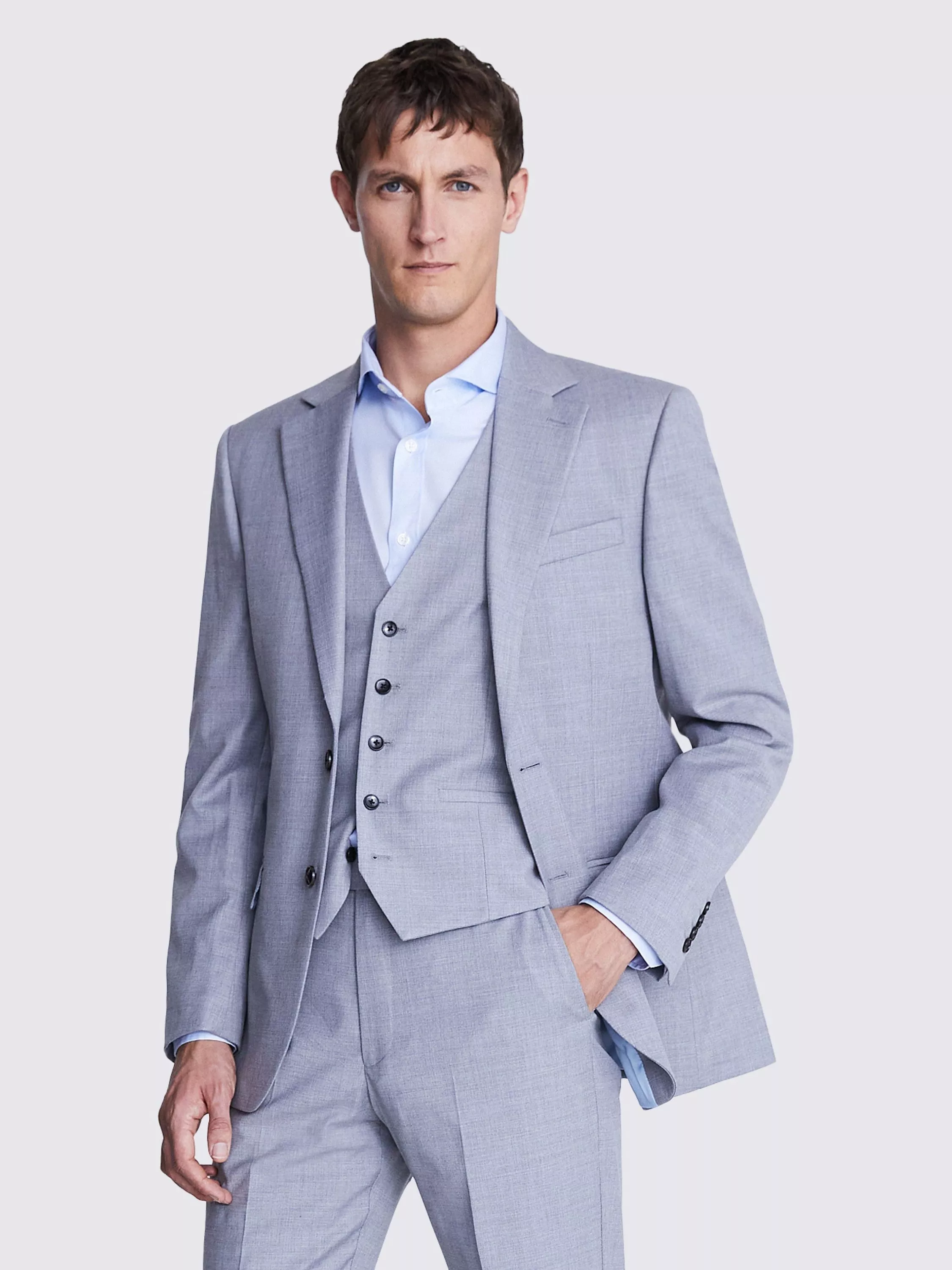 A classic 3-piece with an on-trend update, you can't go wrong with a Moss. suit for smart events, and this one is cut in a skinny fit for extra sharpness.